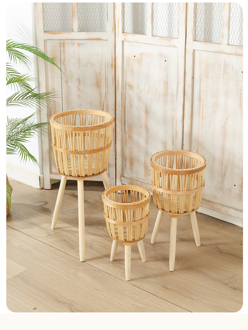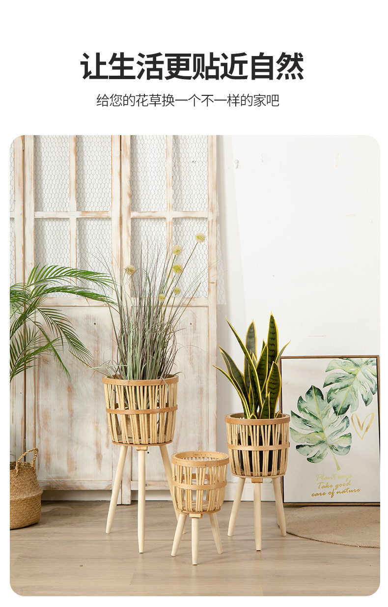 花架竹编花篮藤编花盆手工编织ins家居客厅铁艺摆件绿萝花器
