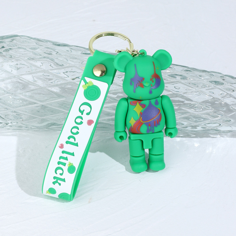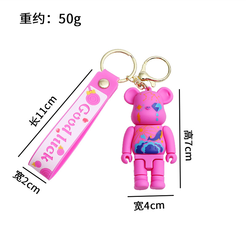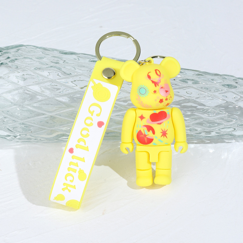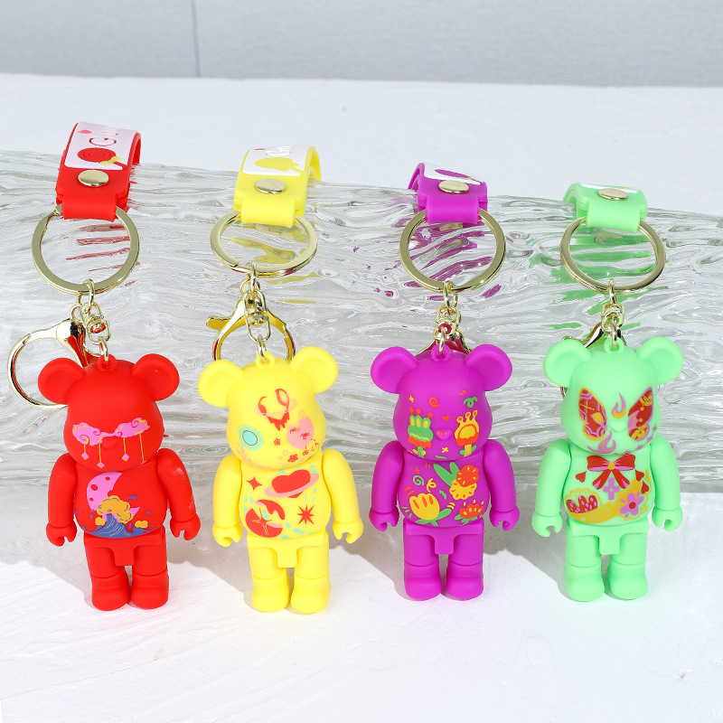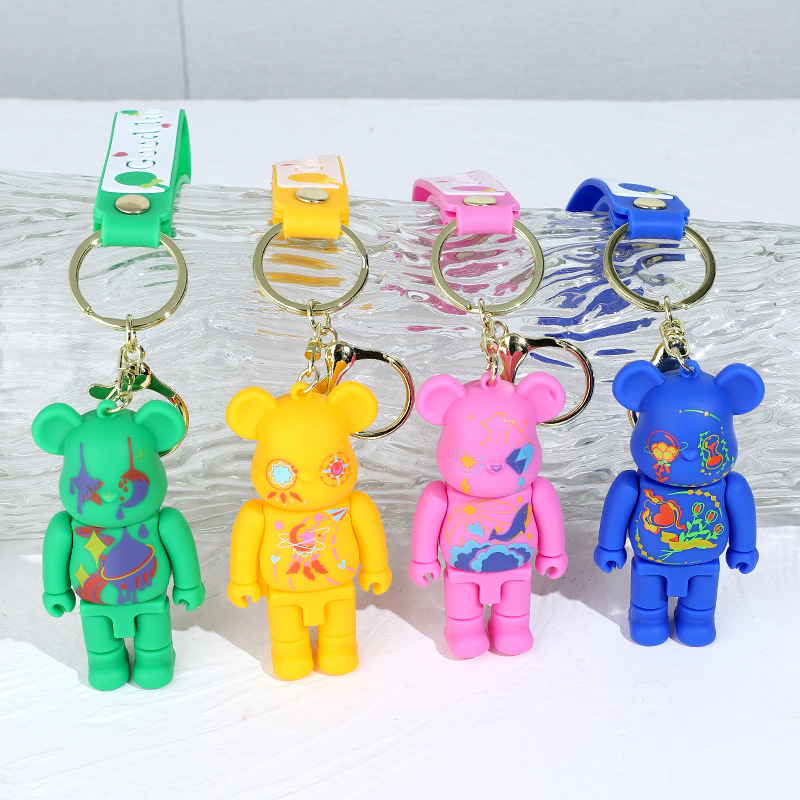 卡通炫彩星空涂鸦机械熊硅胶公仔钥匙扣挂件闪电熊包包汽车钥匙链