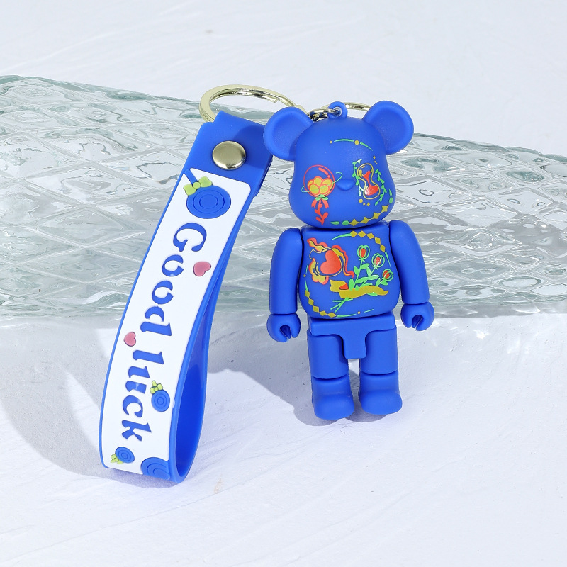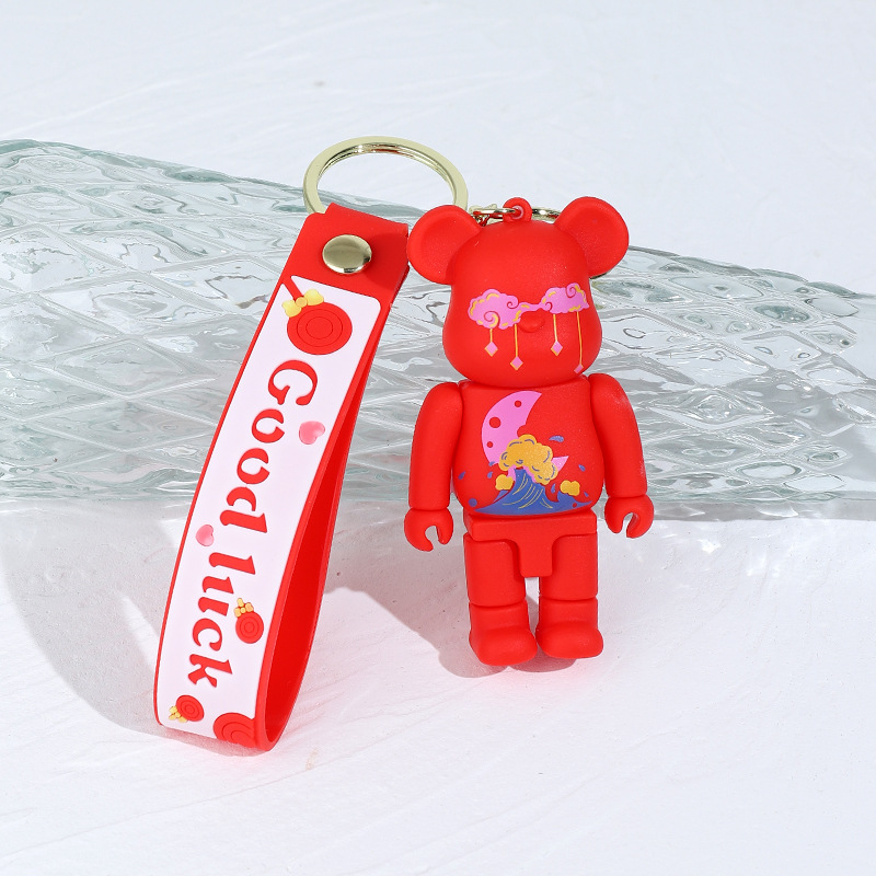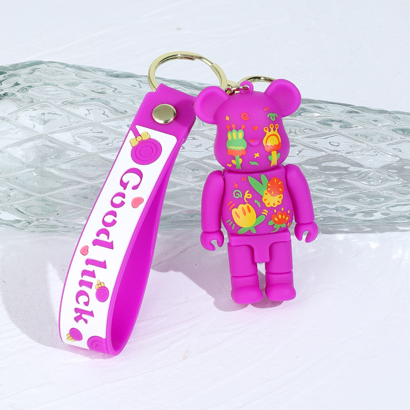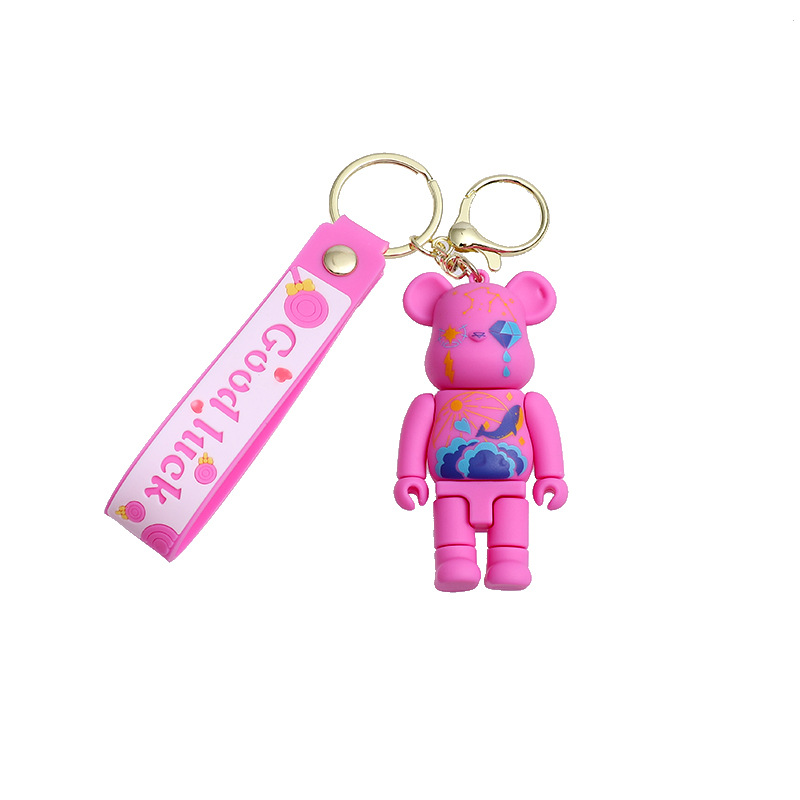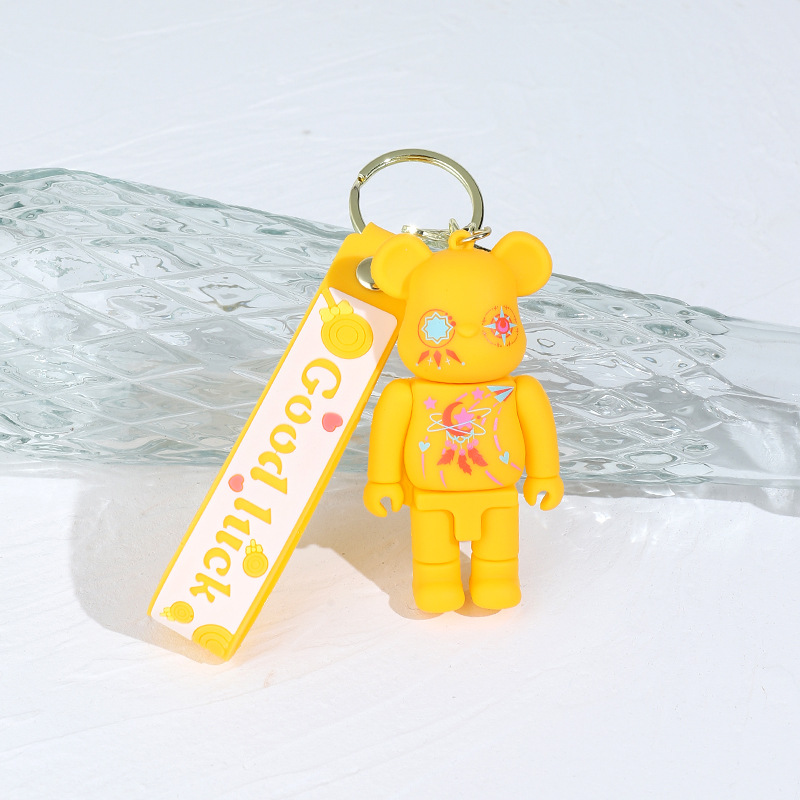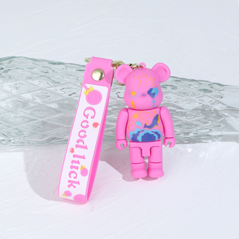 卡通炫彩星空涂鸦机械熊硅胶公仔钥匙扣挂件闪电熊包包汽车钥匙链