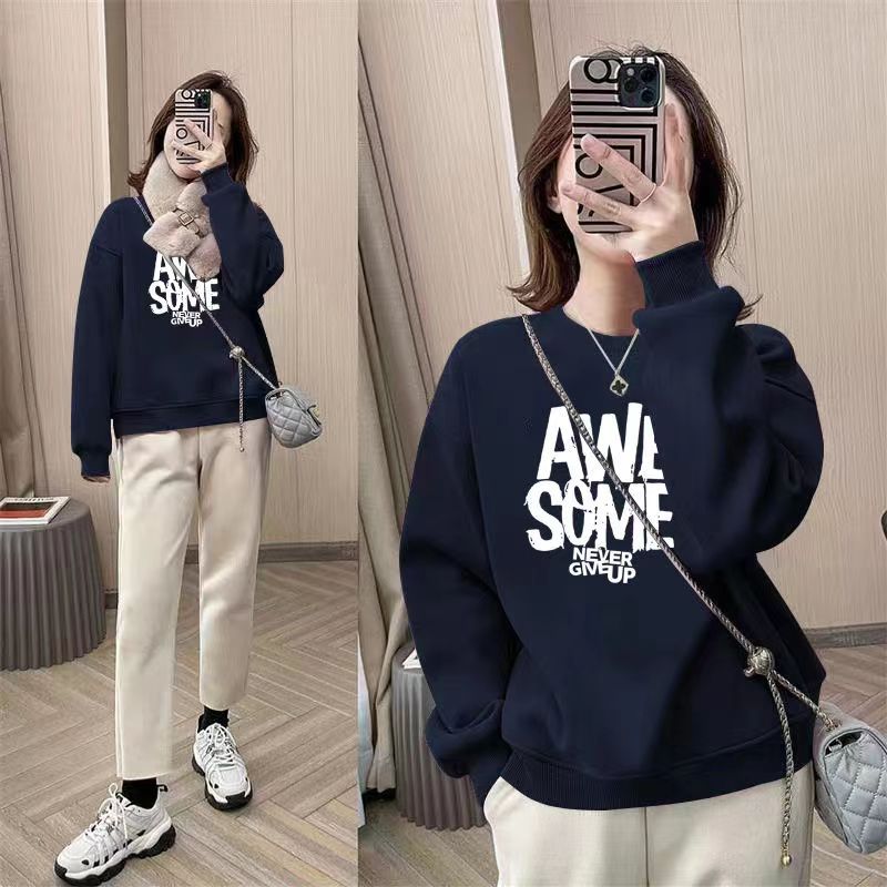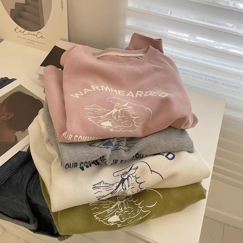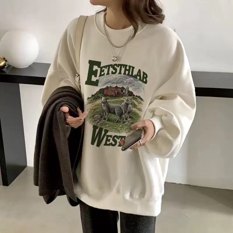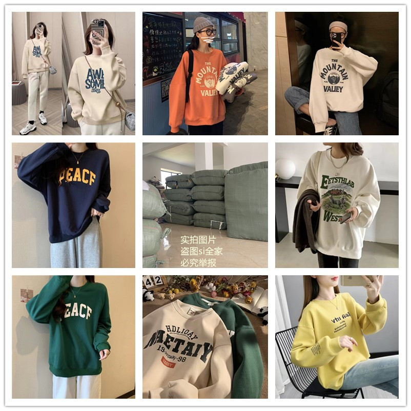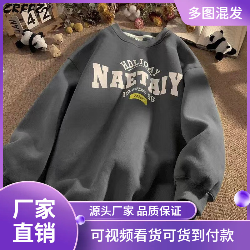 十三行清仓尾货库存外贸大码印花女装圆领卫衣 宽松地摊衣服批发