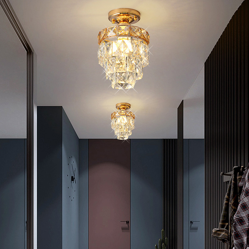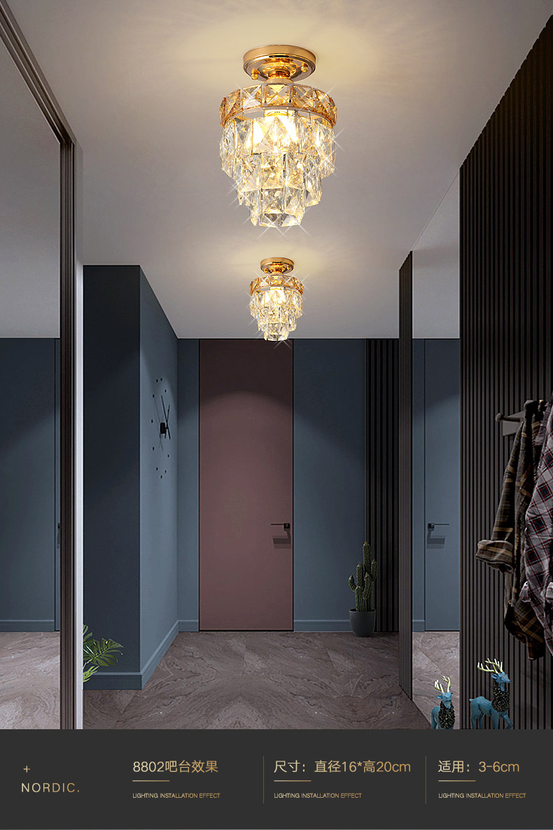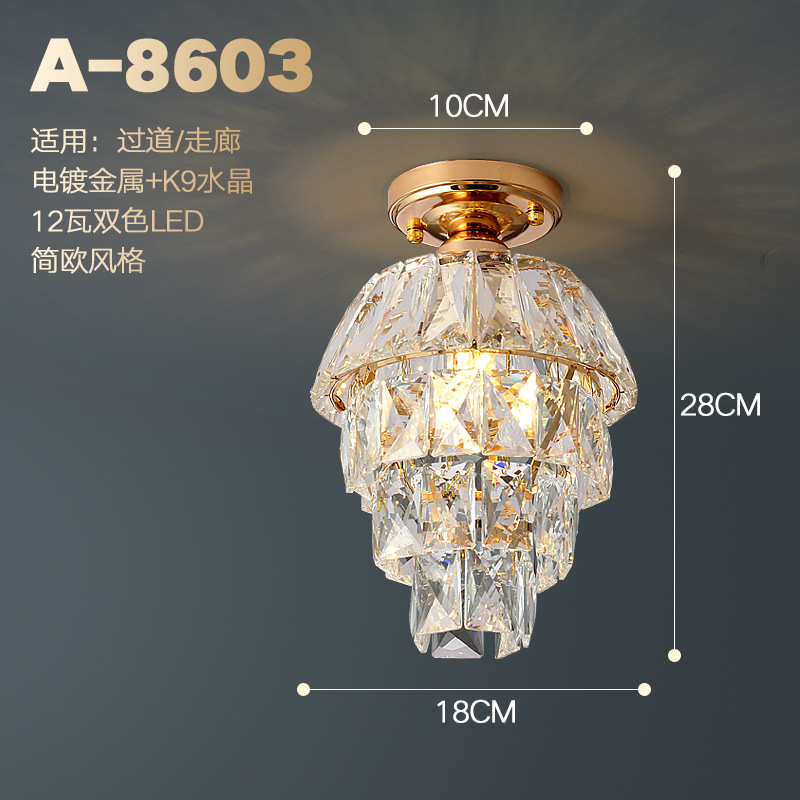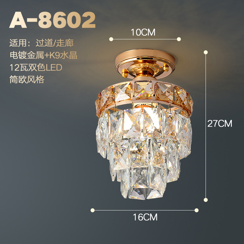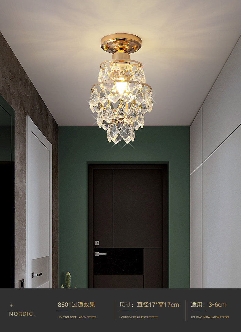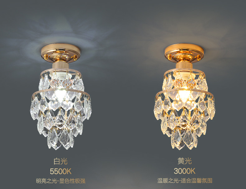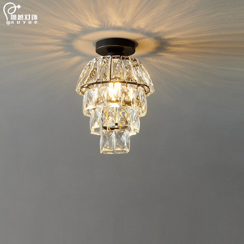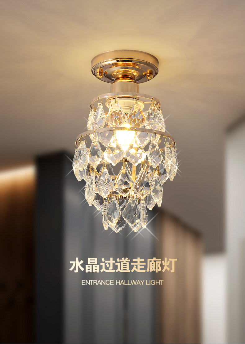 外贸专供欧式轻奢美式小水晶吸顶灯过道走廊玄关后入户法式吸顶灯