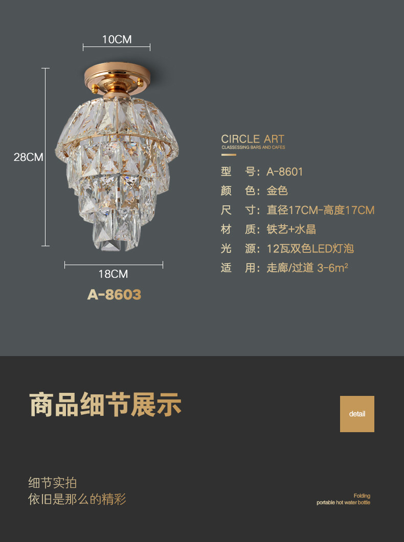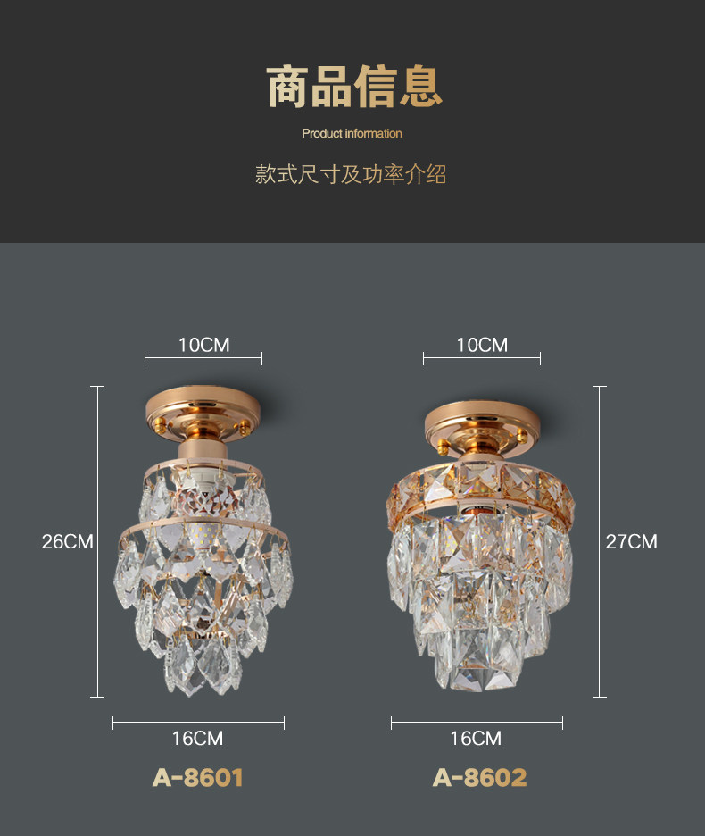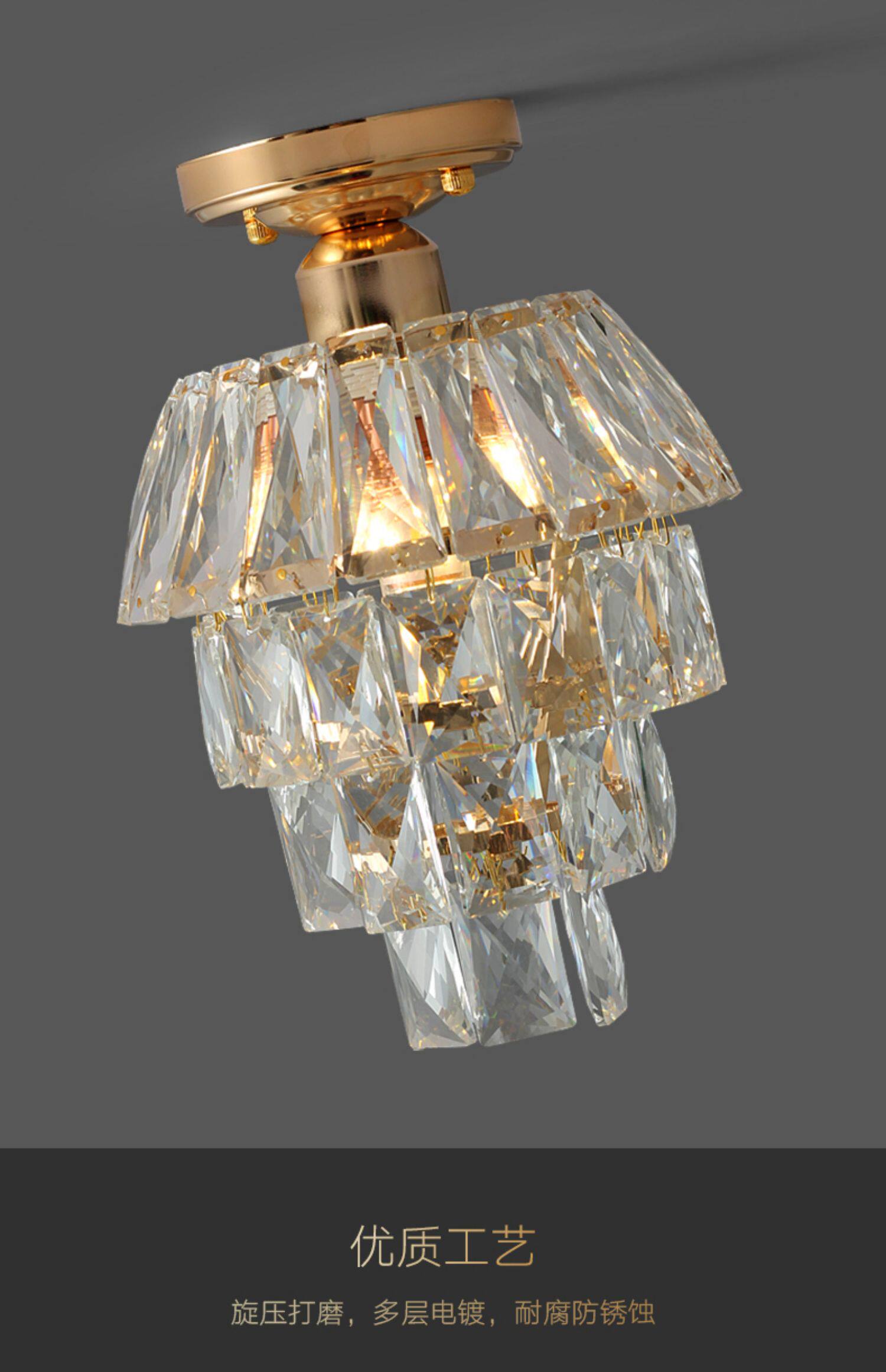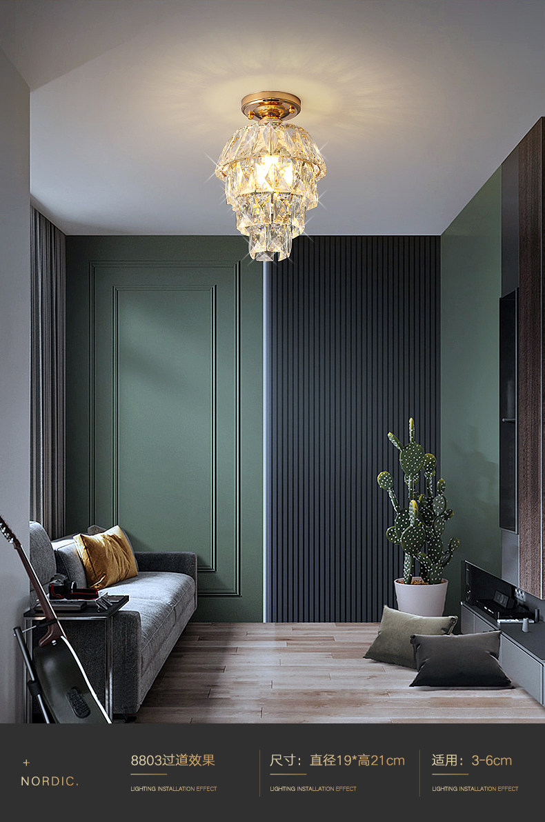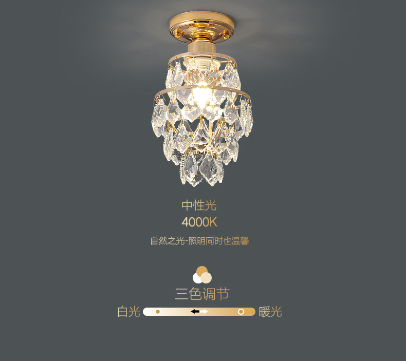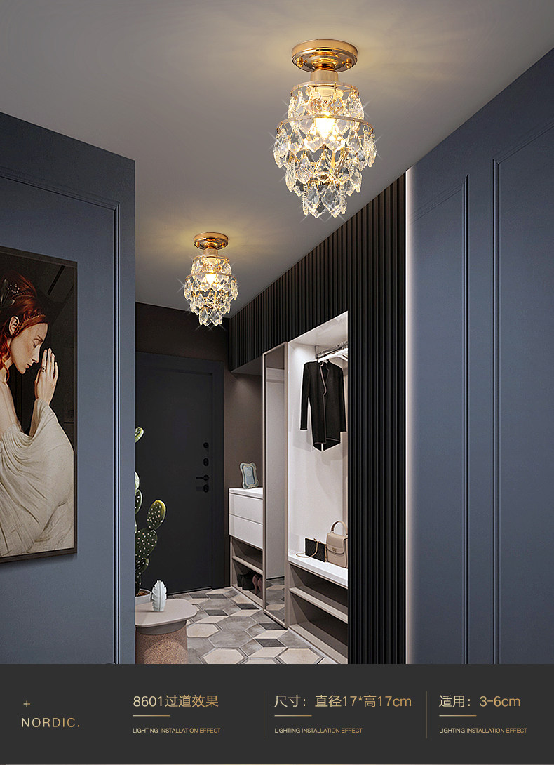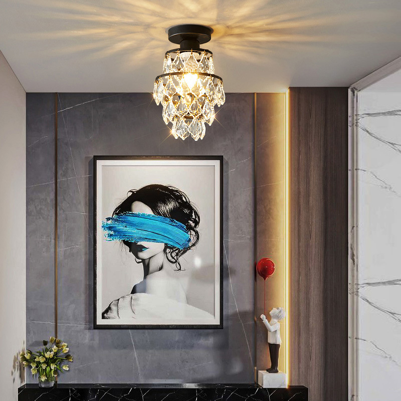 外贸专供欧式轻奢美式小水晶吸顶灯过道走廊玄关后入户法式吸顶灯