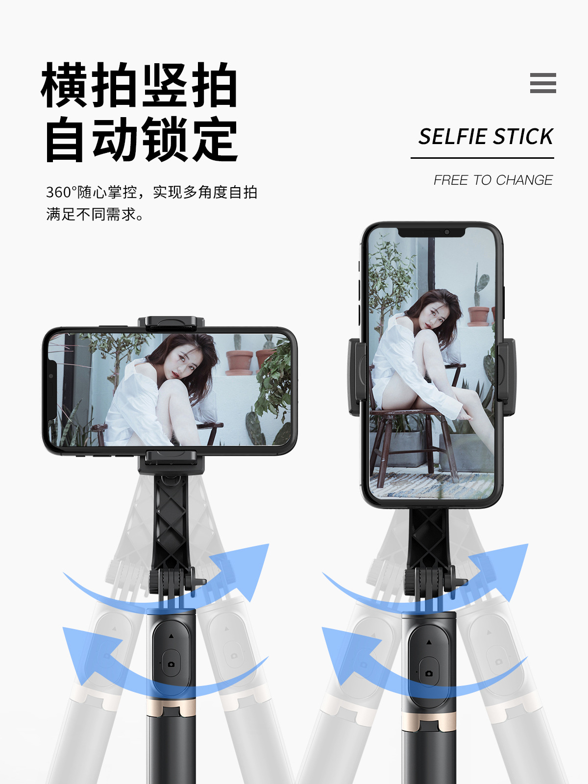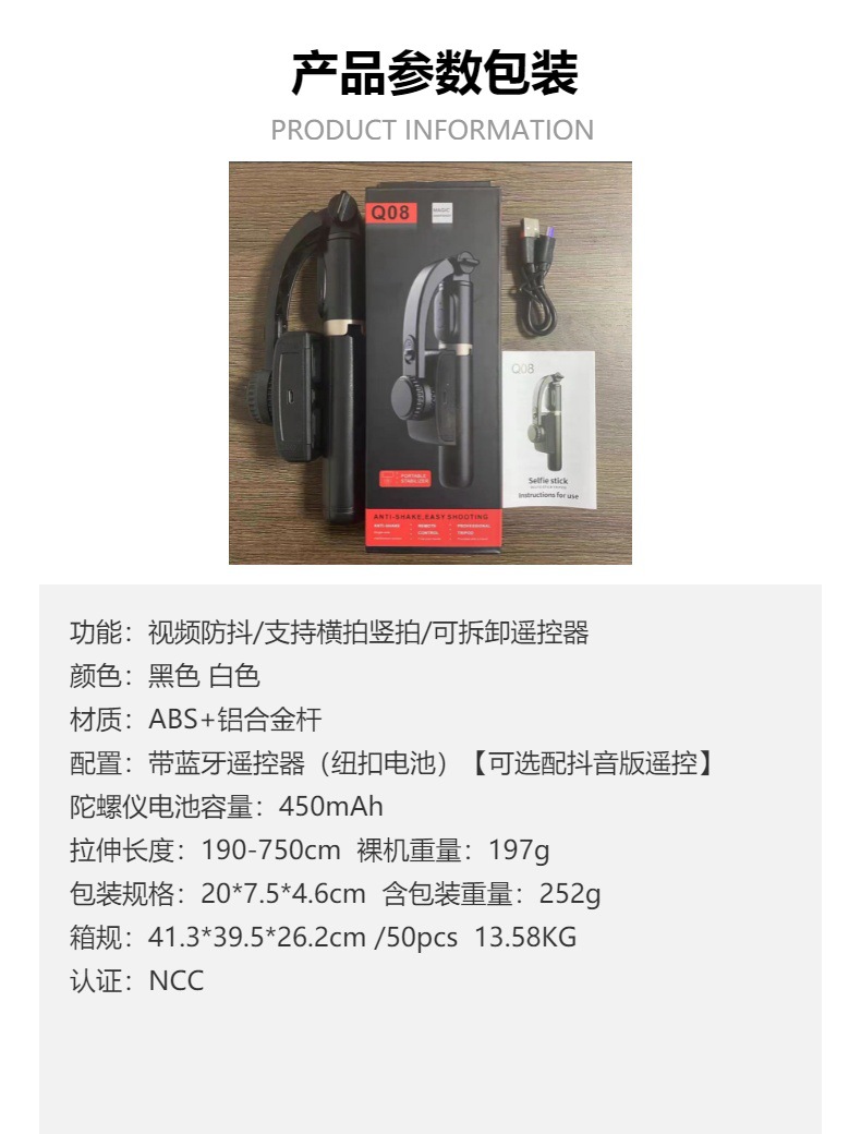 Q08亚马逊手持防抖云台稳定器直播手机支架桌面稳拍器蓝牙自拍杆