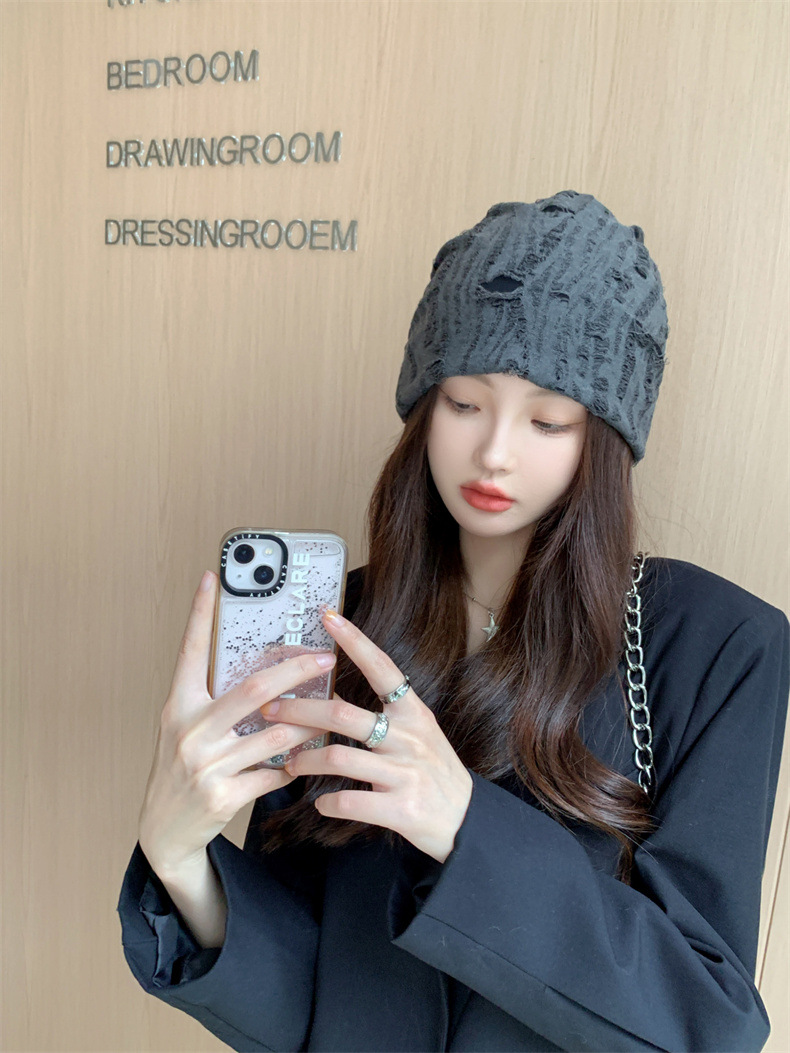 时尚破洞堆堆帽