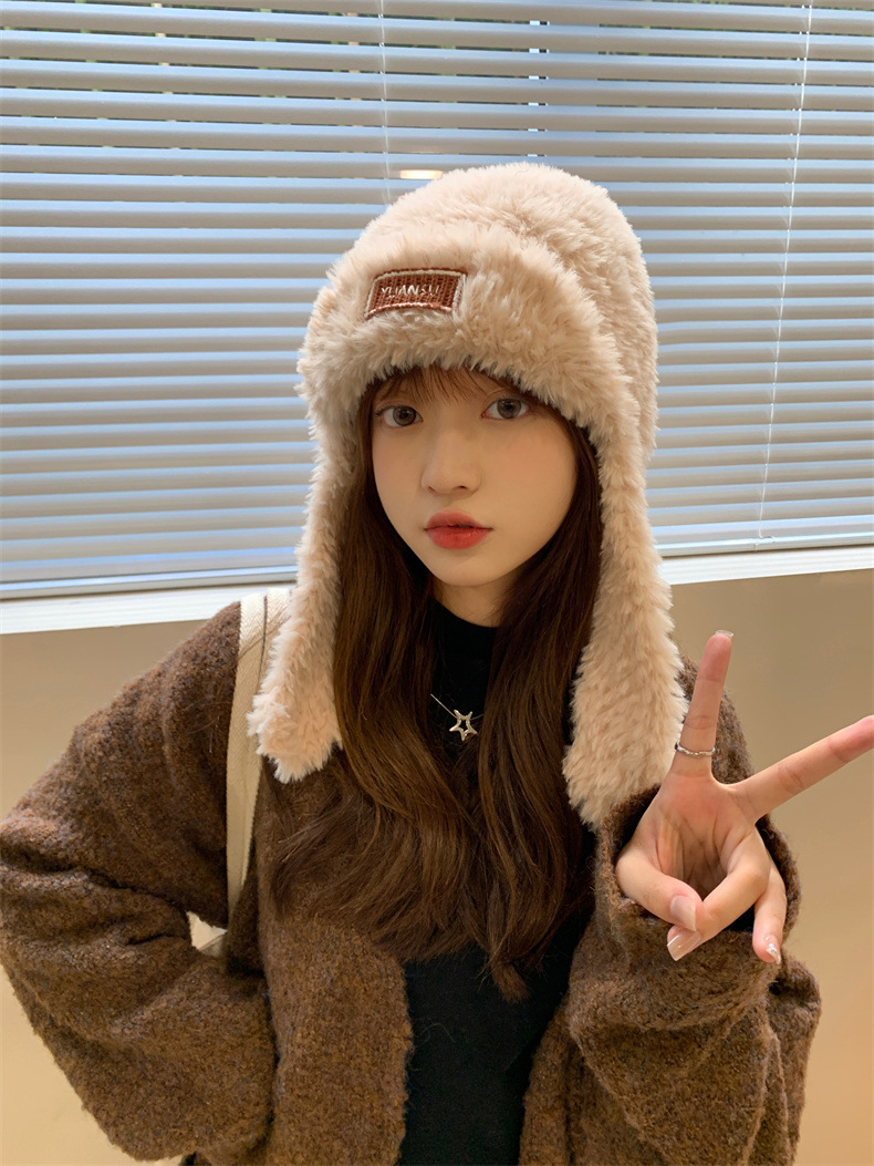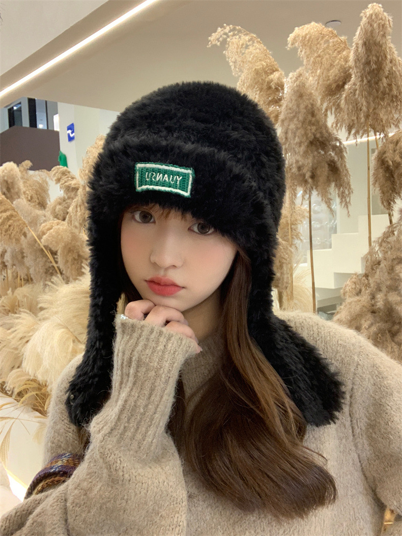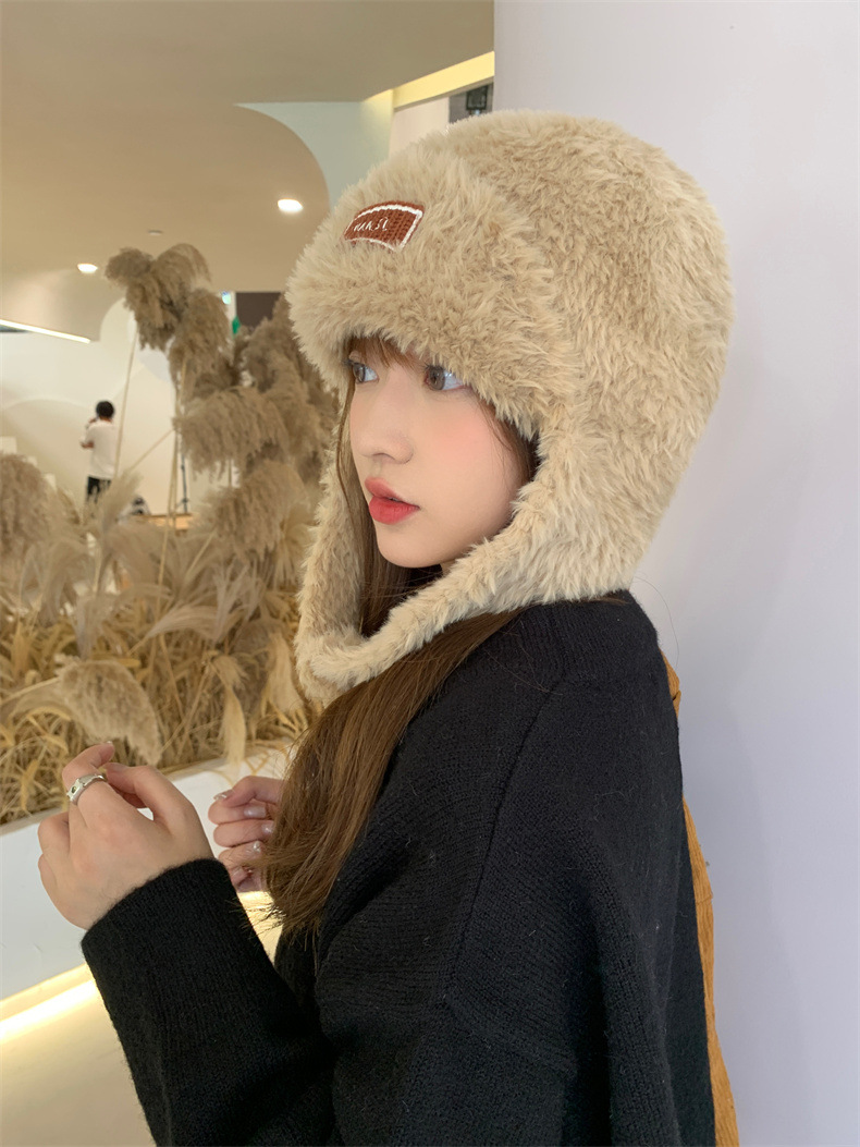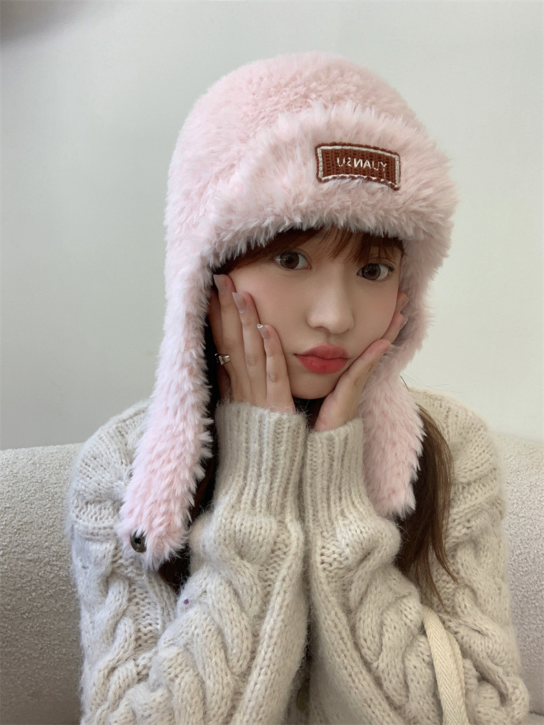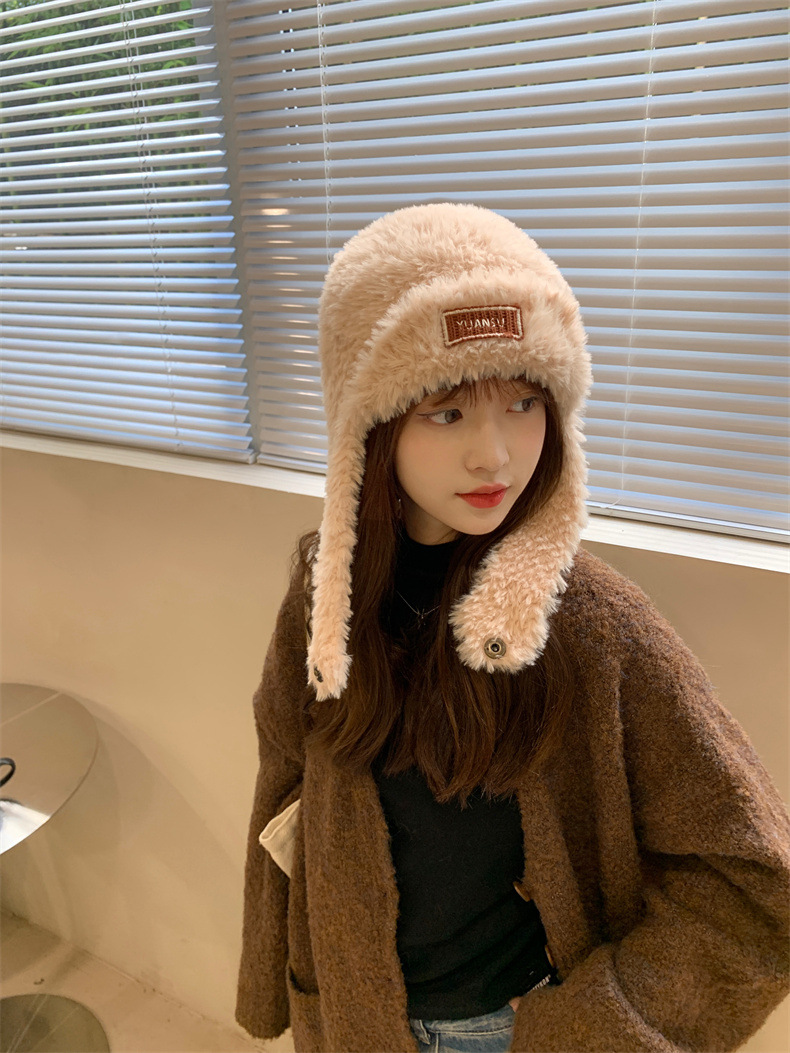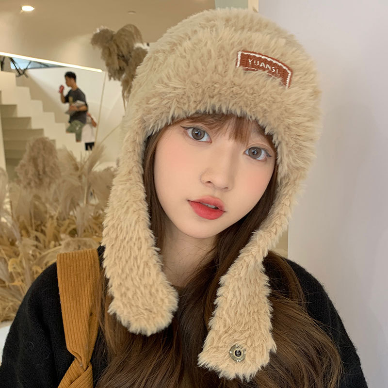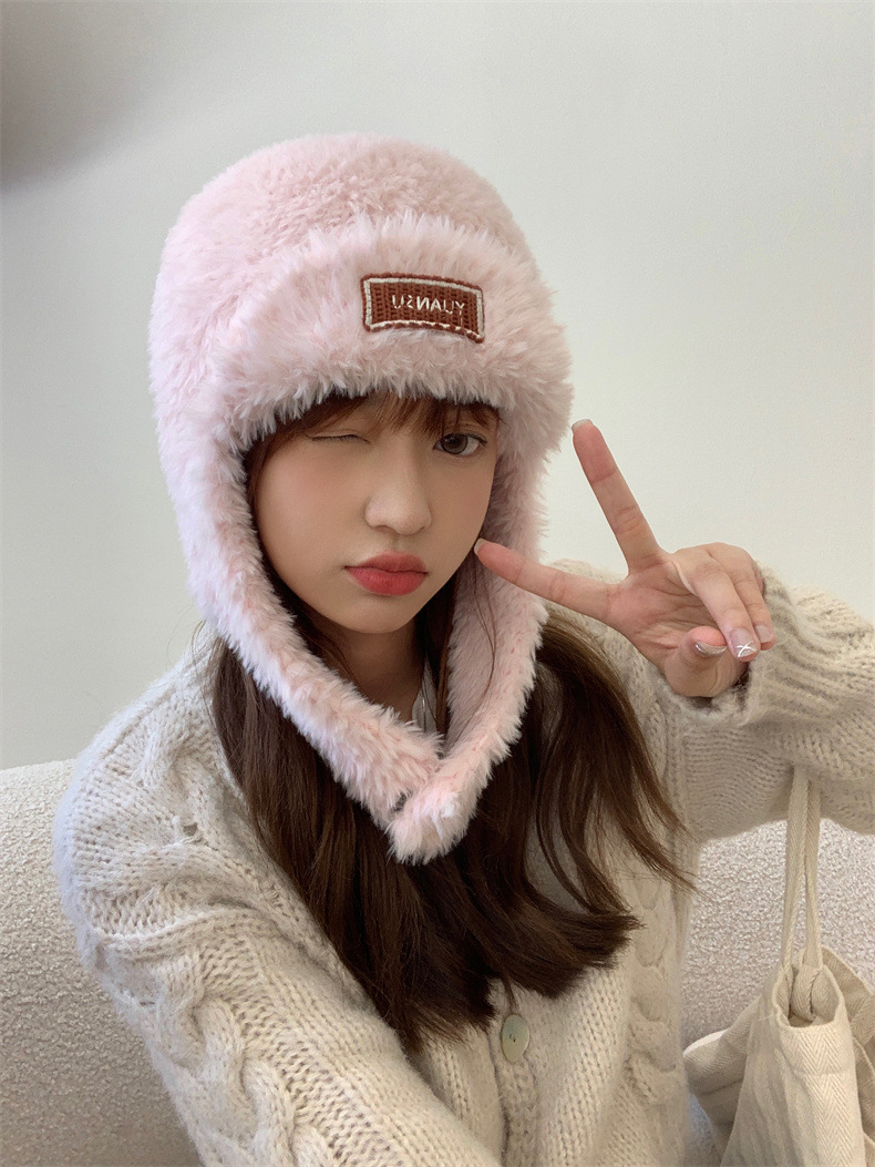 加绒保暖雷锋帽子秋冬季女士东北防寒毛绒包包针织帽羊羔毛可爱帽