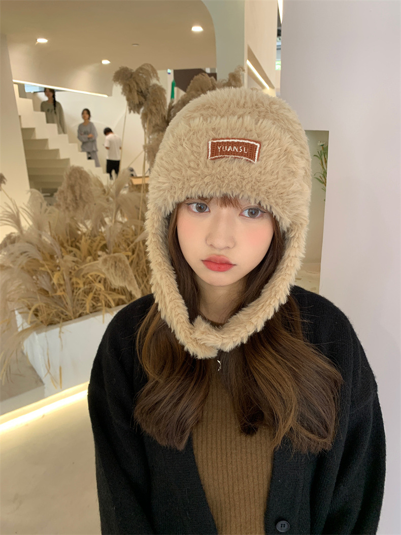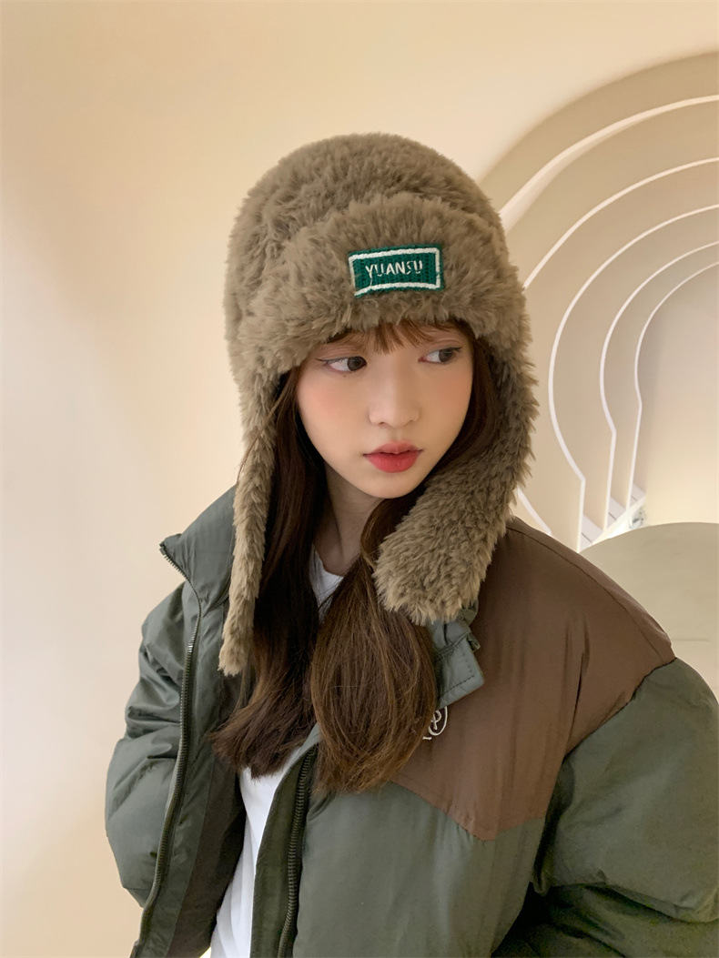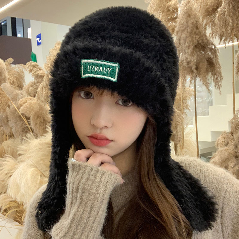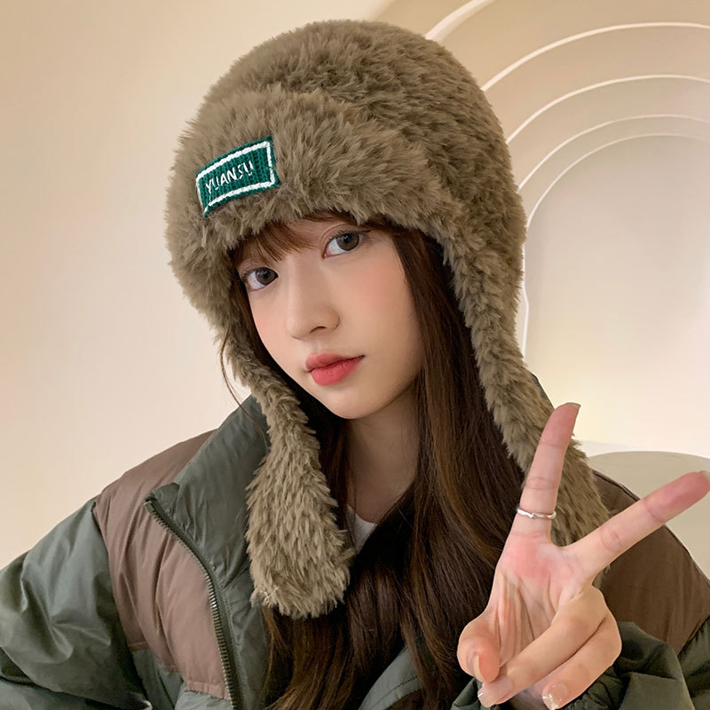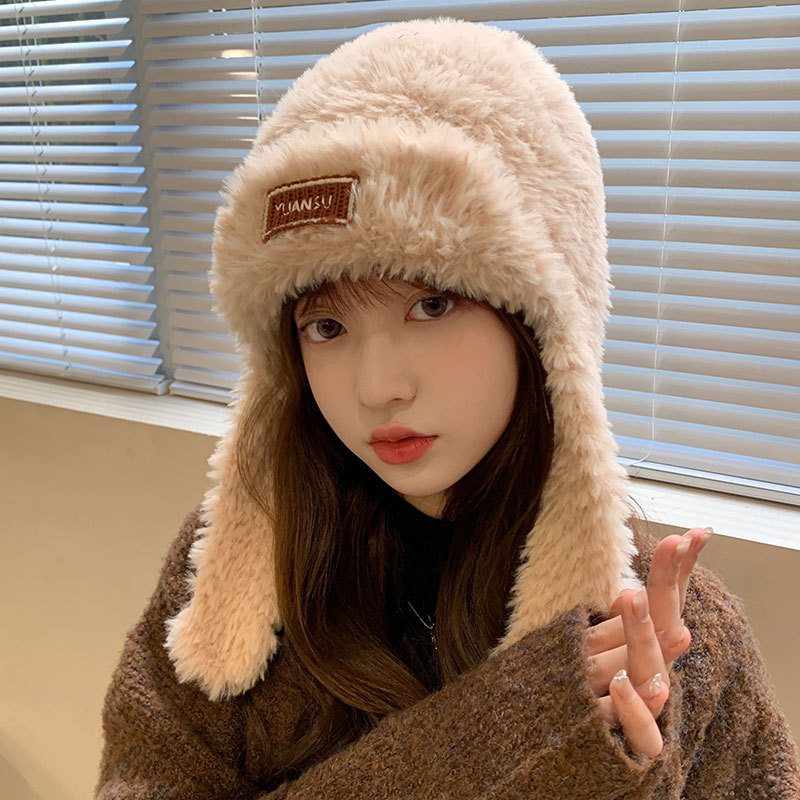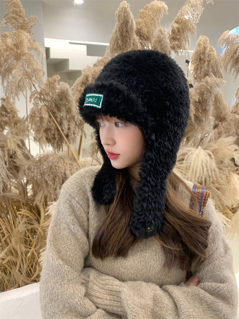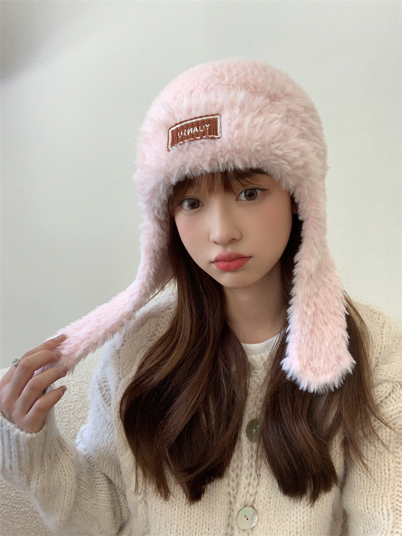 加绒保暖雷锋帽子秋冬季女士东北防寒毛绒包包针织帽羊羔毛可爱帽