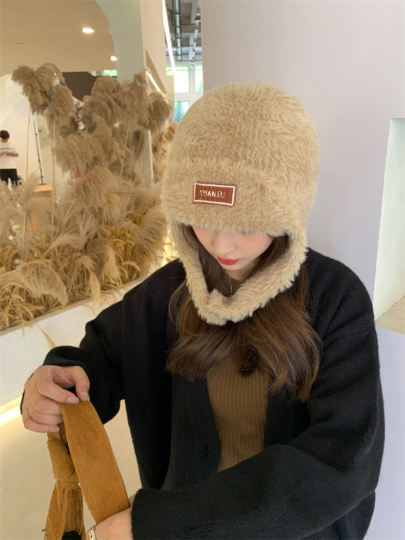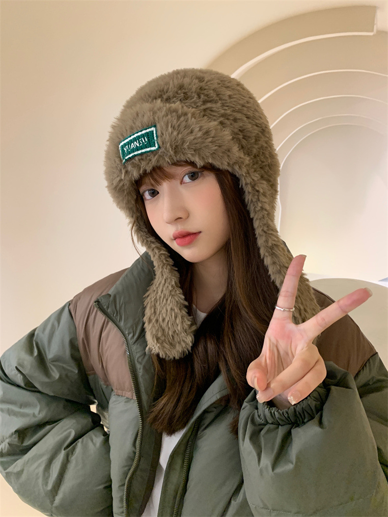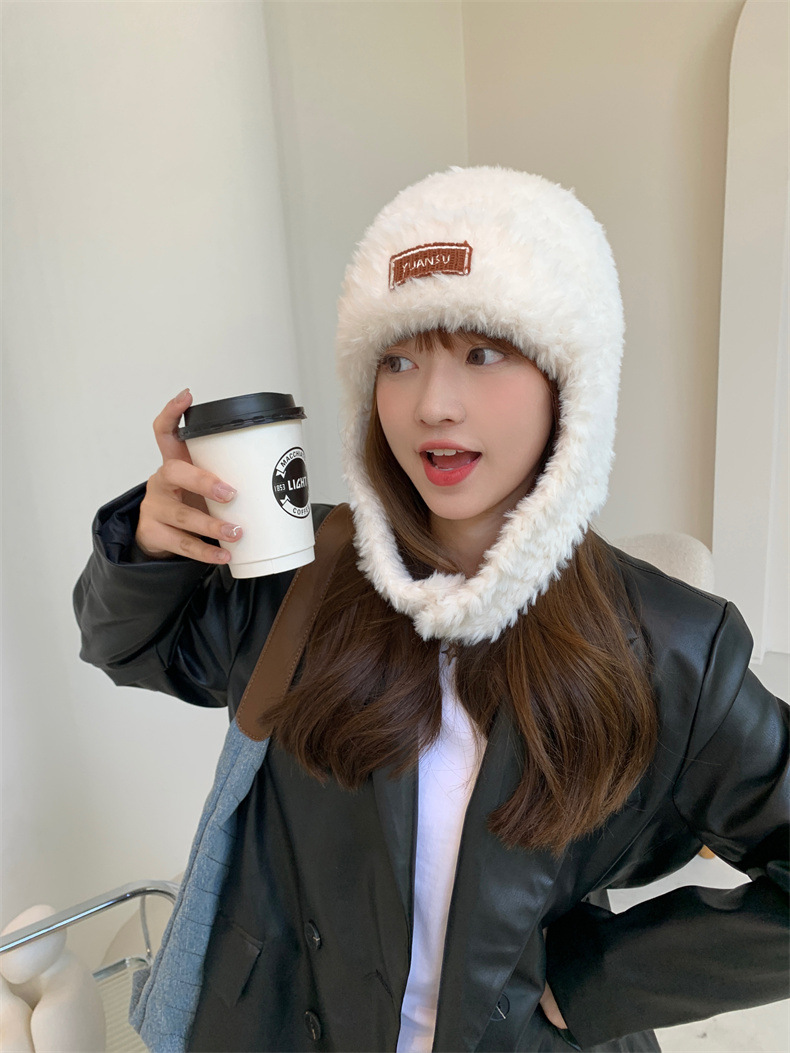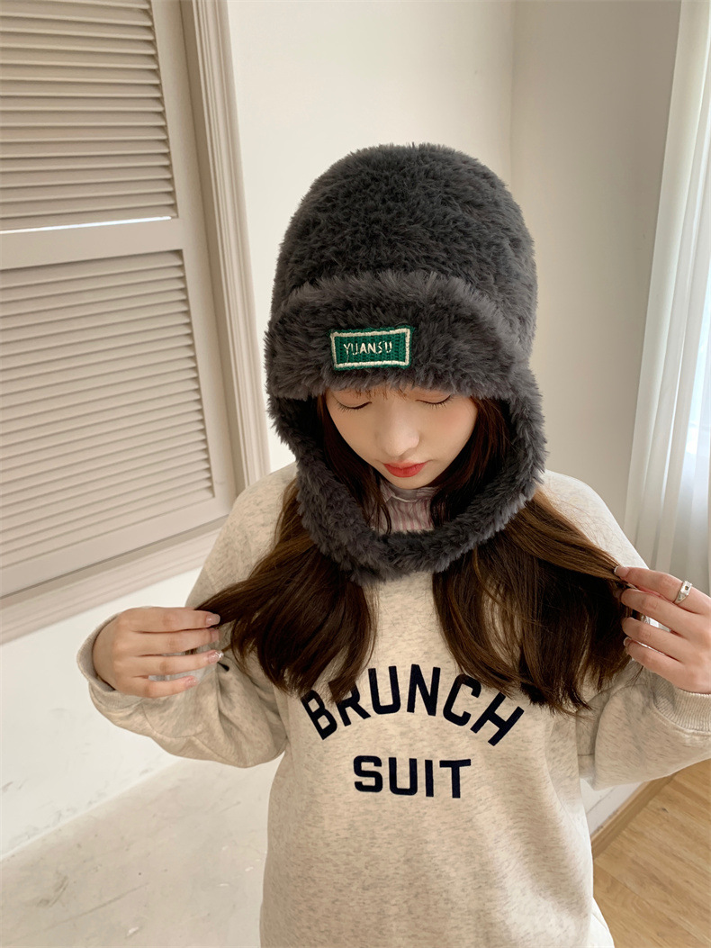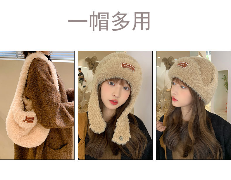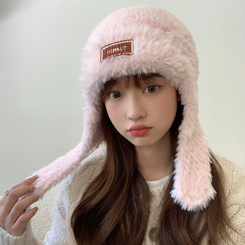 加绒保暖雷锋帽子秋冬季女士东北防寒毛绒包包针织帽羊羔毛可爱帽