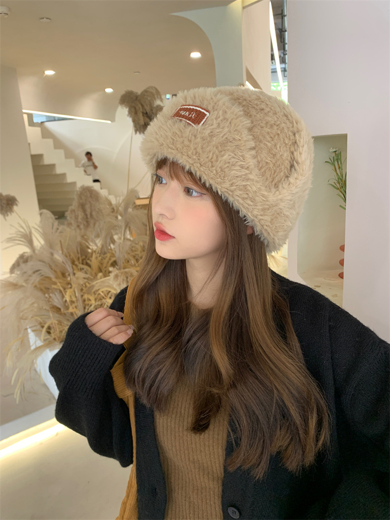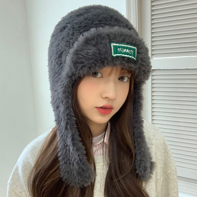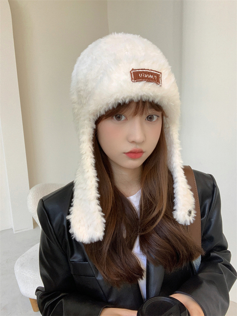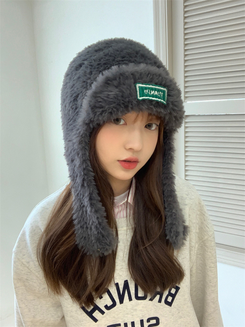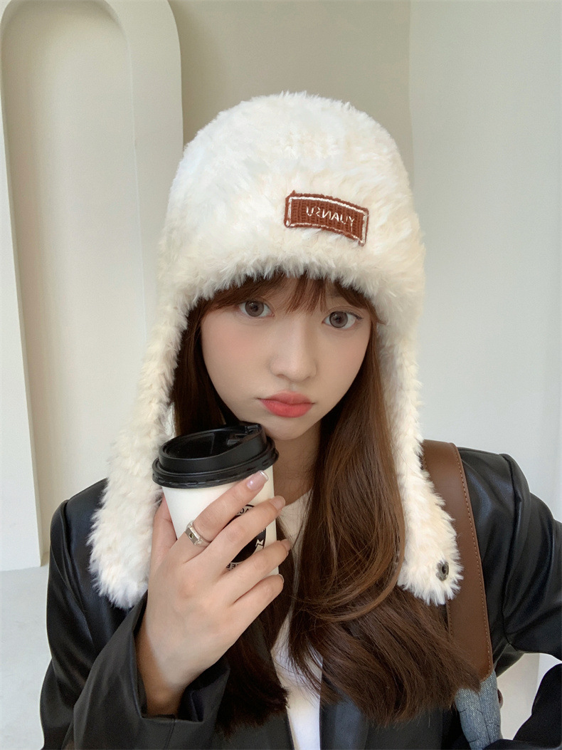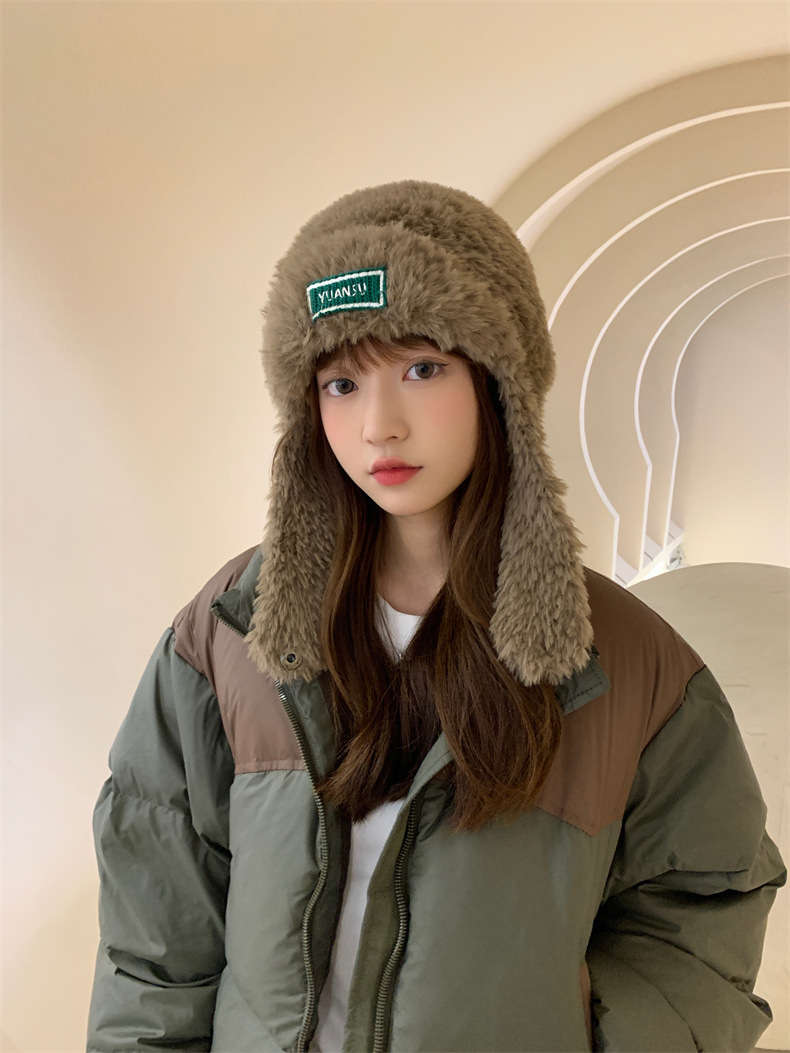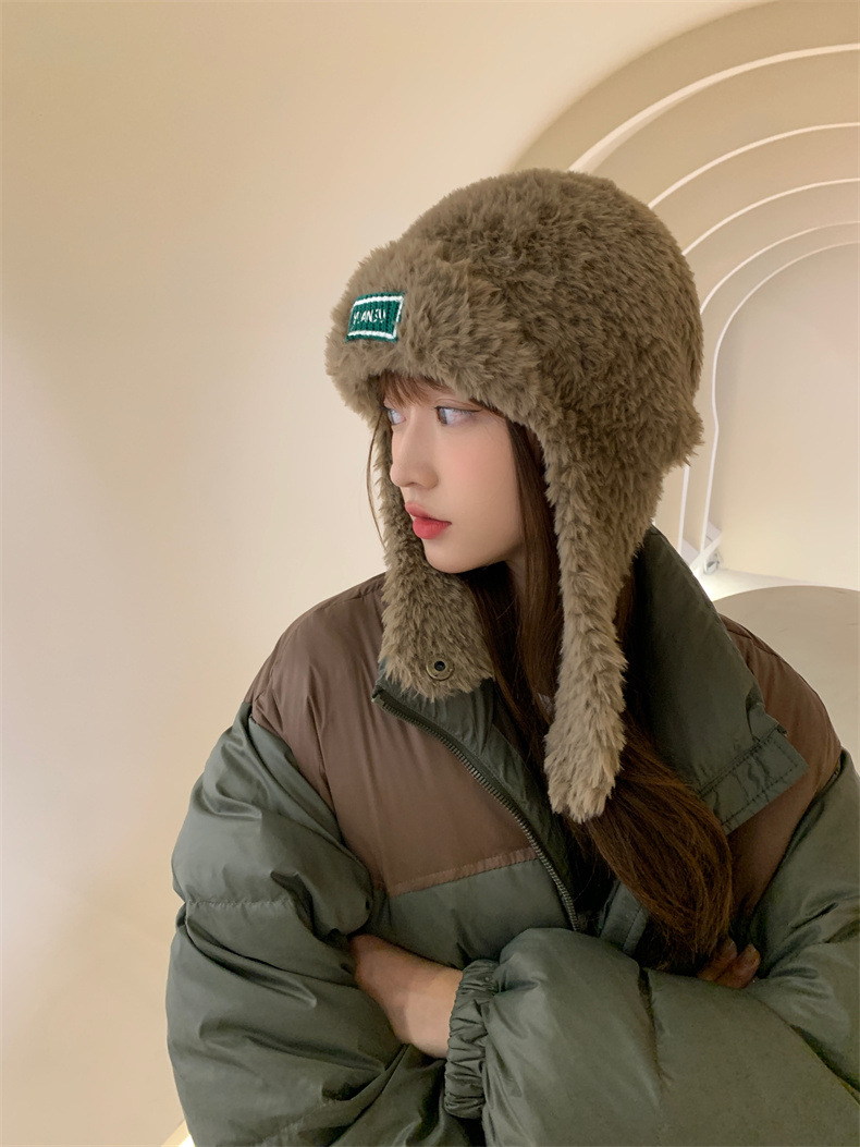 加绒保暖雷锋帽子秋冬季女士东北防寒毛绒包包针织帽羊羔毛可爱帽