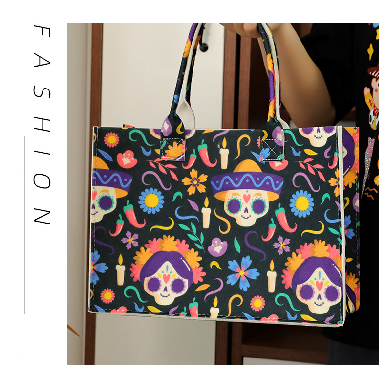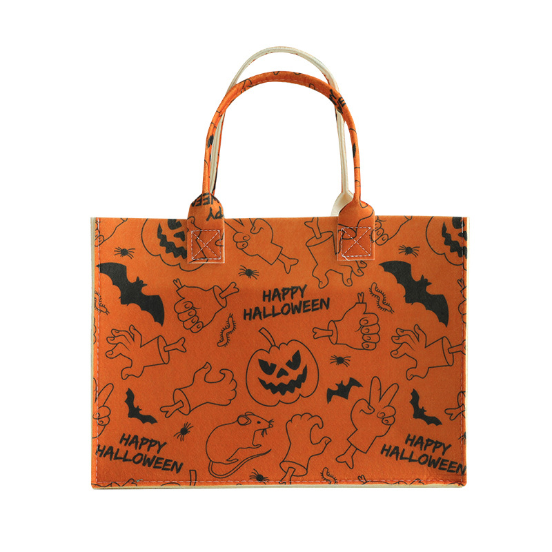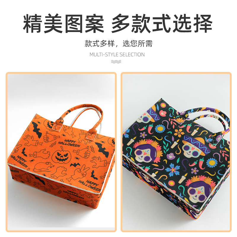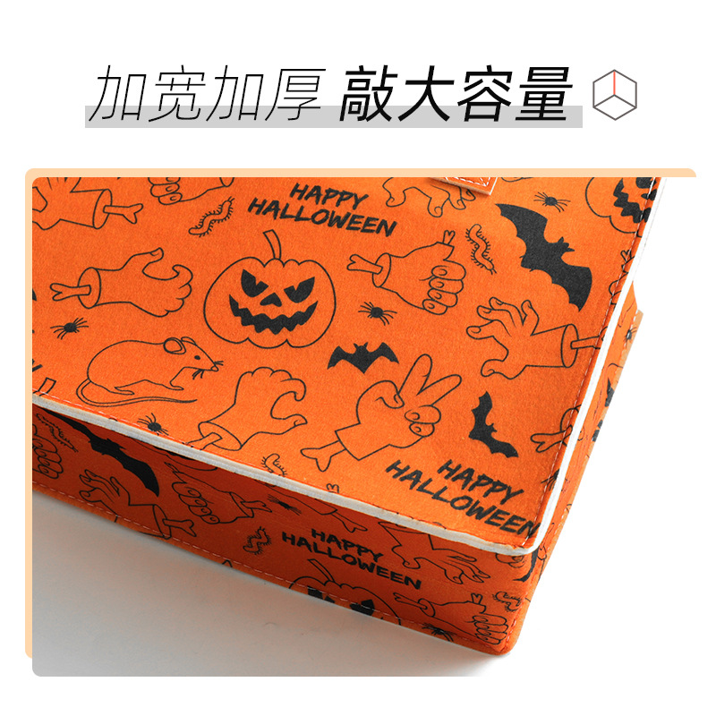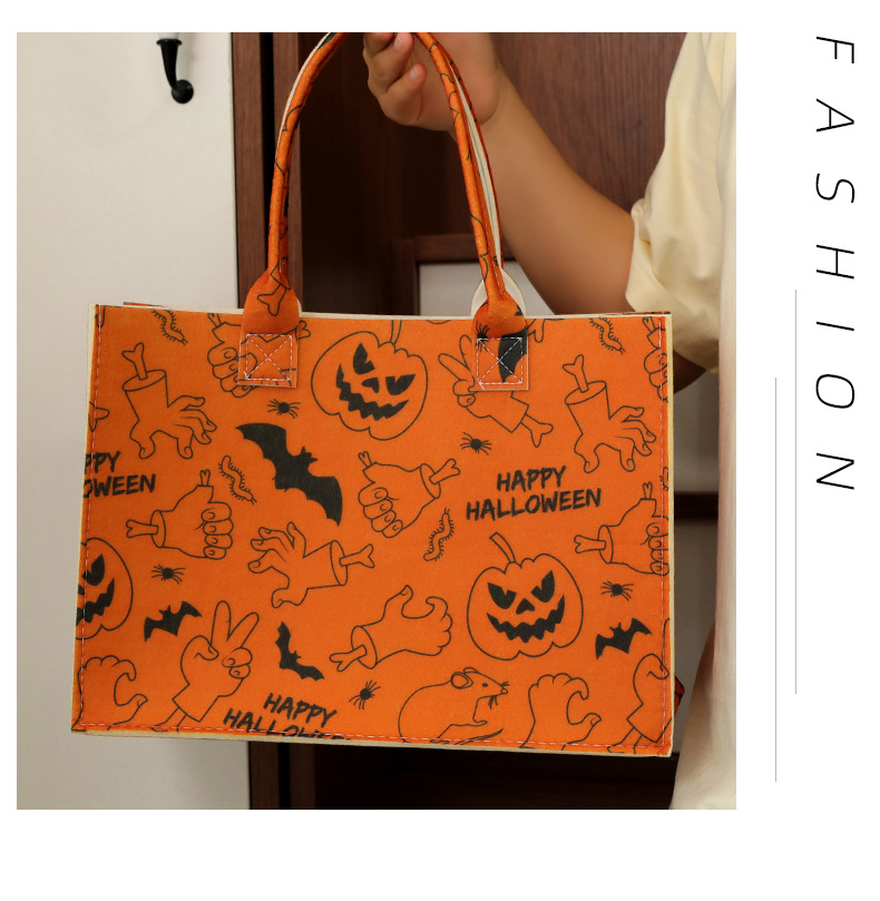 万圣节毛毡托特包百搭敞口单肩包大容量购物手提袋彩绘南瓜毛毡包