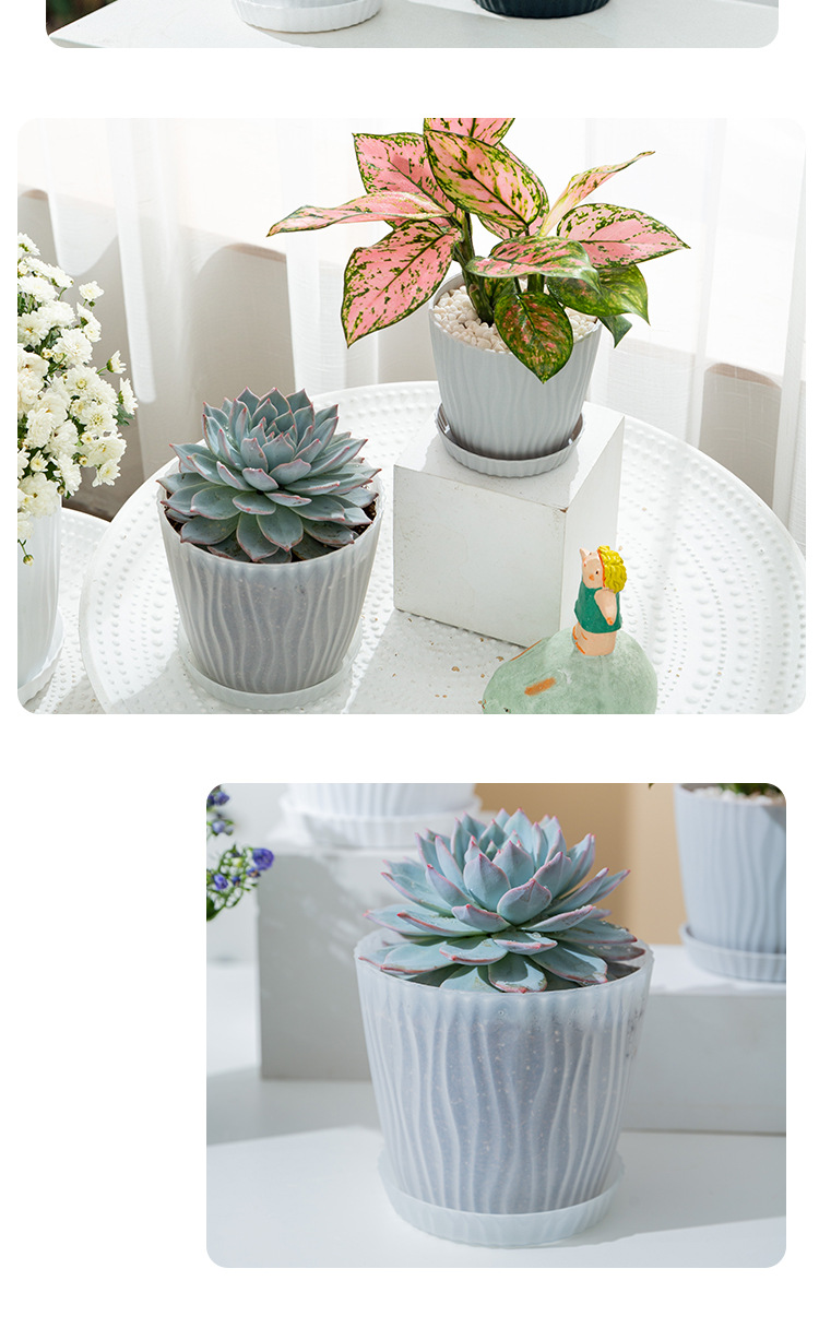 小花盆塑料树脂多肉白色盆栽仙人球带托盘花盆批发专用新款芦荟盆