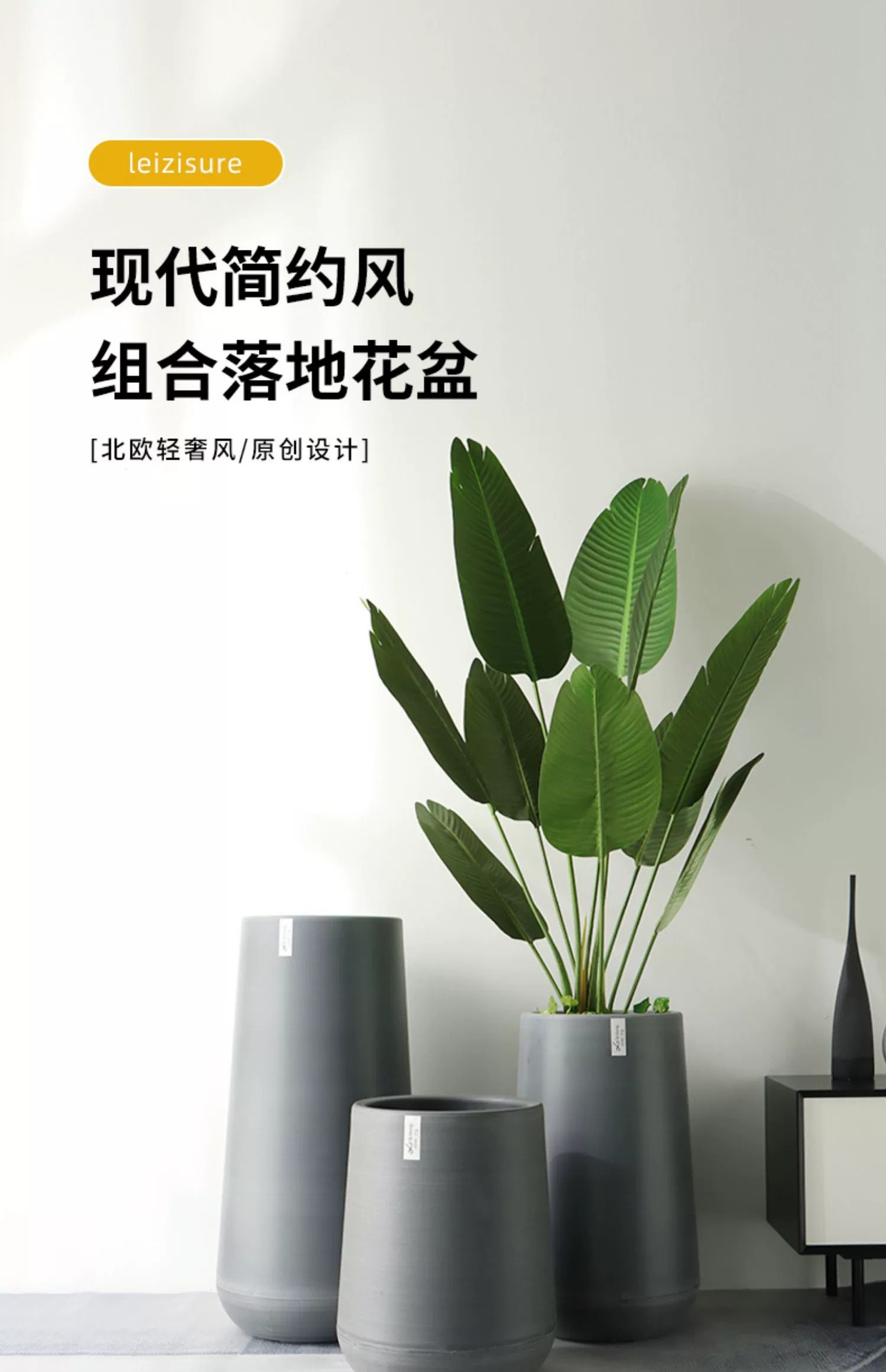 大号花盆 圆形高筒仿石落地客厅酒店创意组合大号花盆 批发