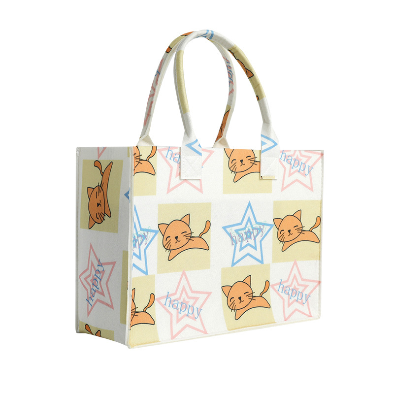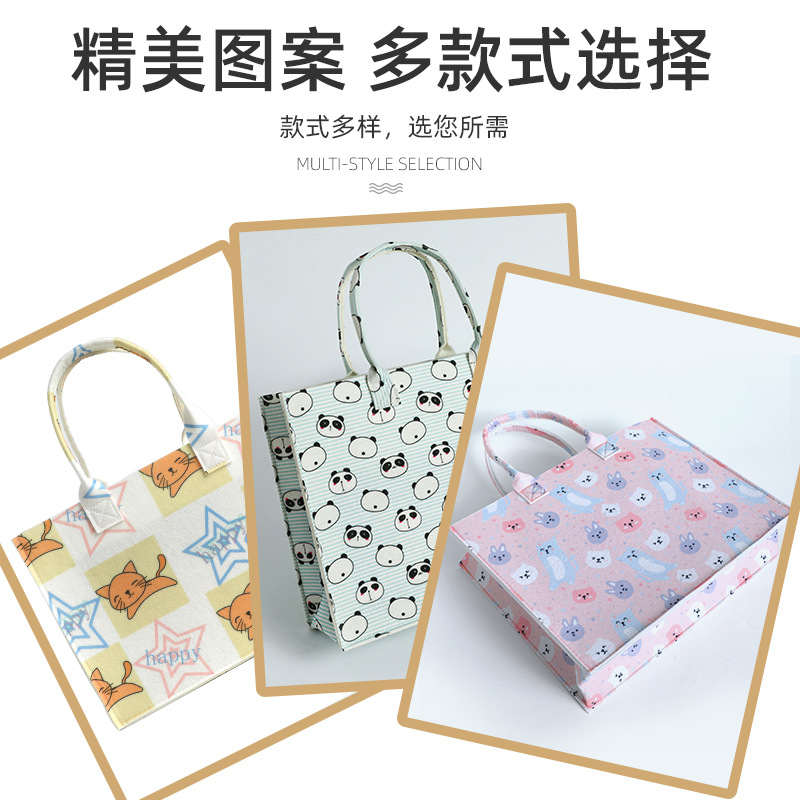 网红毛毡托特包卡通百搭单肩包大容量购物袋彩绘立体毛毡手提包