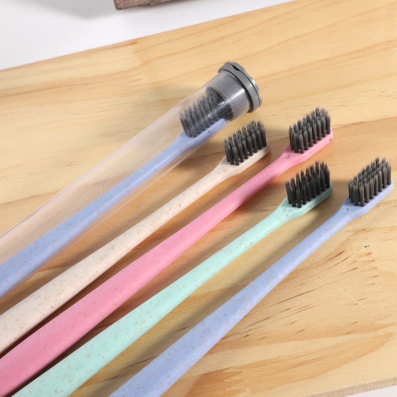 秸秆牙刷家用小头软毛牙刷独立管装竹炭牙刷成人情侣旅行牙刷批发