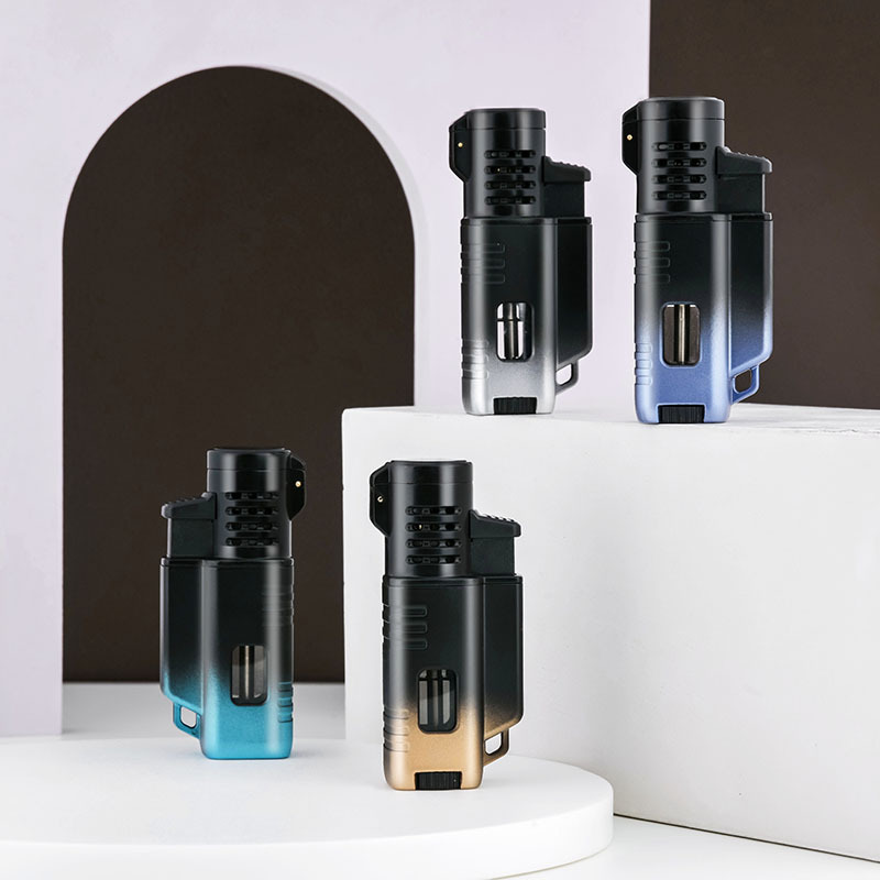 新款摩登三直冲防风打火机简约商务多色礼品机可点雪茄可视气窗
