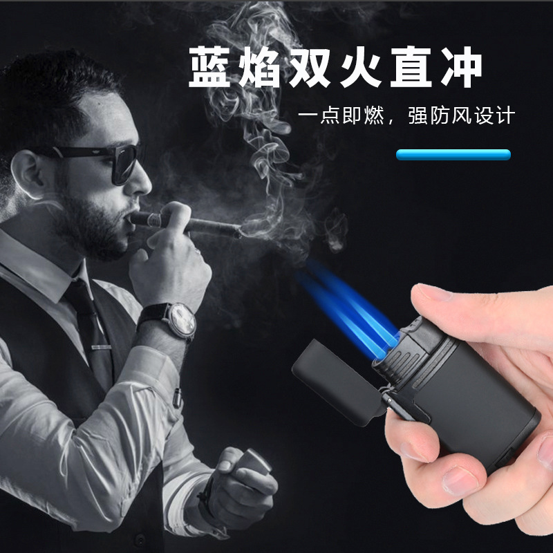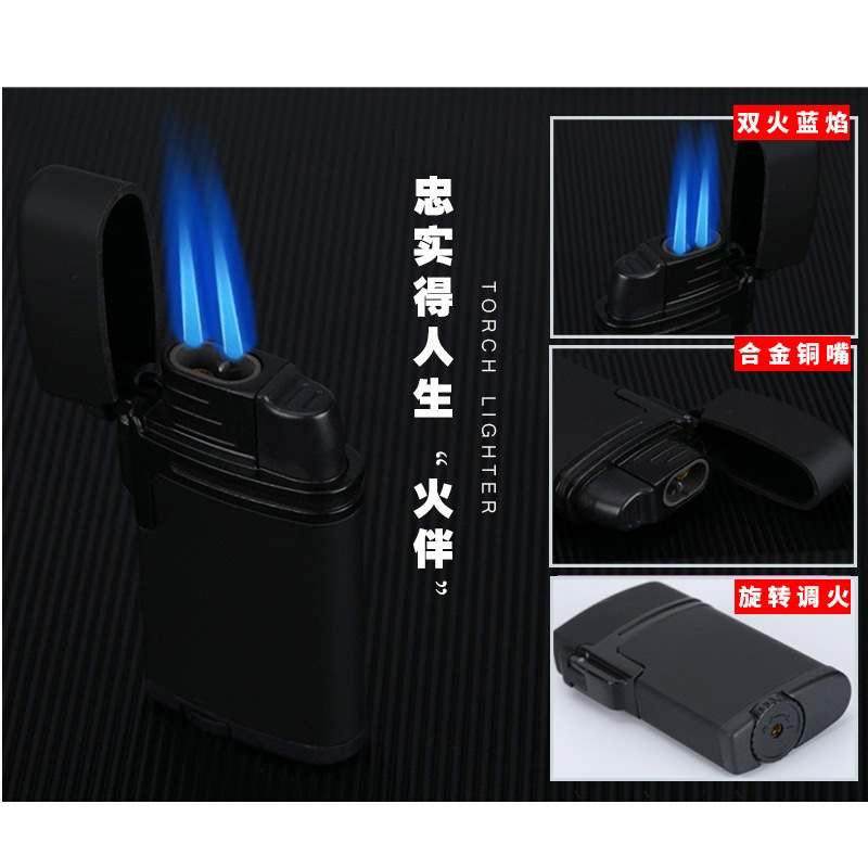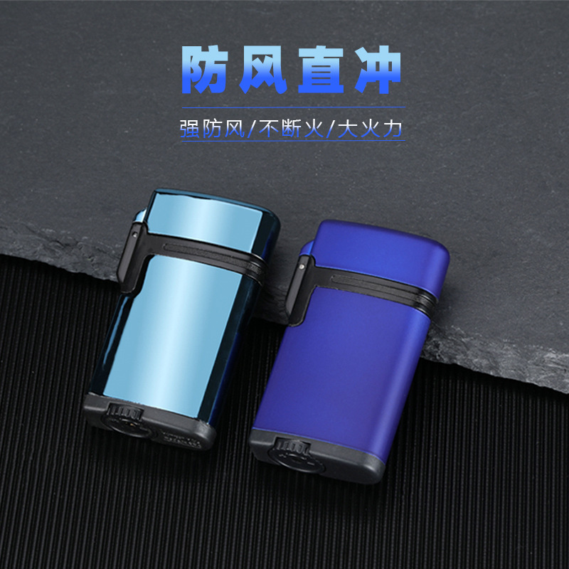 金属防风双直冲个性男士点烟打火机蓝火焰点火器可循环充气火机