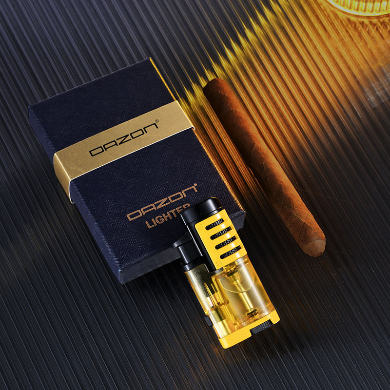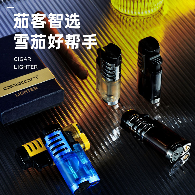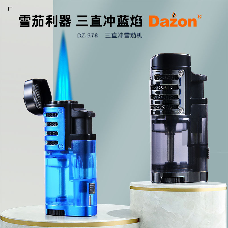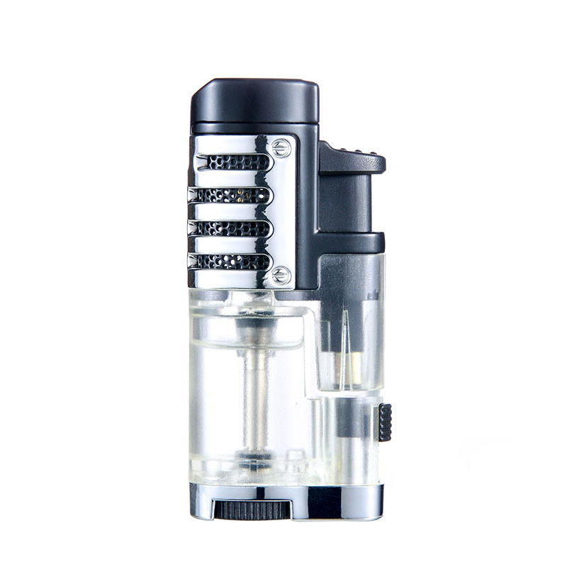 丁烷透明三直冲打火机 户外生火便携烟具 蓝焰雪茄充气火机批发