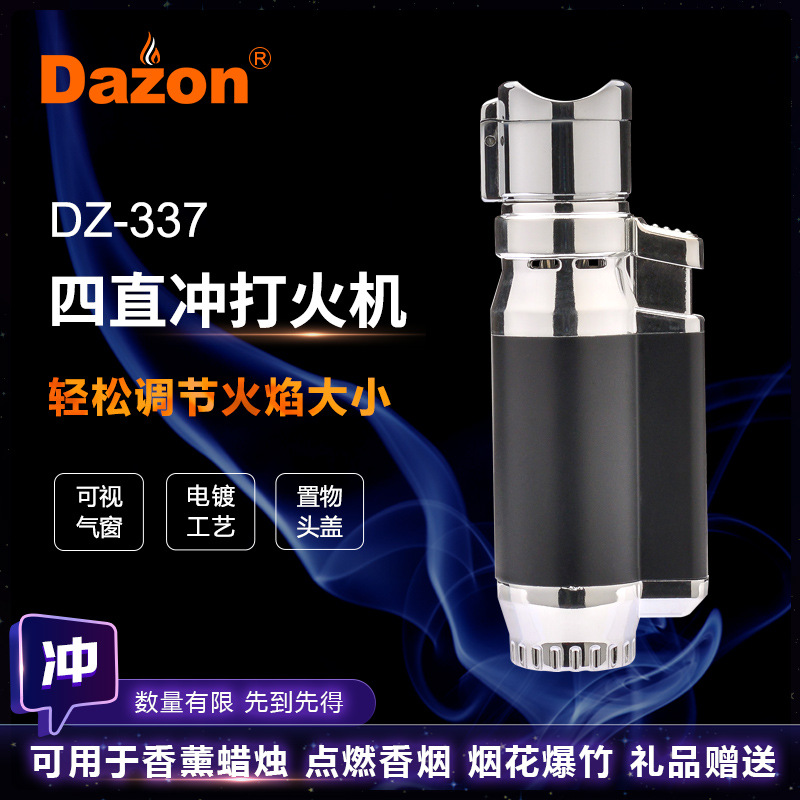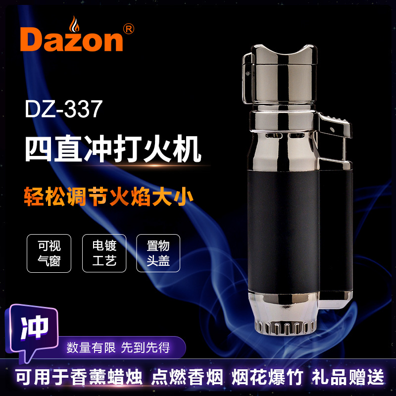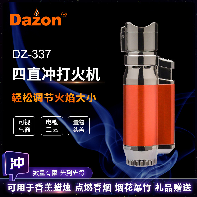 带保险四直冲礼品打火机高温点雪茄点烟器温州防风金属打火机批发