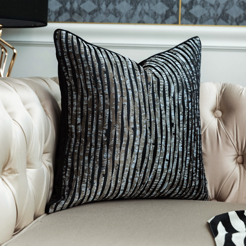 黑白条纹红木沙发酒店别墅民宿客厅卧室现代简约轻奢样板间抱枕套