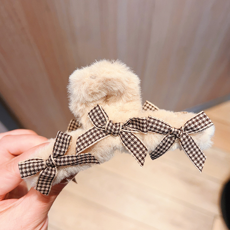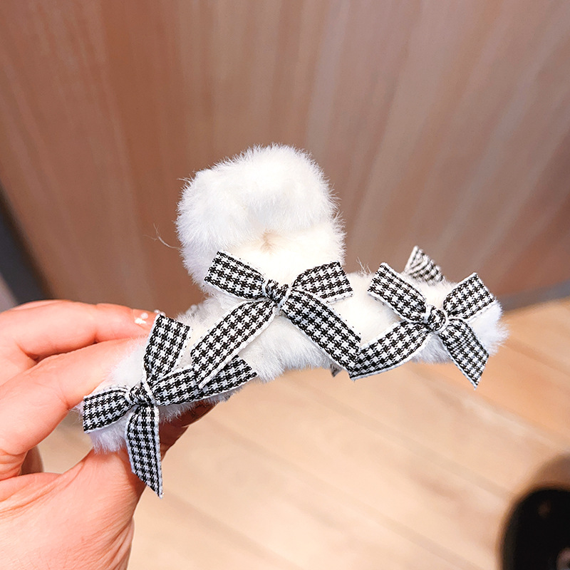 新款可爱毛绒抓夹大号女发夹蝴蝶结发抓鲨鱼夹头饰后脑勺秋冬网红