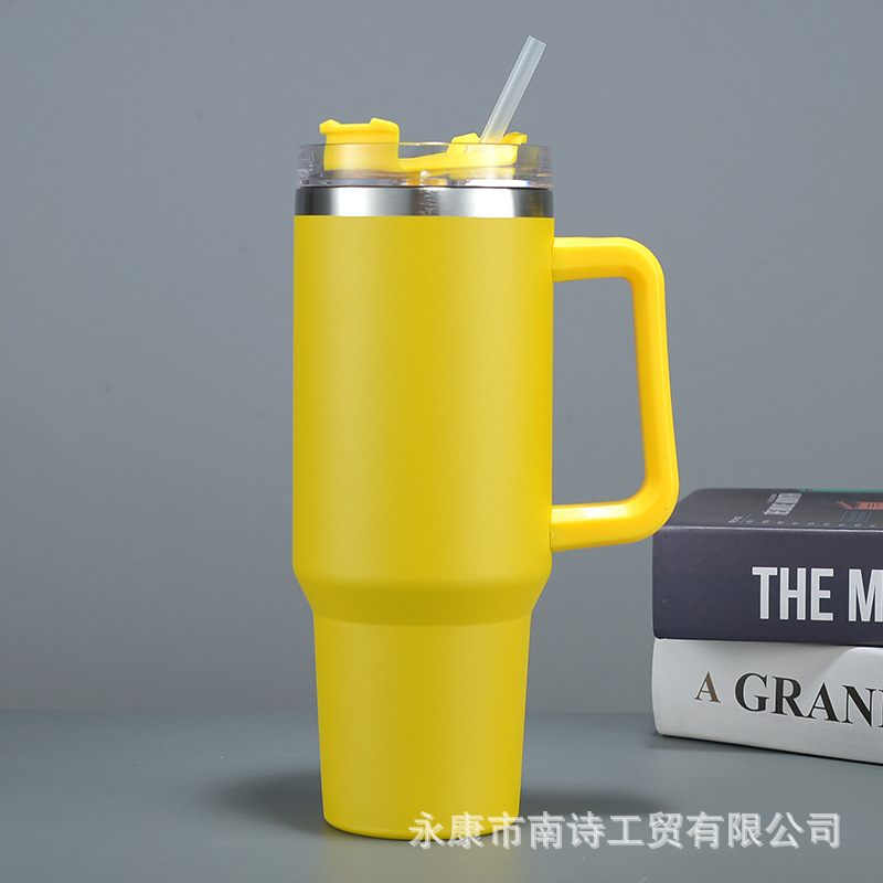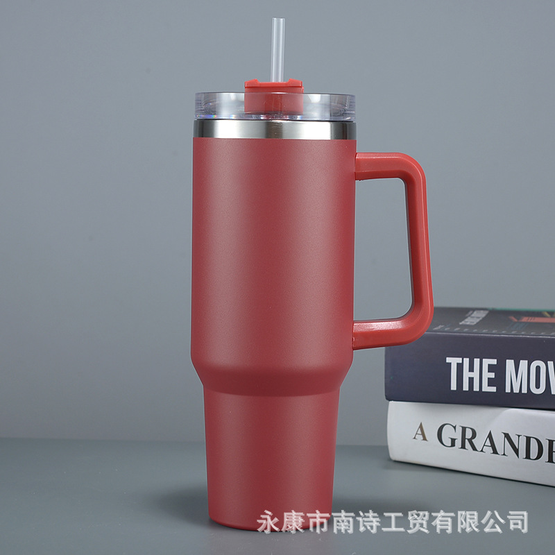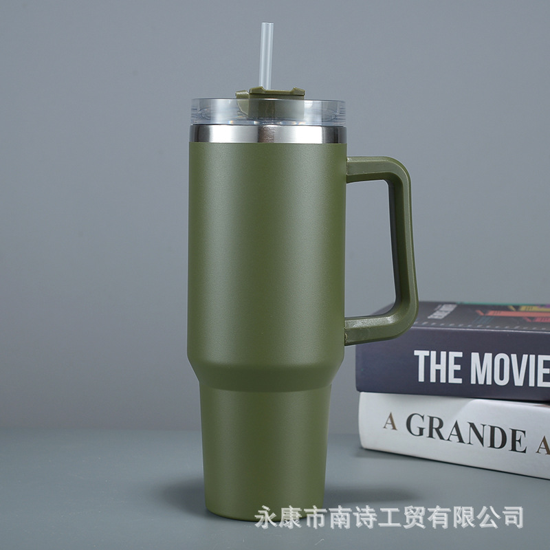 跨境304不锈钢保温杯40OZ带手柄吸管冰霸杯户外车载大容量汽车杯