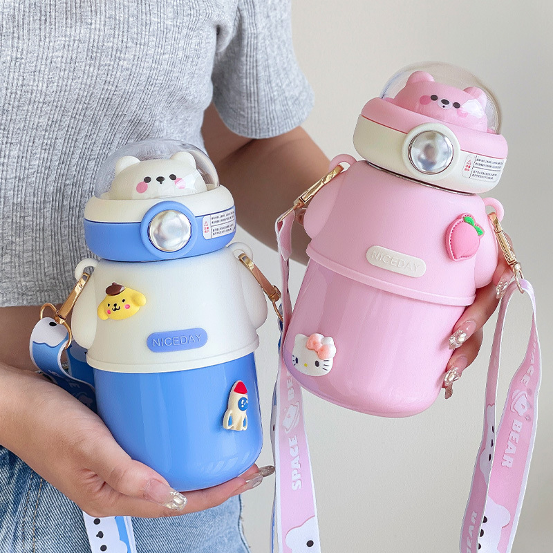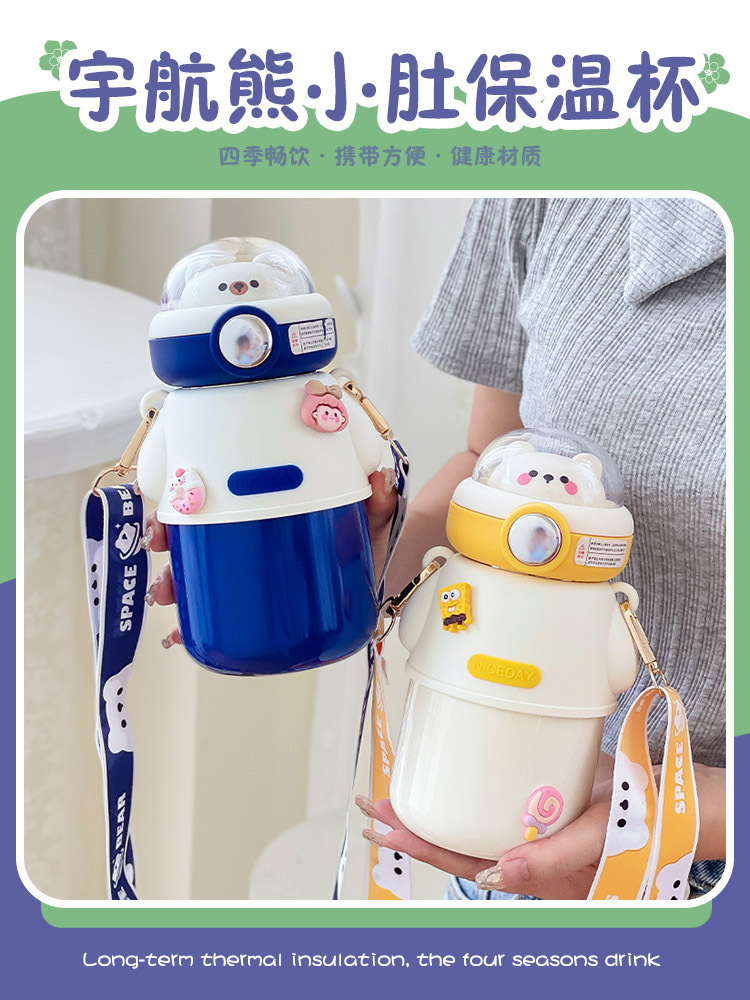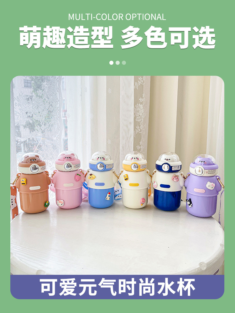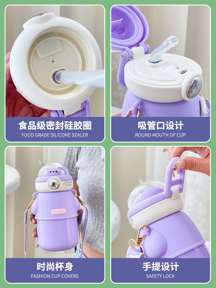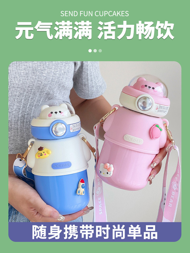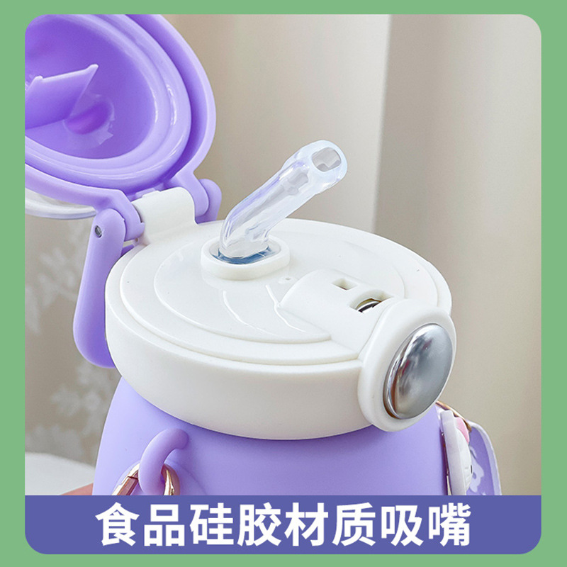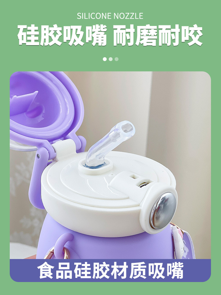316不锈钢儿童保温杯可爱斜挎高颜值水杯大容量吸管杯女士大肚杯