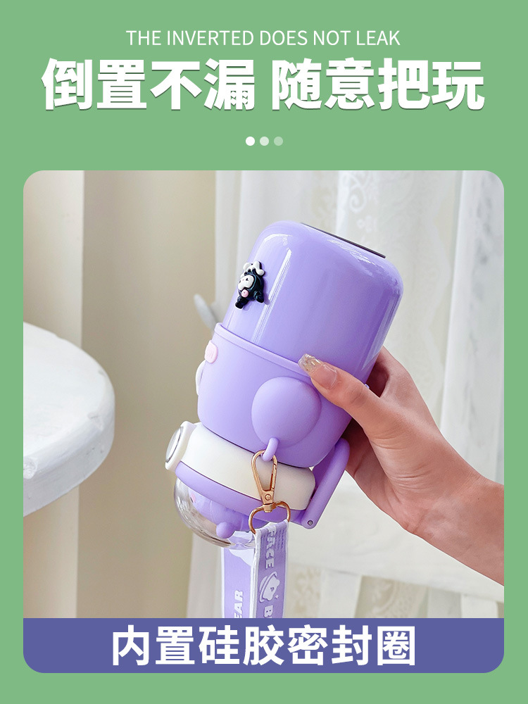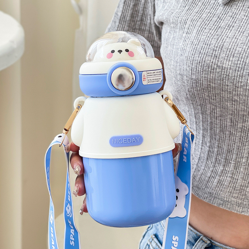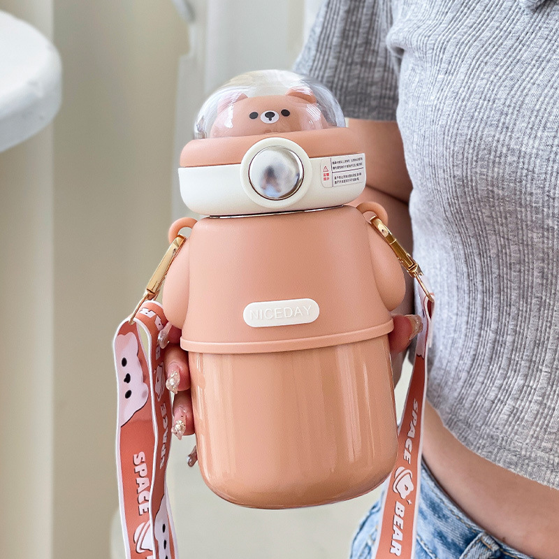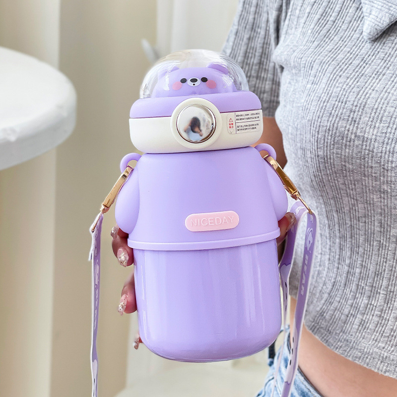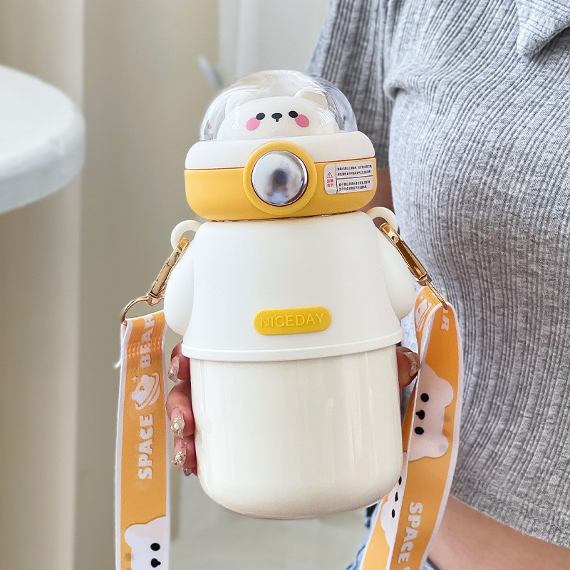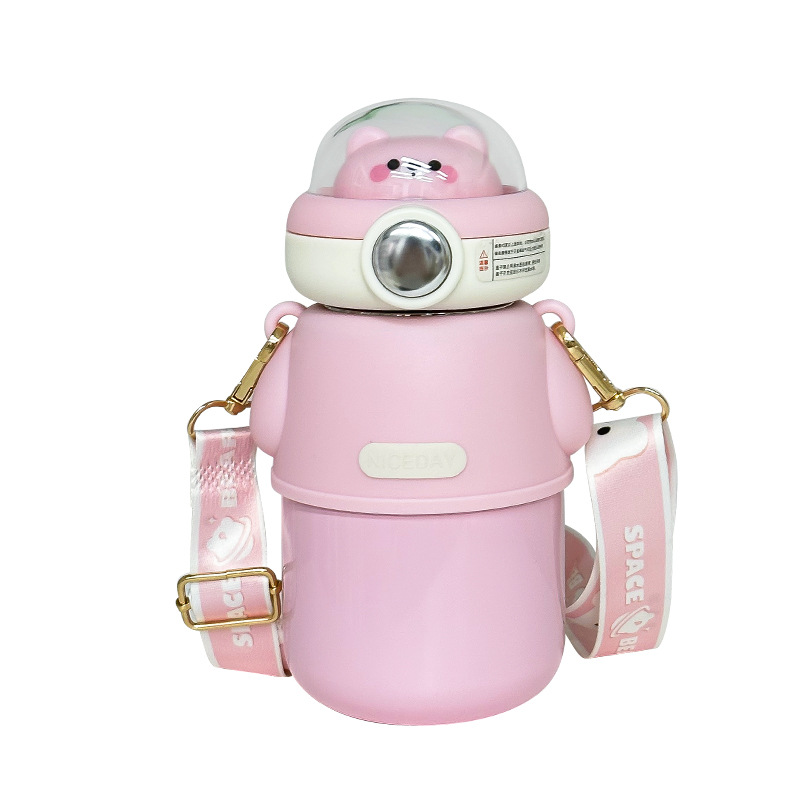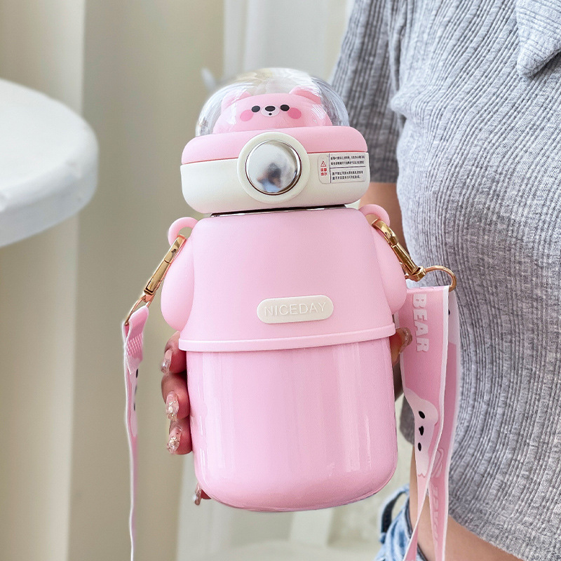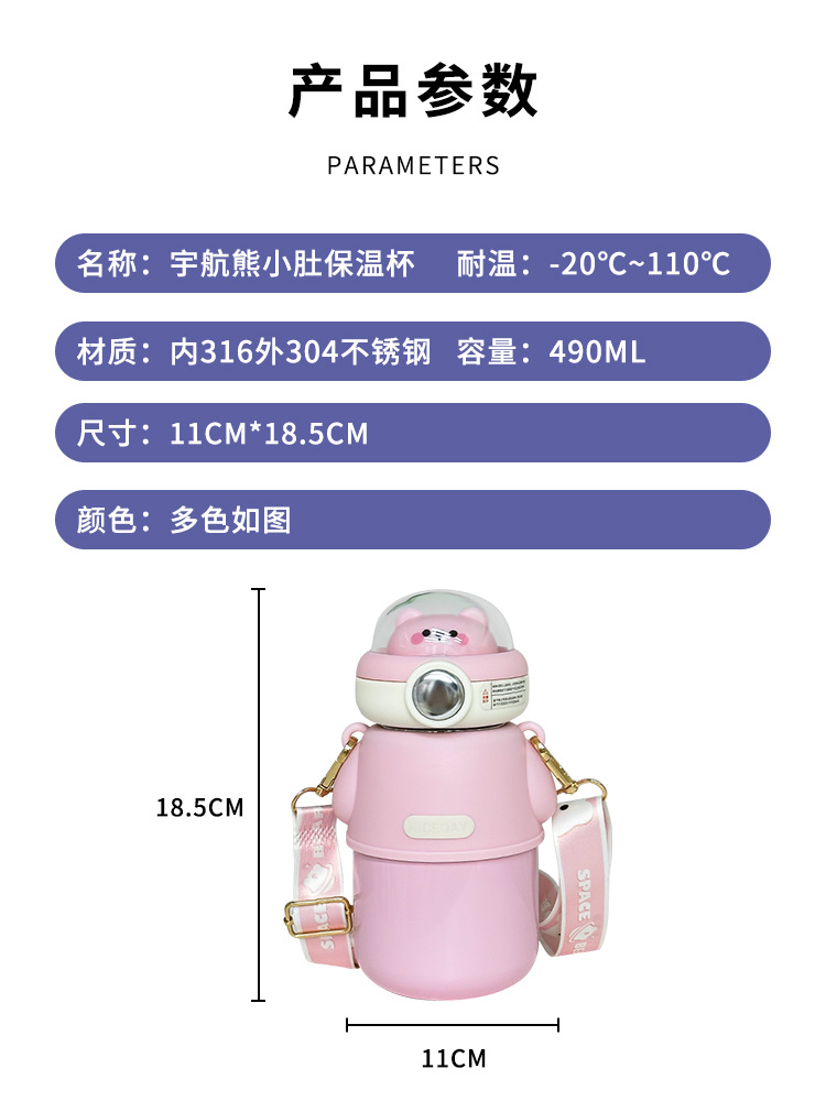 316不锈钢儿童保温杯可爱斜挎高颜值水杯大容量吸管杯女士大肚杯