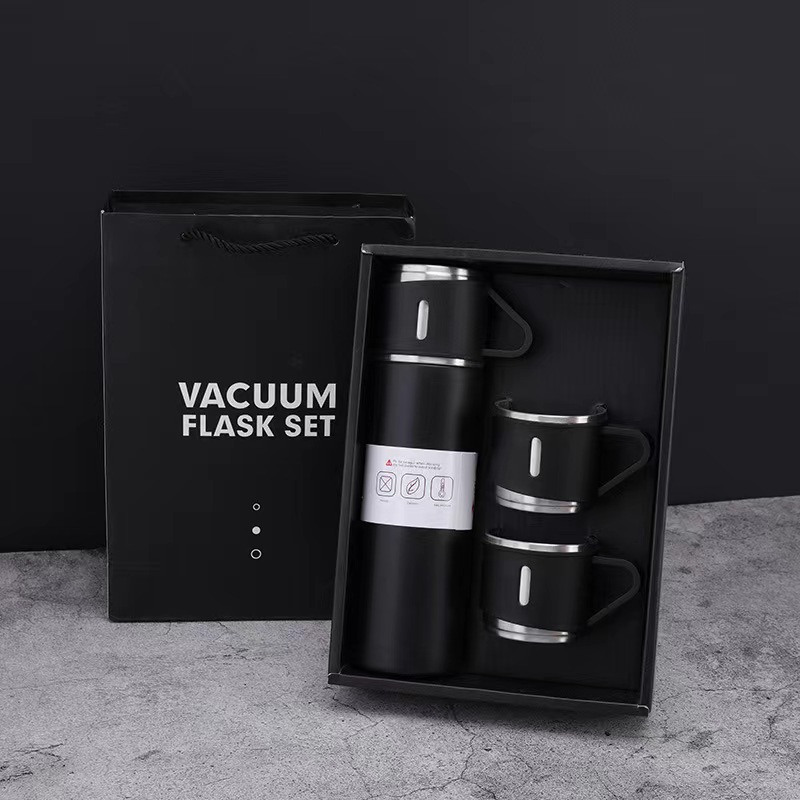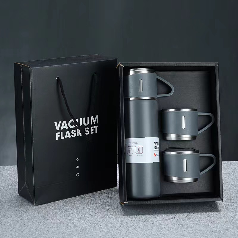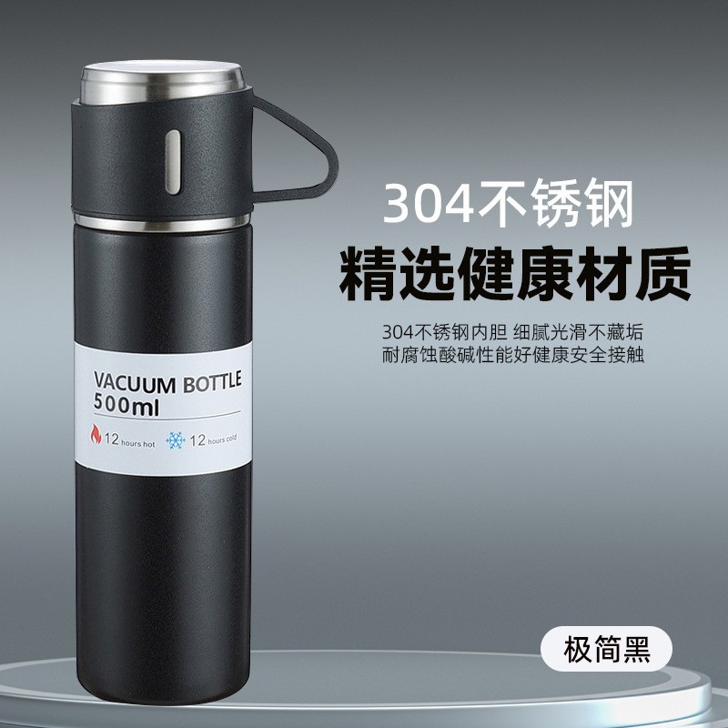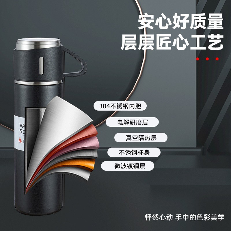 新款大气304不锈钢一杯三盖保温杯套装商务活动礼礼品杯批发
