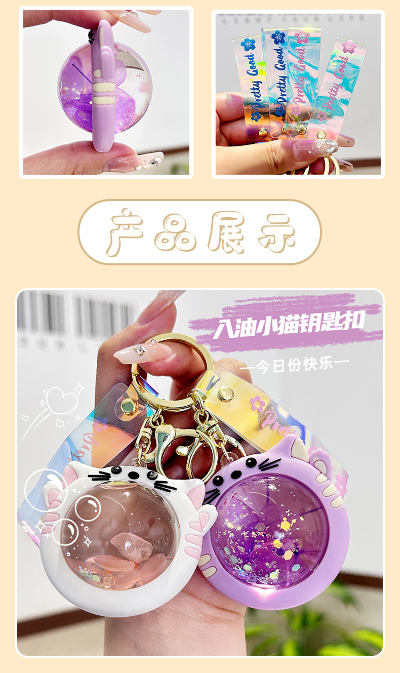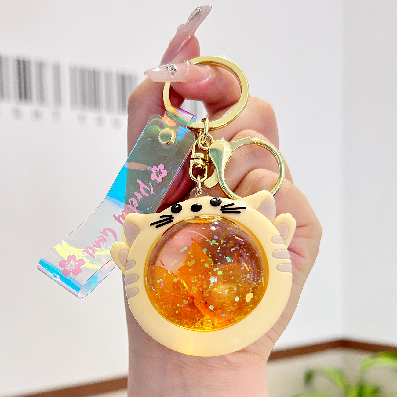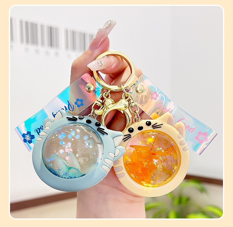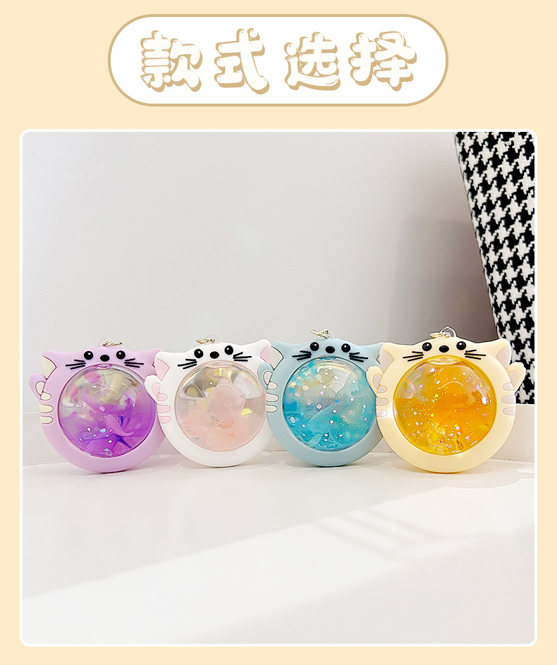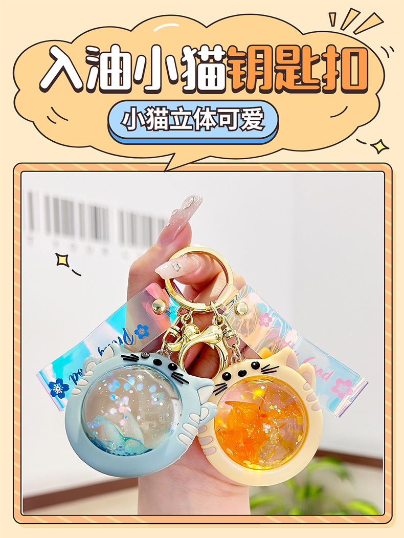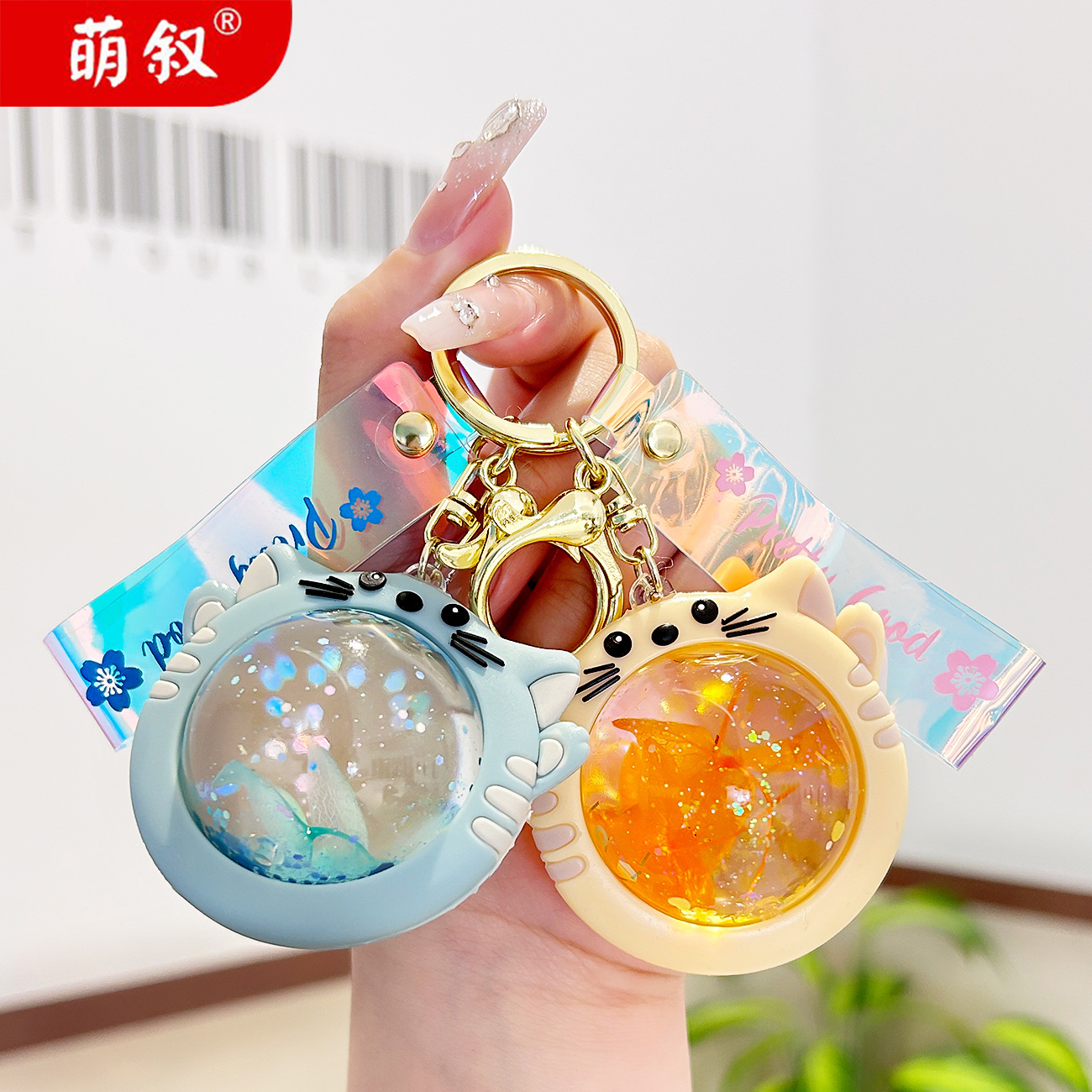 入油小猫萌宠钥匙扣流沙入油亚克力挂件钥匙链创意情侣书包小挂饰