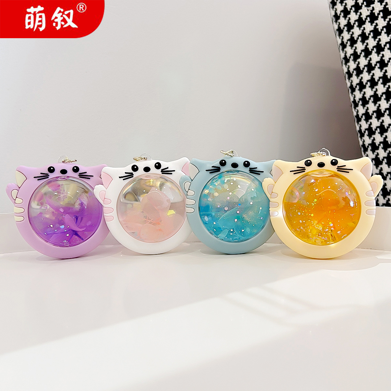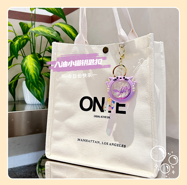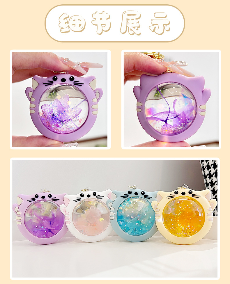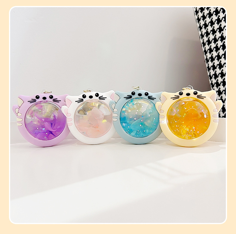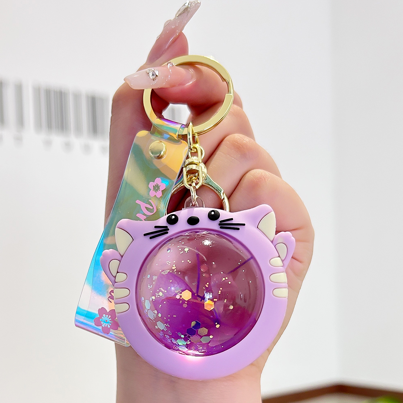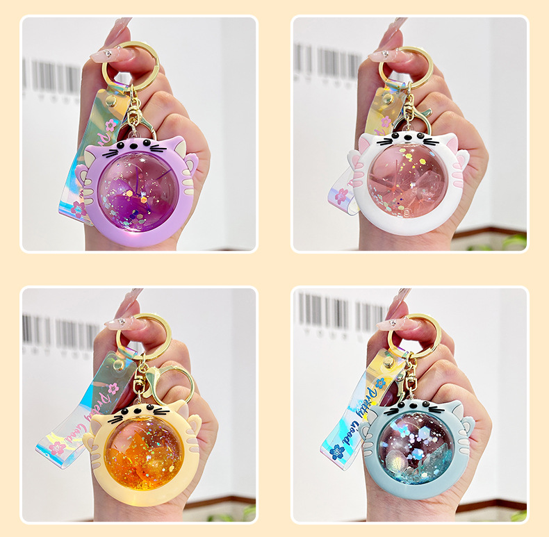 入油小猫萌宠钥匙扣流沙入油亚克力挂件钥匙链创意情侣书包小挂饰