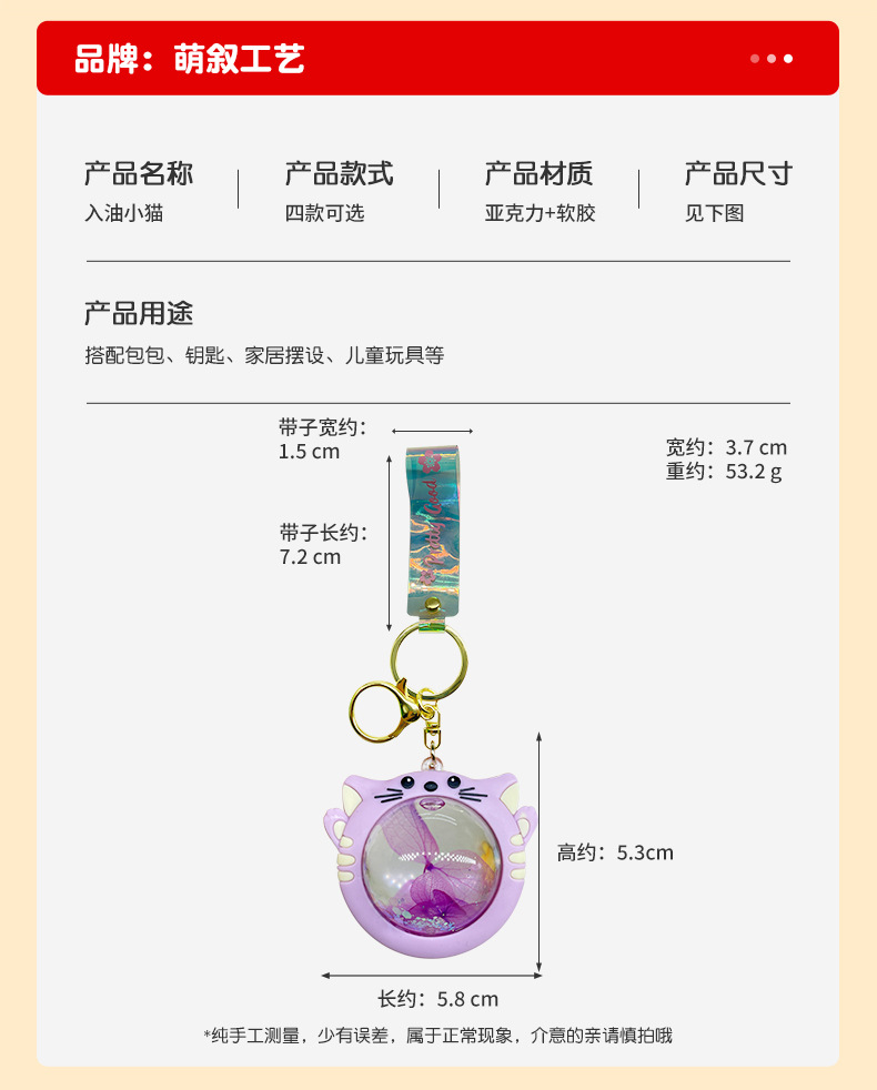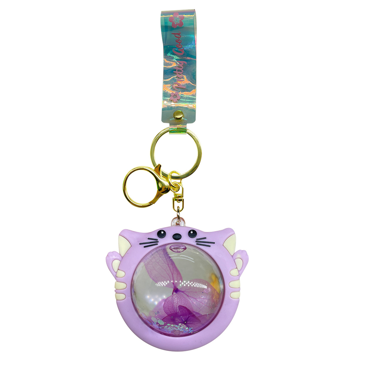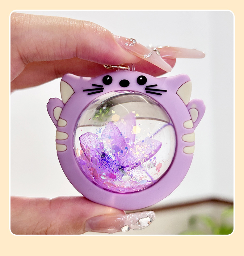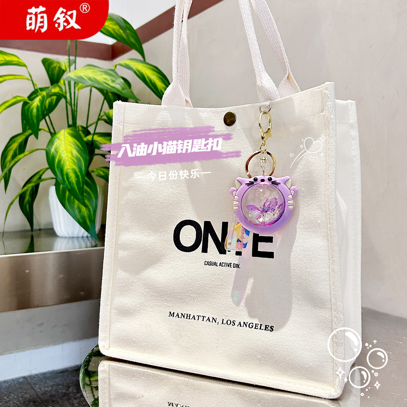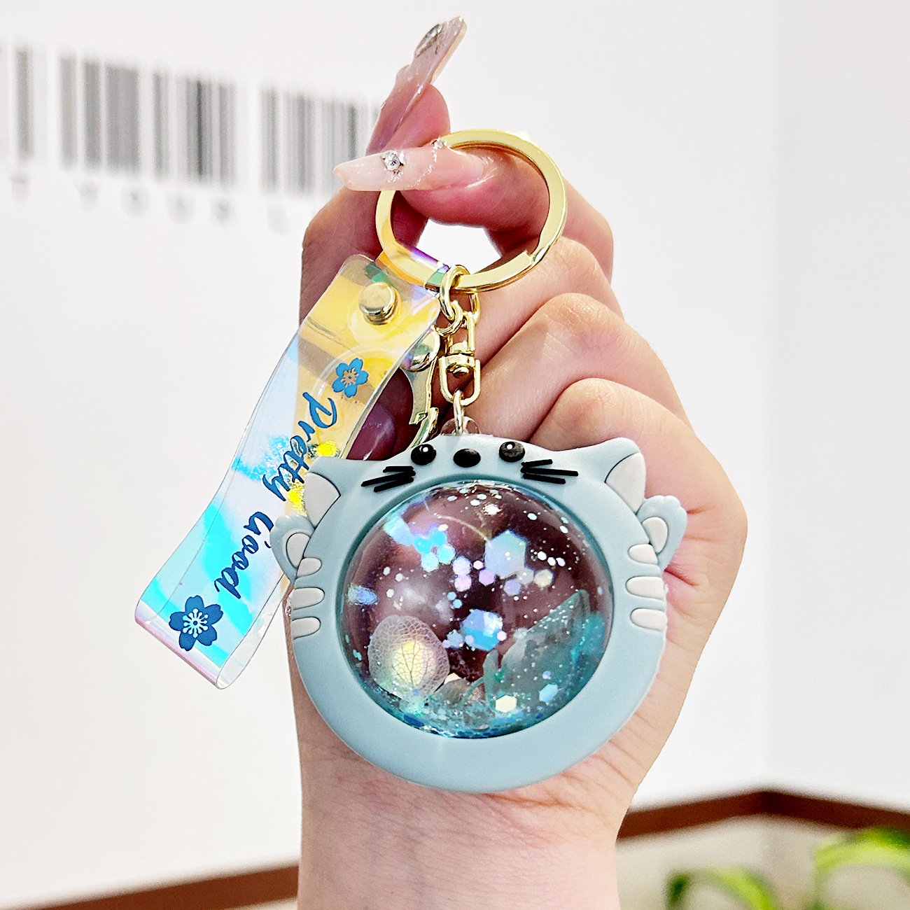 入油小猫萌宠钥匙扣流沙入油亚克力挂件钥匙链创意情侣书包小挂饰