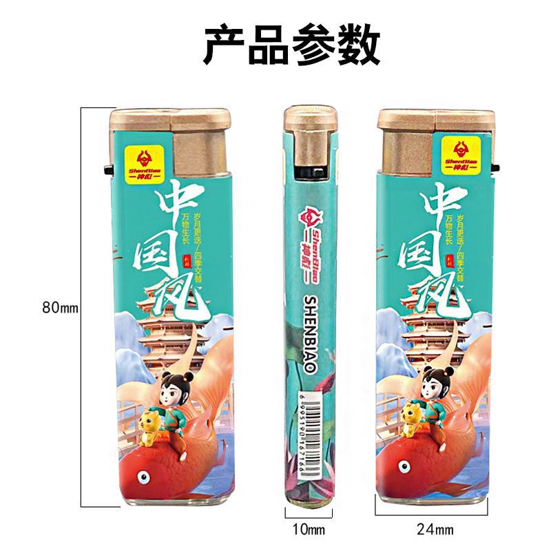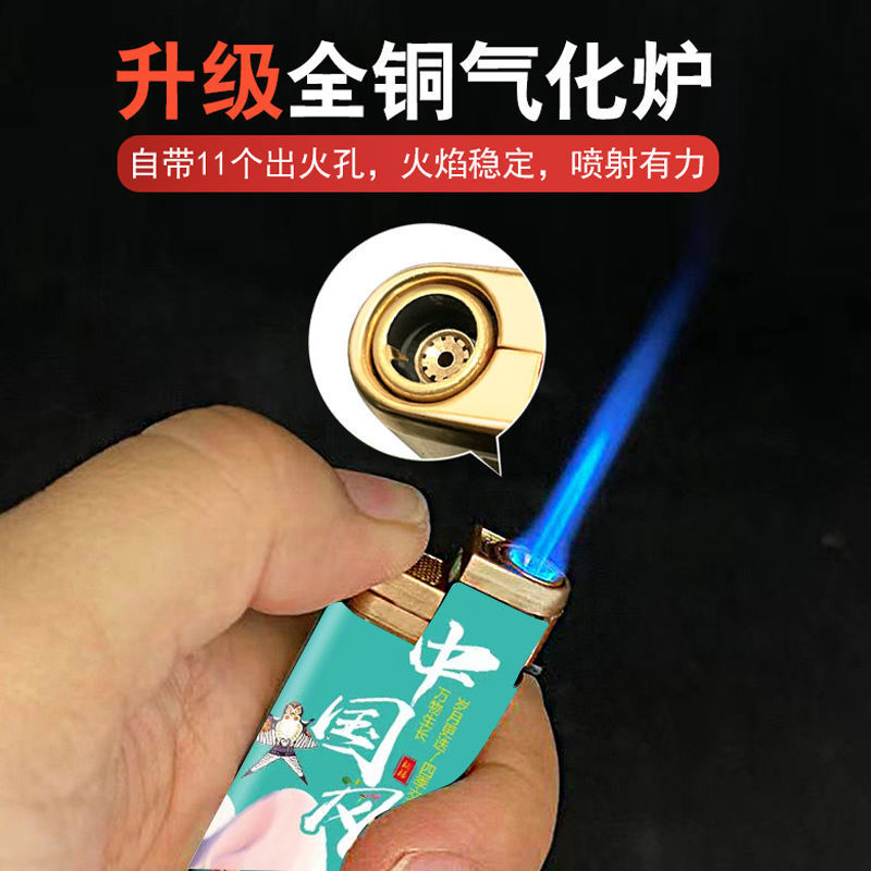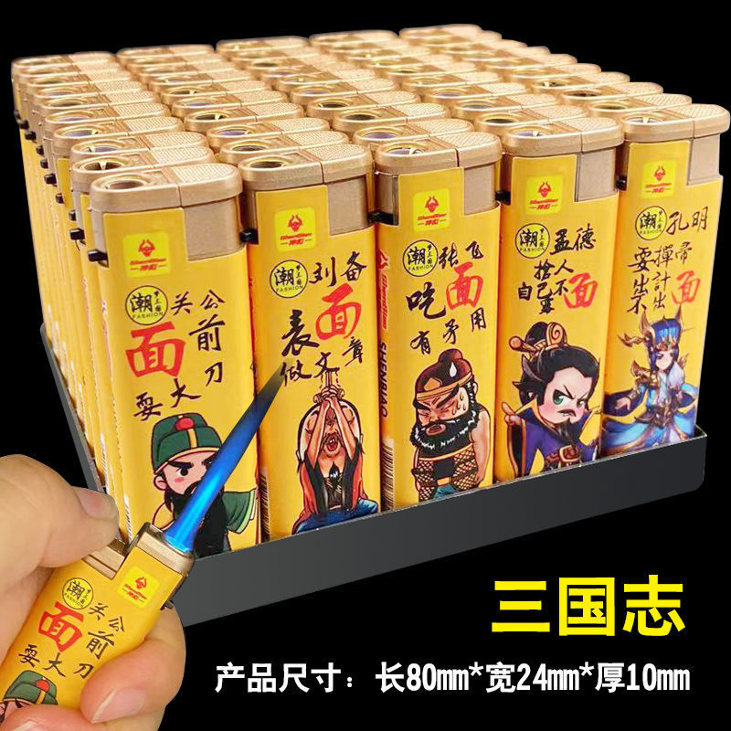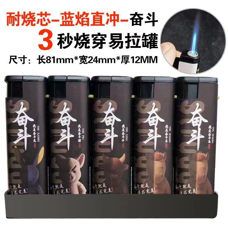 精选蓝焰直冲打火机宽版一盒50支防风火机商超批发可充气家用10支