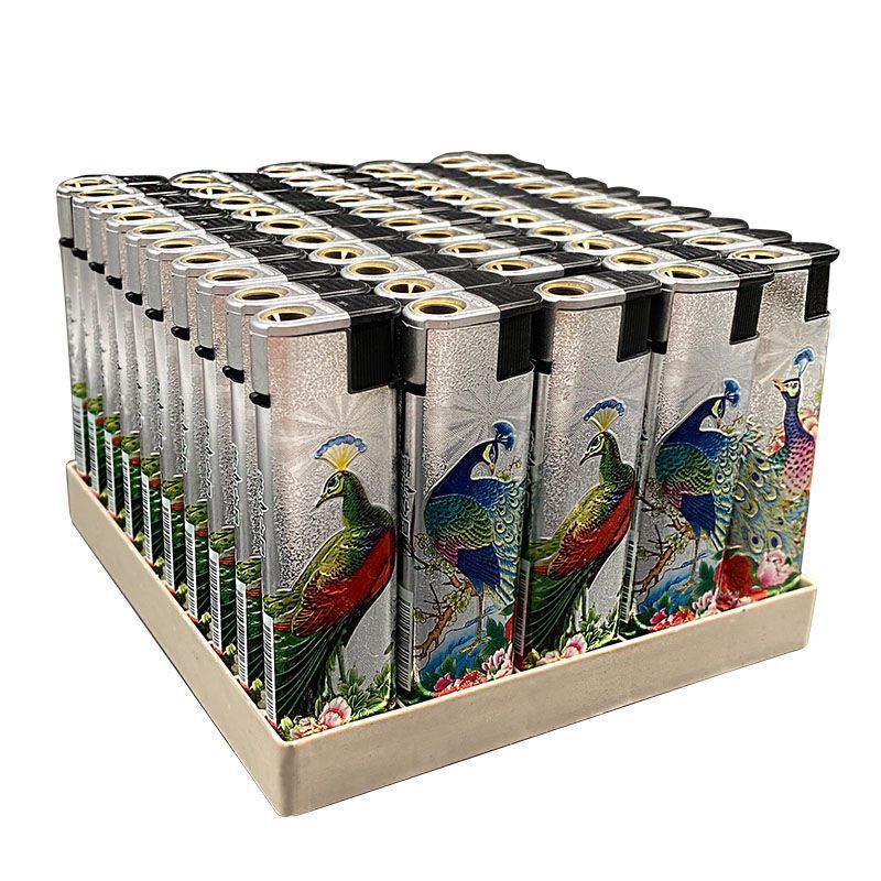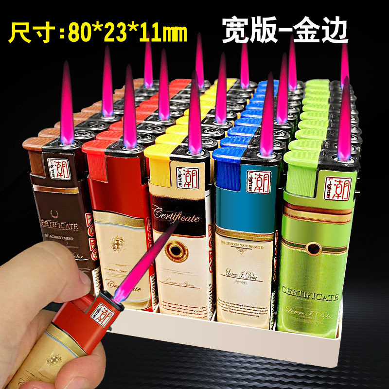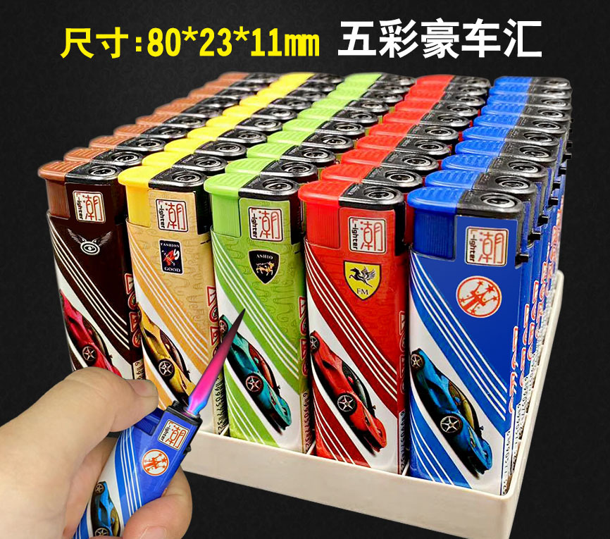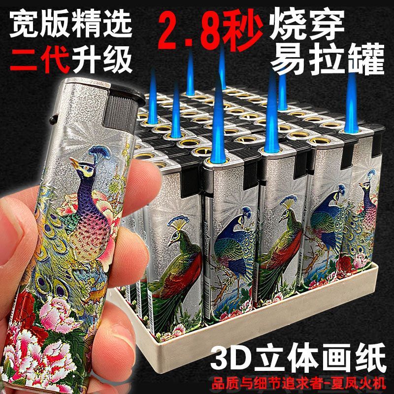 新款批发防风蓝焰直冲打火机家用一次性电子点火便利店超市可充气
