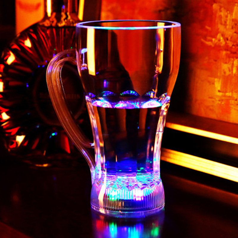 感应闪光杯倒水即亮 创意发光水杯感应啤酒杯手柄可乐杯