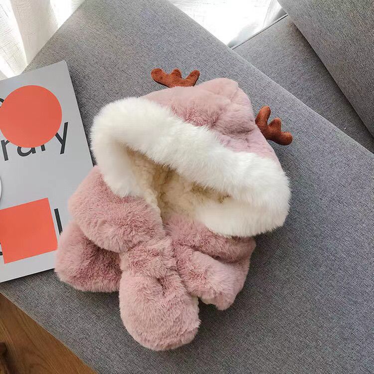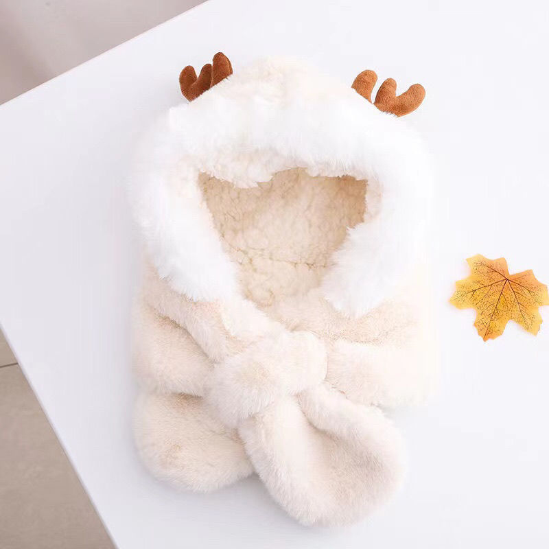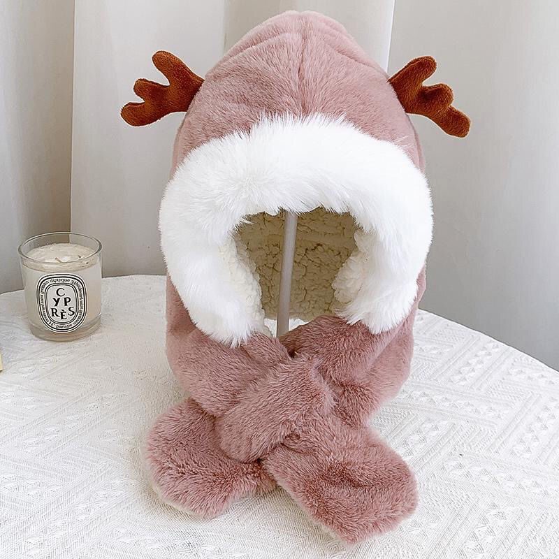 冬季儿童帽子围巾一体男女童加厚保暖婴儿可爱宝宝鹿角防风护耳帽