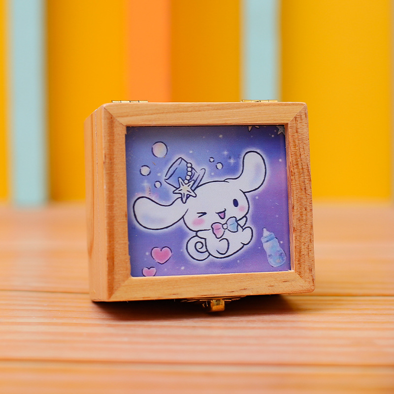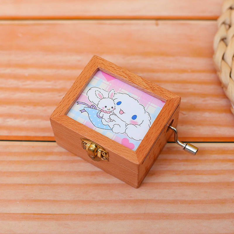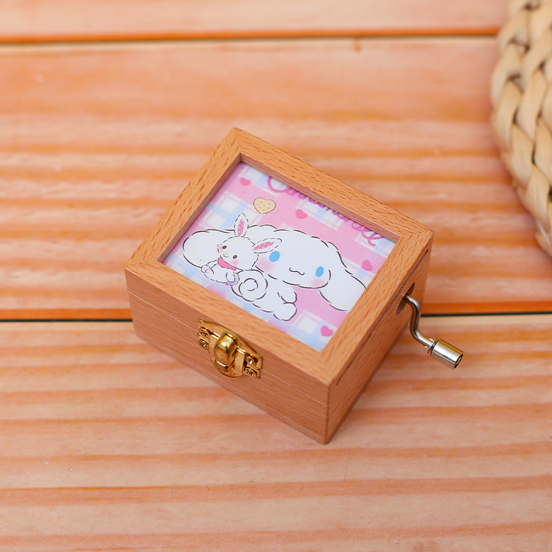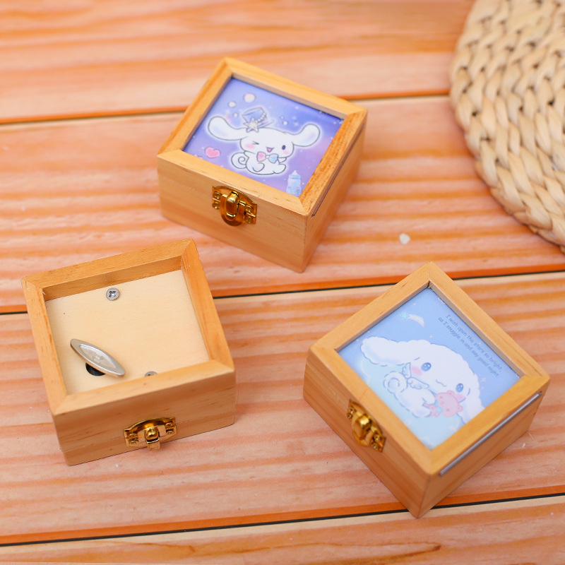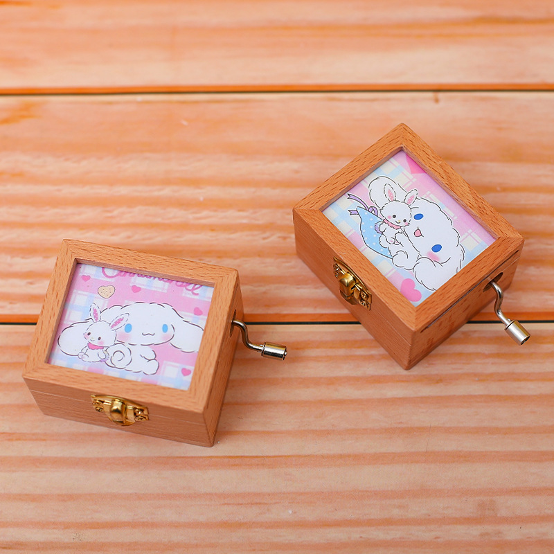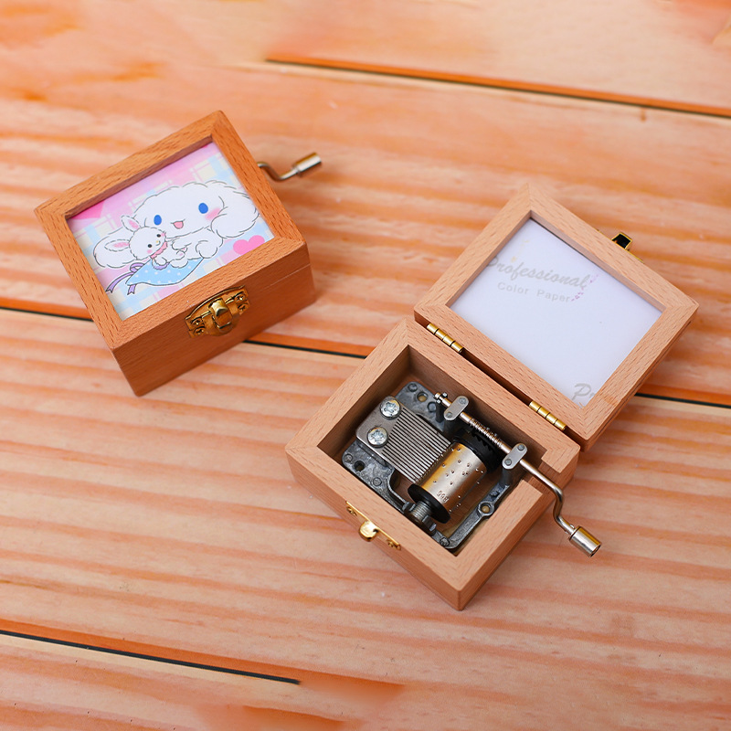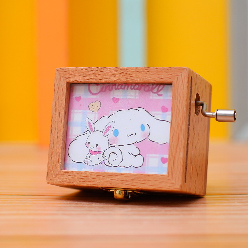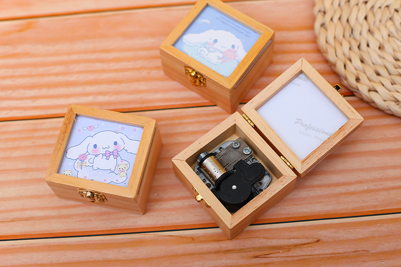 可定制生日礼物礼品桂桂兔新款木制复古美式八音盒相框手摇音乐盒