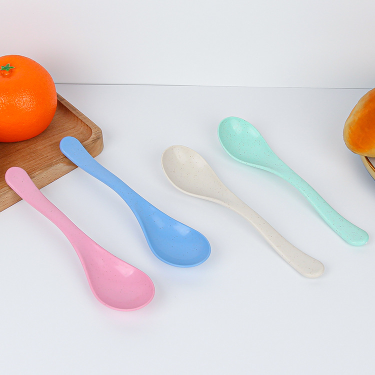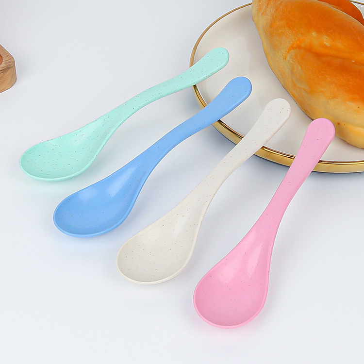 跨境小麦秸秆勺子家用学生儿童搅拌汤勺加厚耐摔吃饭勺子调羹批发