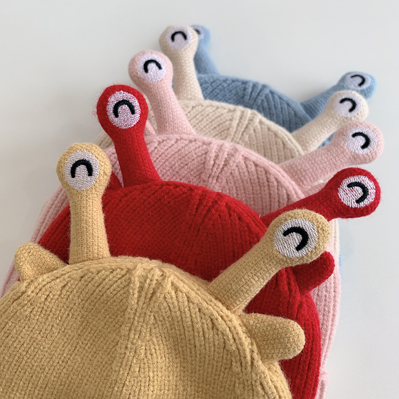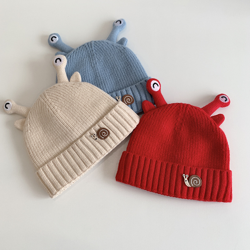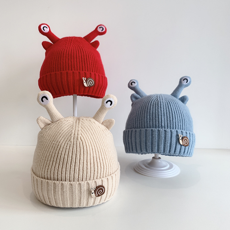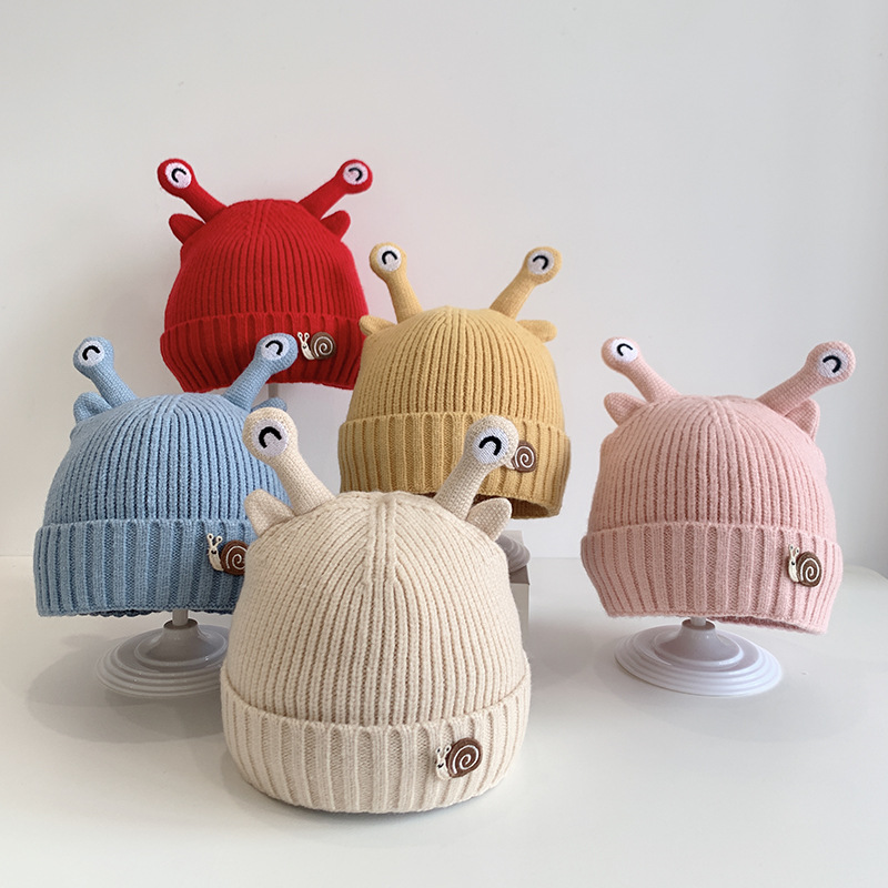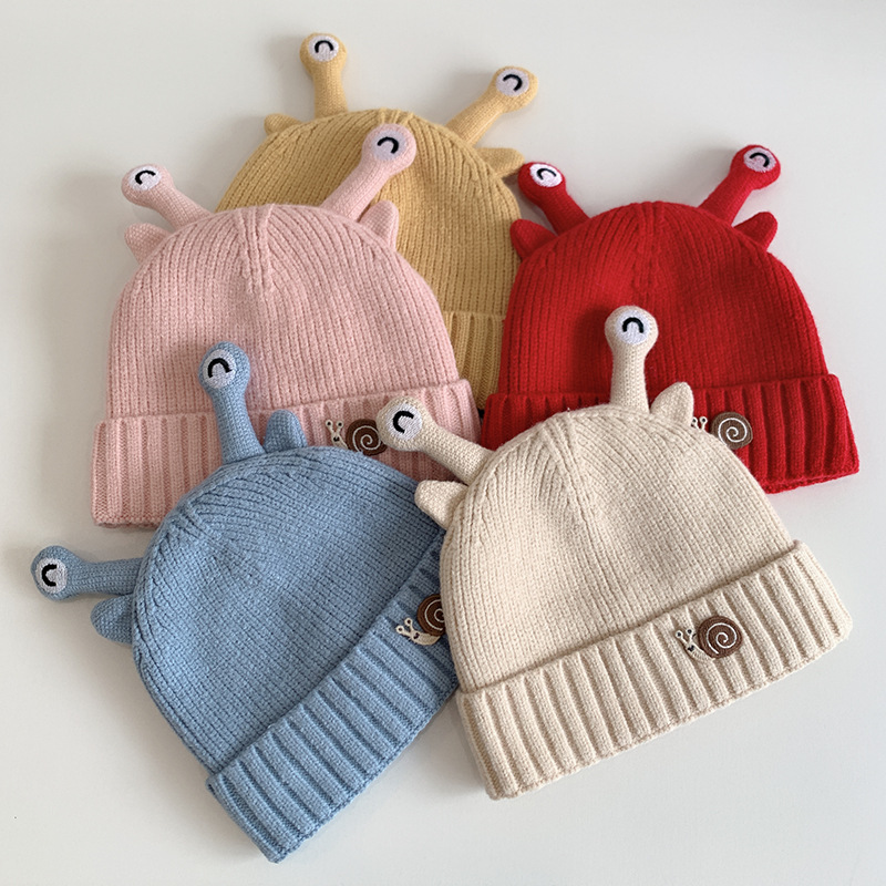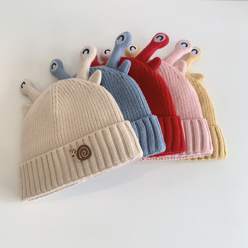 糖果色儿童针织帽小蜗牛秋冬保暖帽子潮童宝宝东北帽毛线保暖帽子