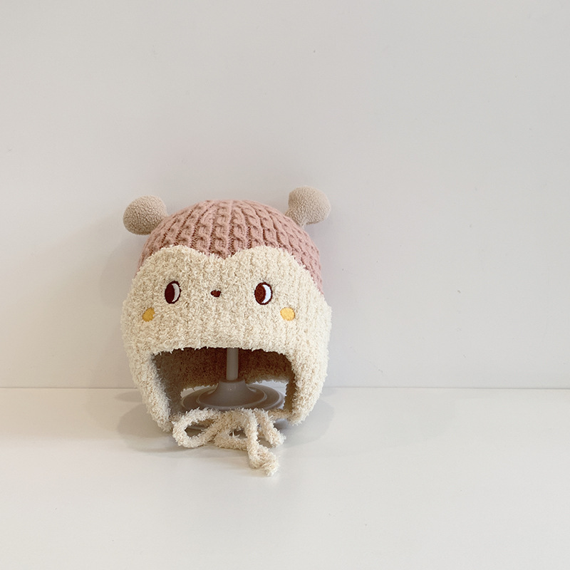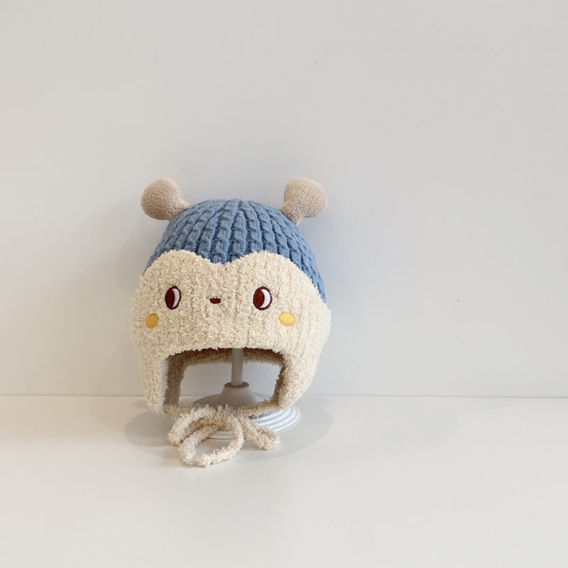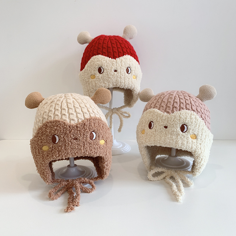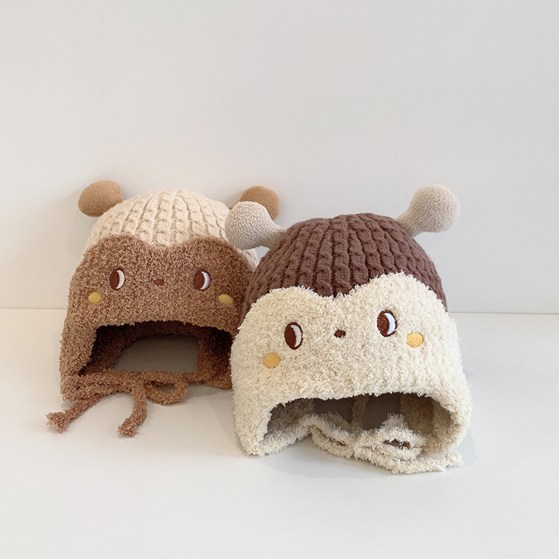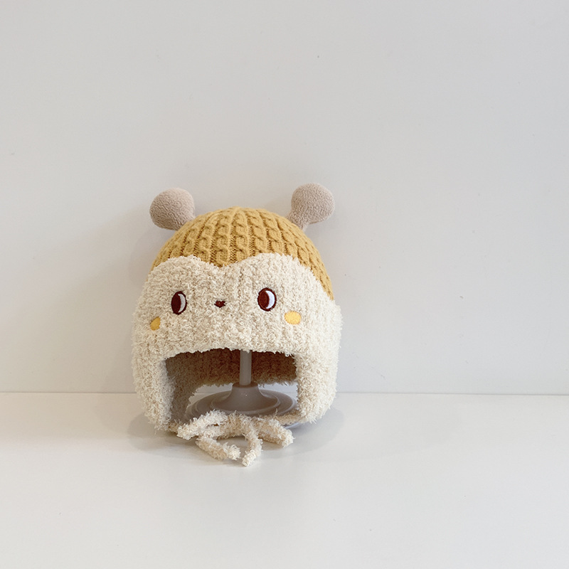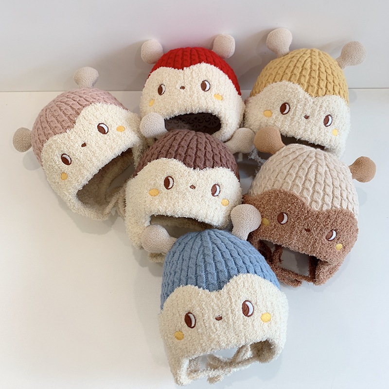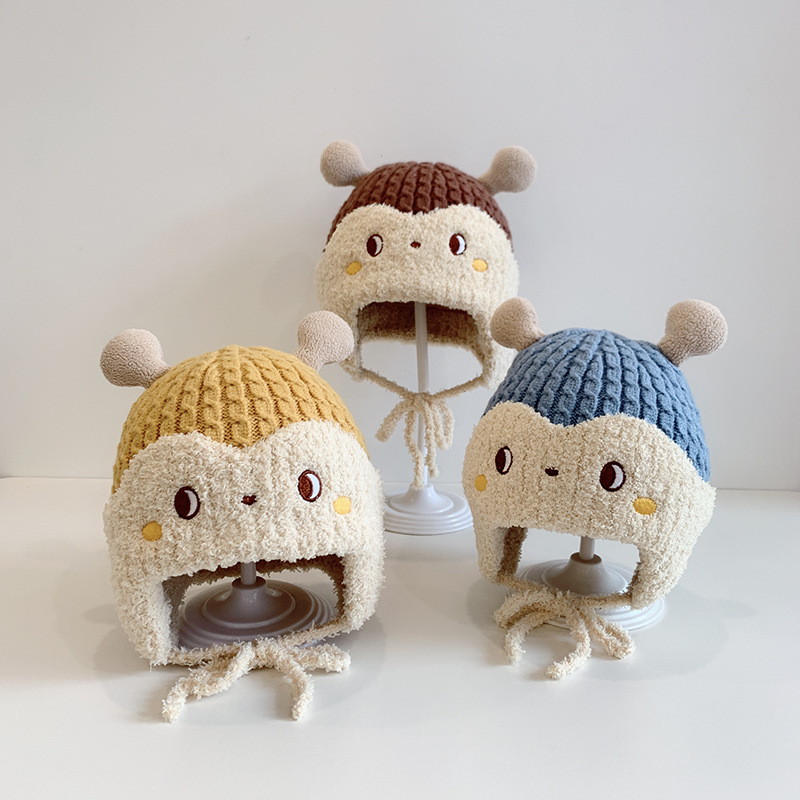 卡通小蜜蜂儿童针织帽子百搭加里布宝宝护耳毛线帽3-24个月婴儿帽
