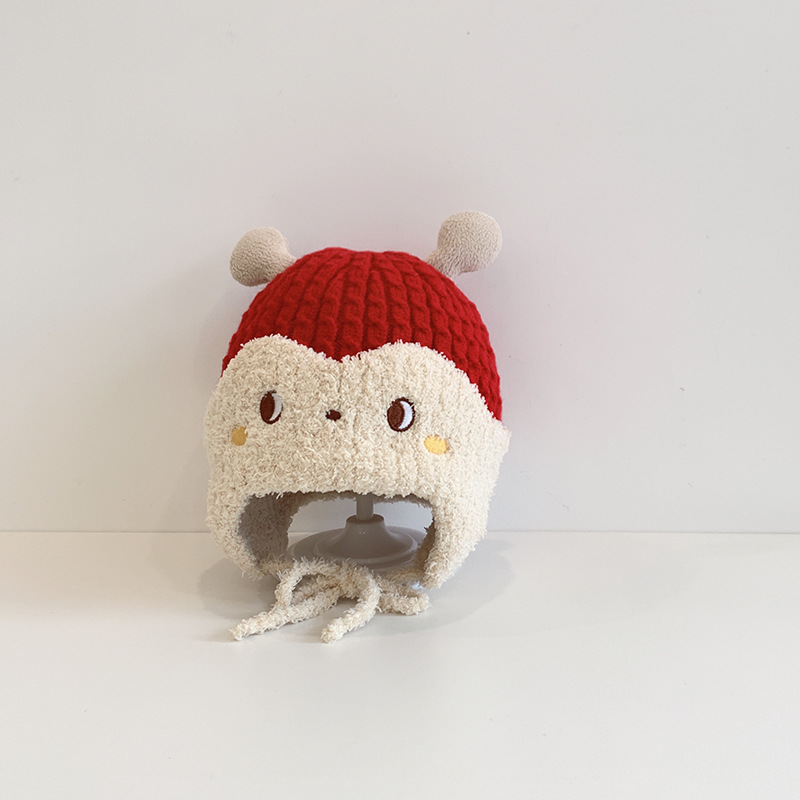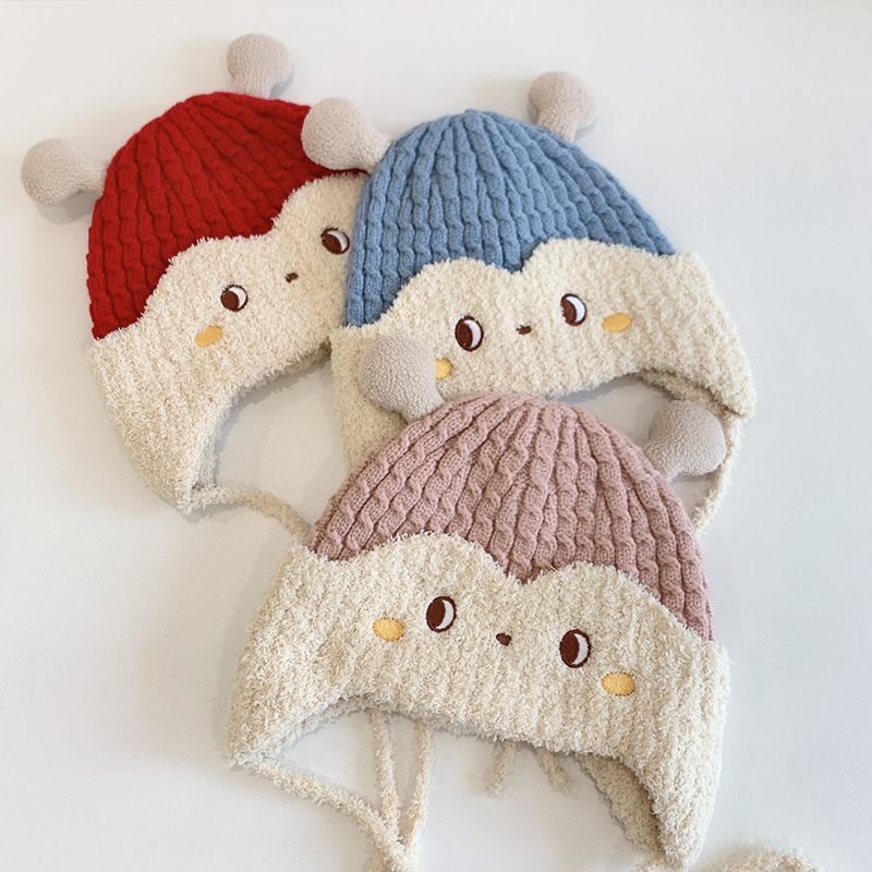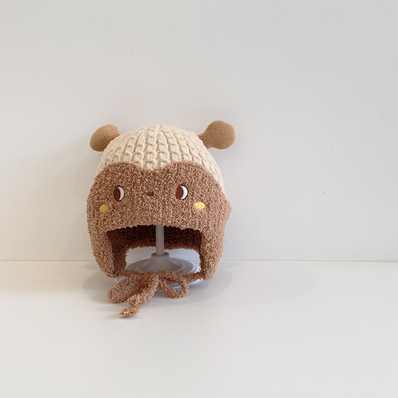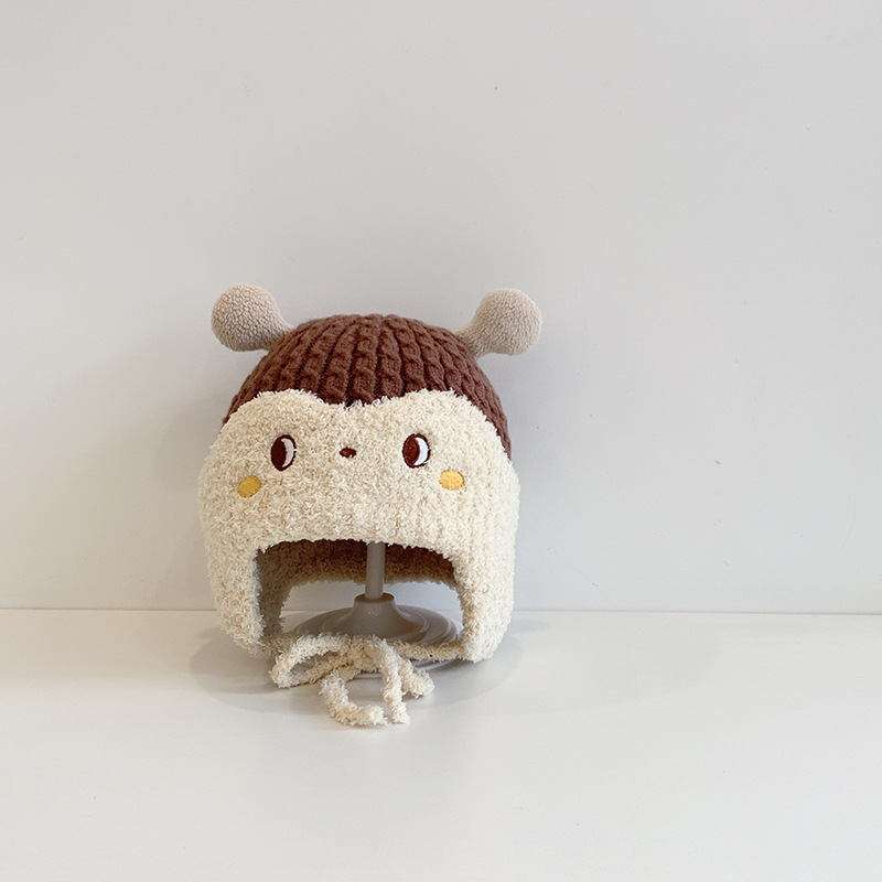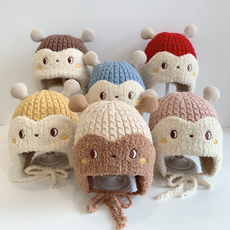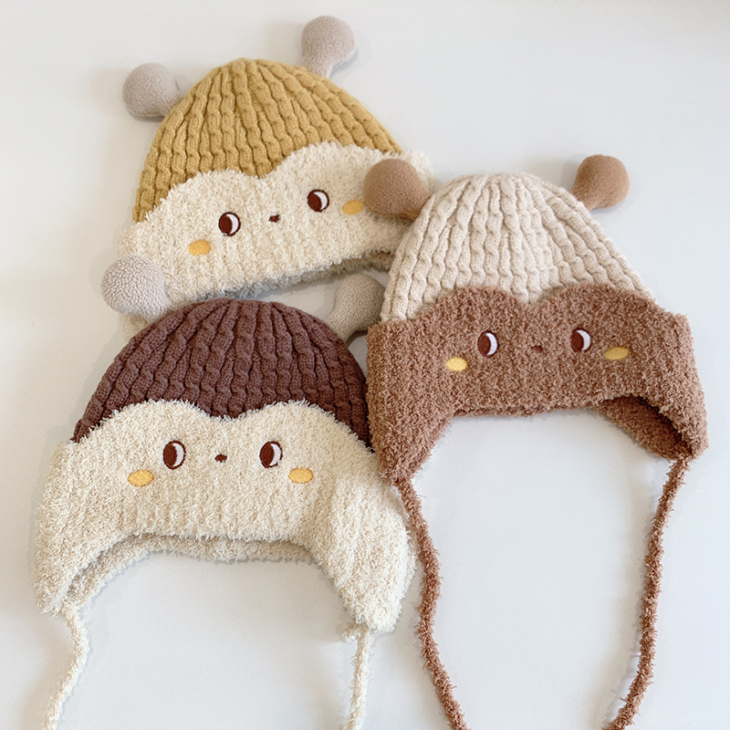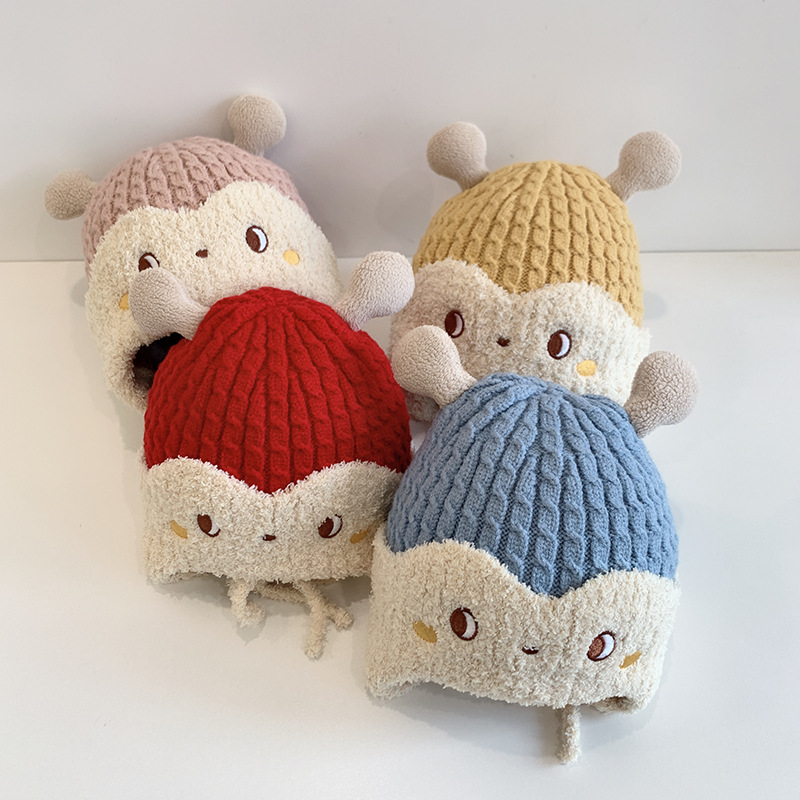卡通小蜜蜂儿童针织帽子百搭加里布宝宝护耳毛线帽3-24个月婴儿帽