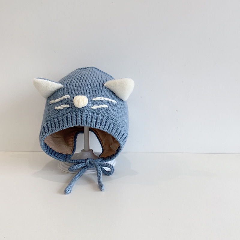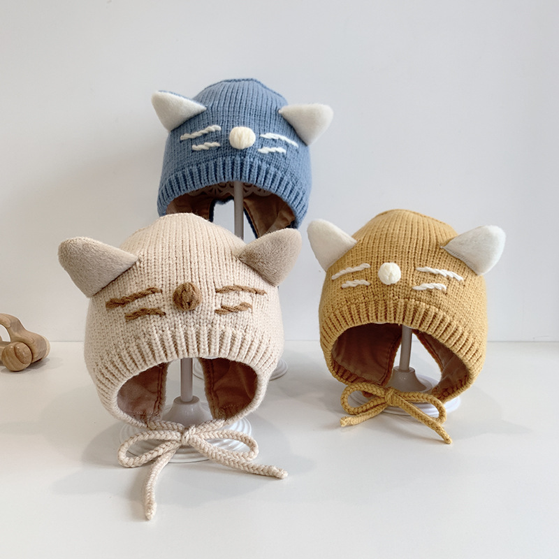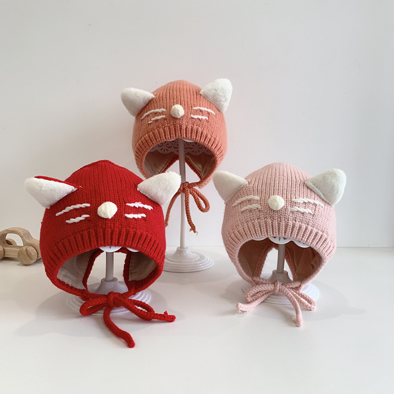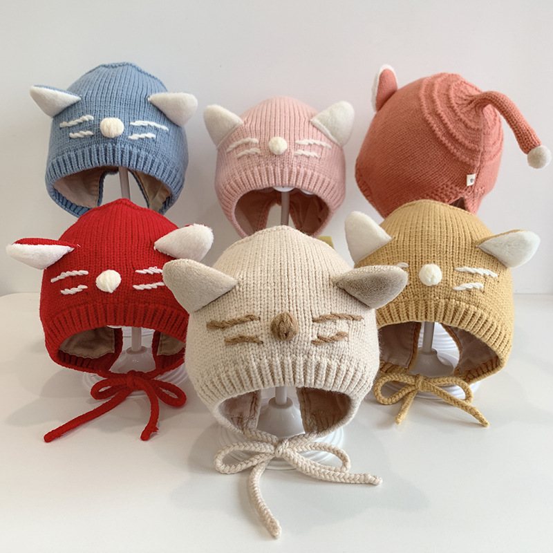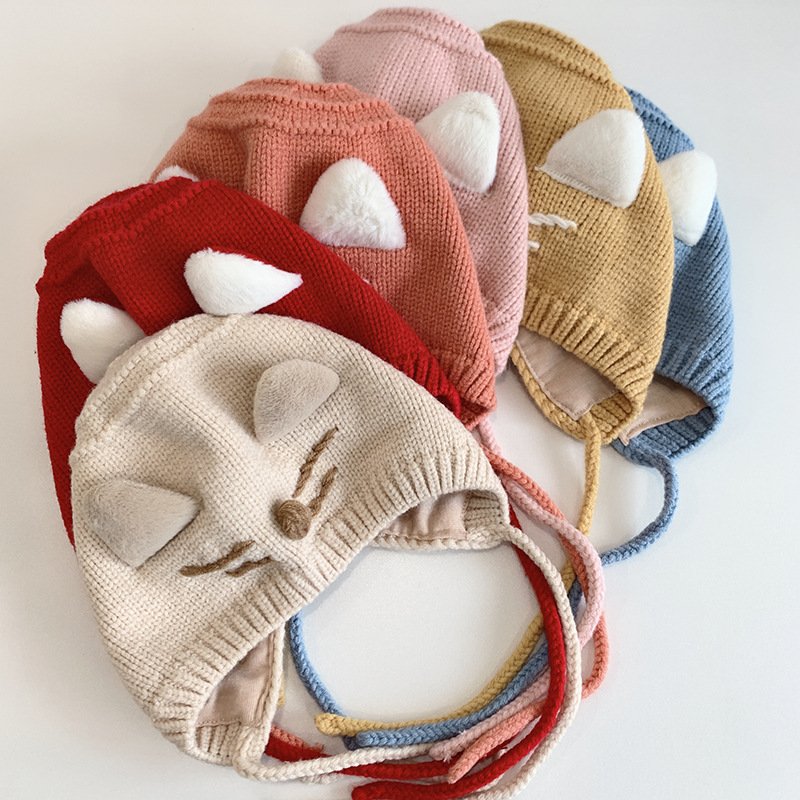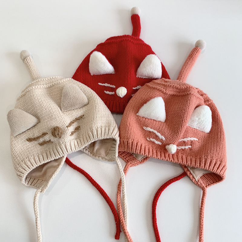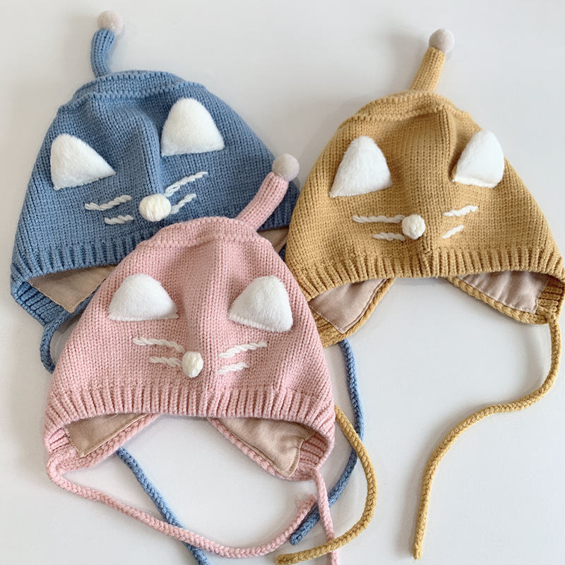 猫咪宝宝帽子秋冬天可爱韩版护耳帽婴幼儿童婴儿针织毛线帽男女童