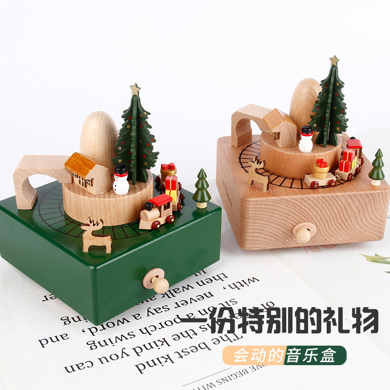 创意八音盒纯手工木质音乐盒旋转木马玩具摆件儿童圣诞节生日礼物