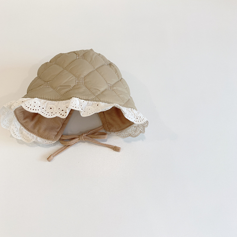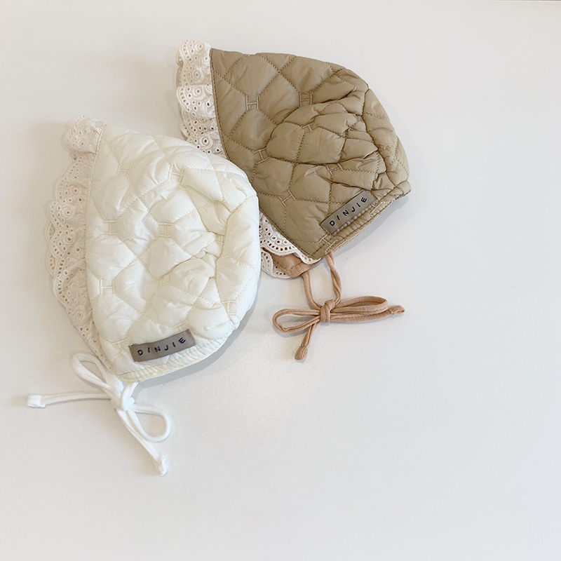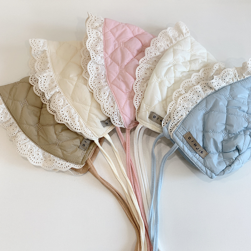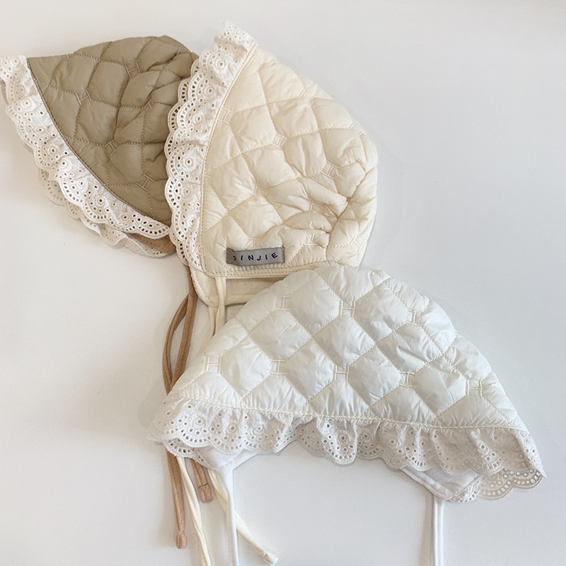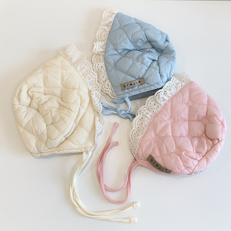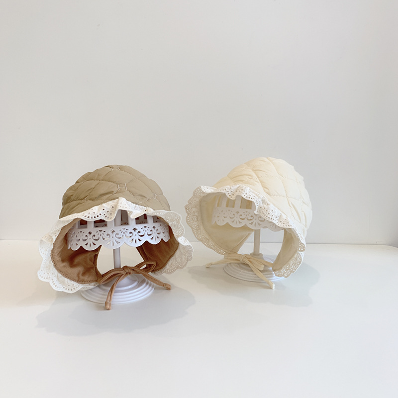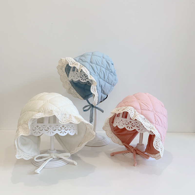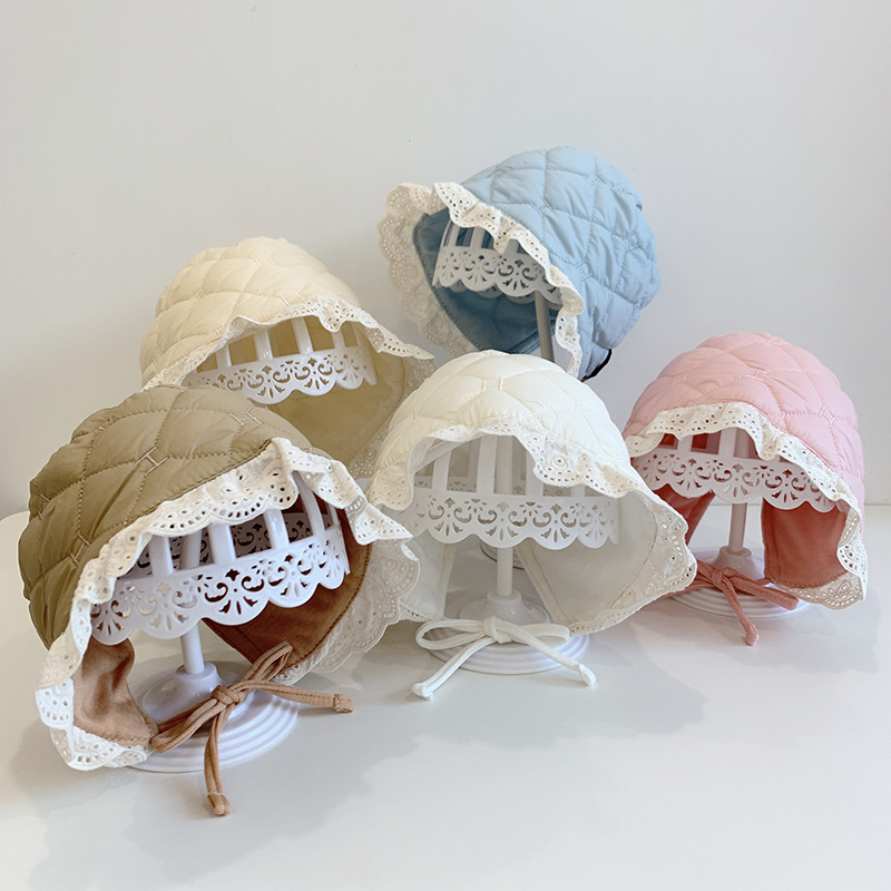 蕾丝包头帽子春秋冬可爱超萌婴幼儿女宝宝小熊加棉加厚护耳公主帽