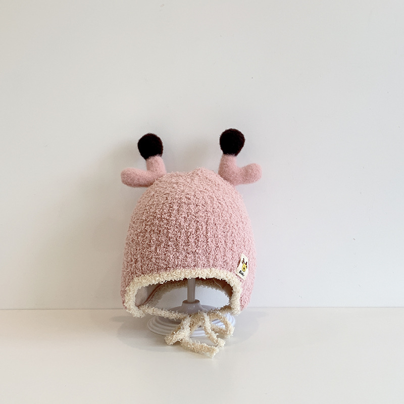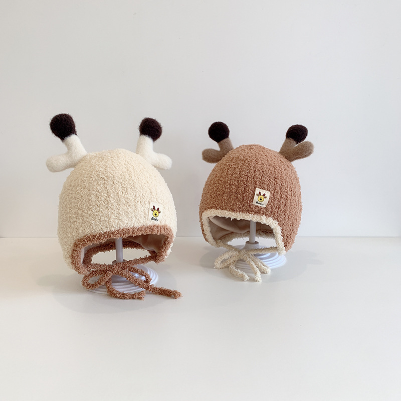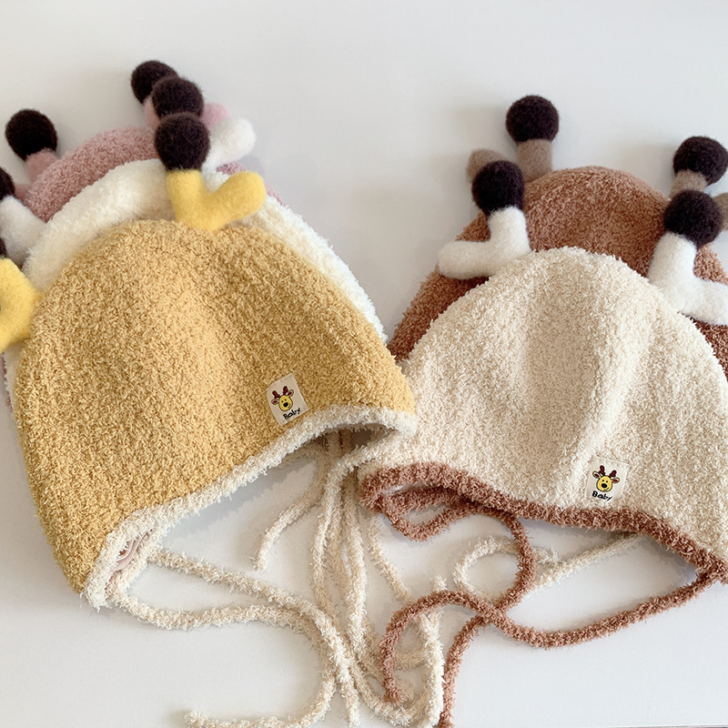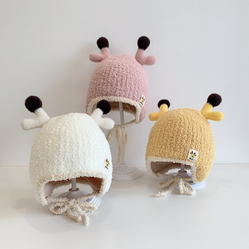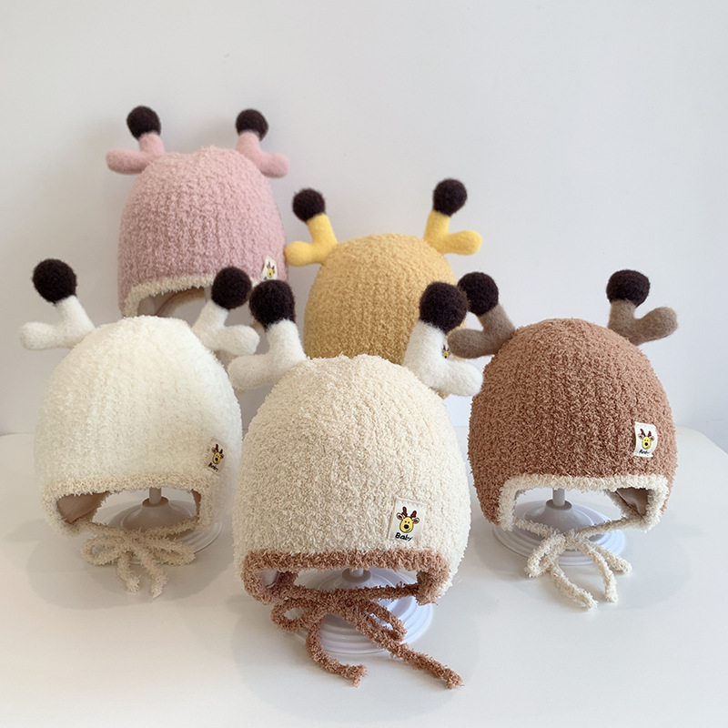 可爱小鹿婴儿帽子秋冬宝宝毛线帽冬季男女童针织帽儿童保暖护耳帽