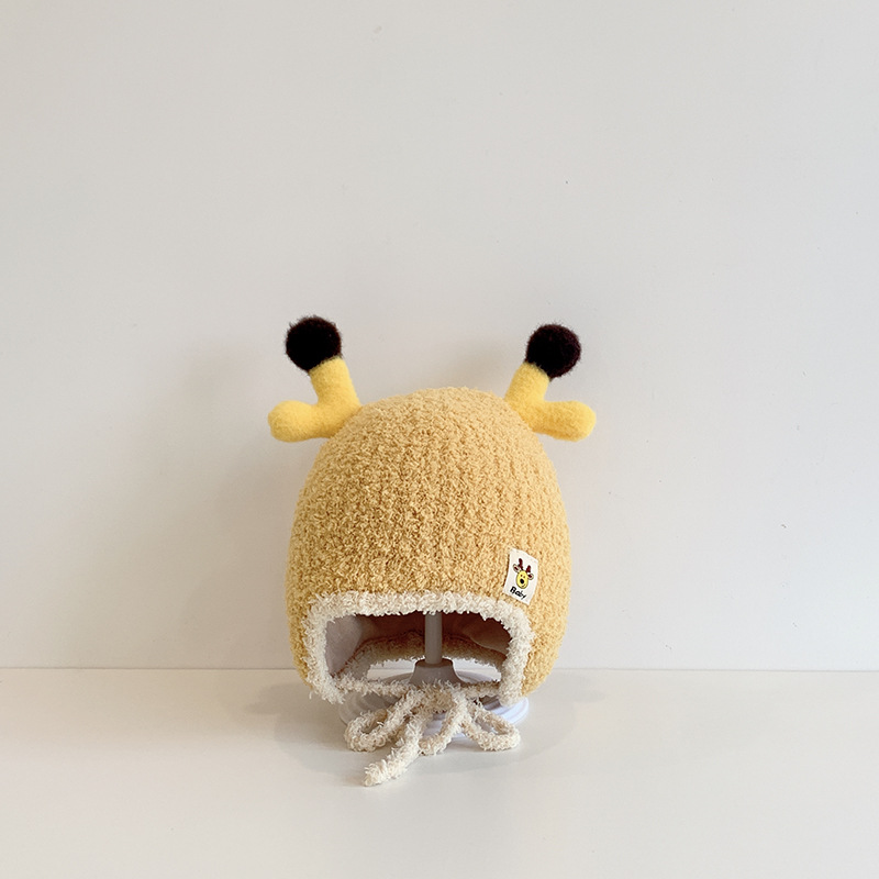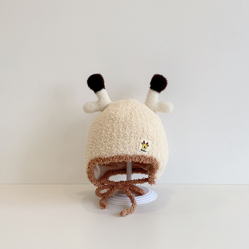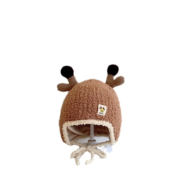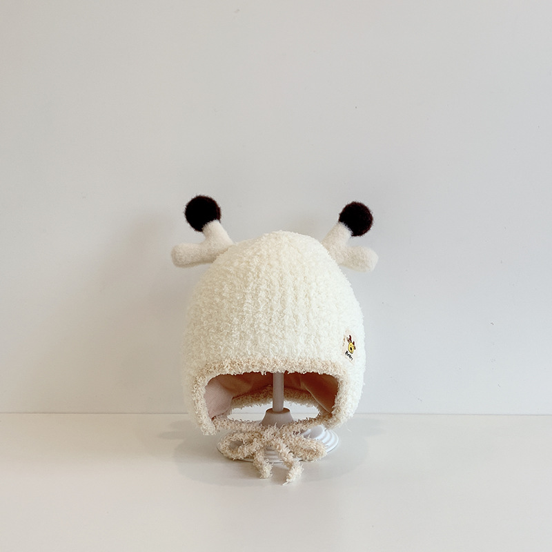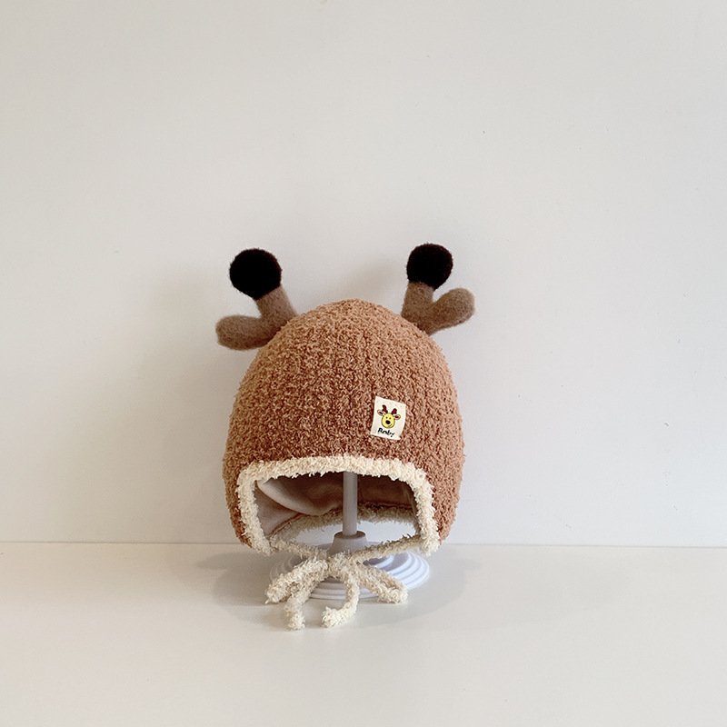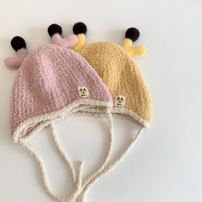可爱小鹿婴儿帽子秋冬宝宝毛线帽冬季男女童针织帽儿童保暖护耳帽