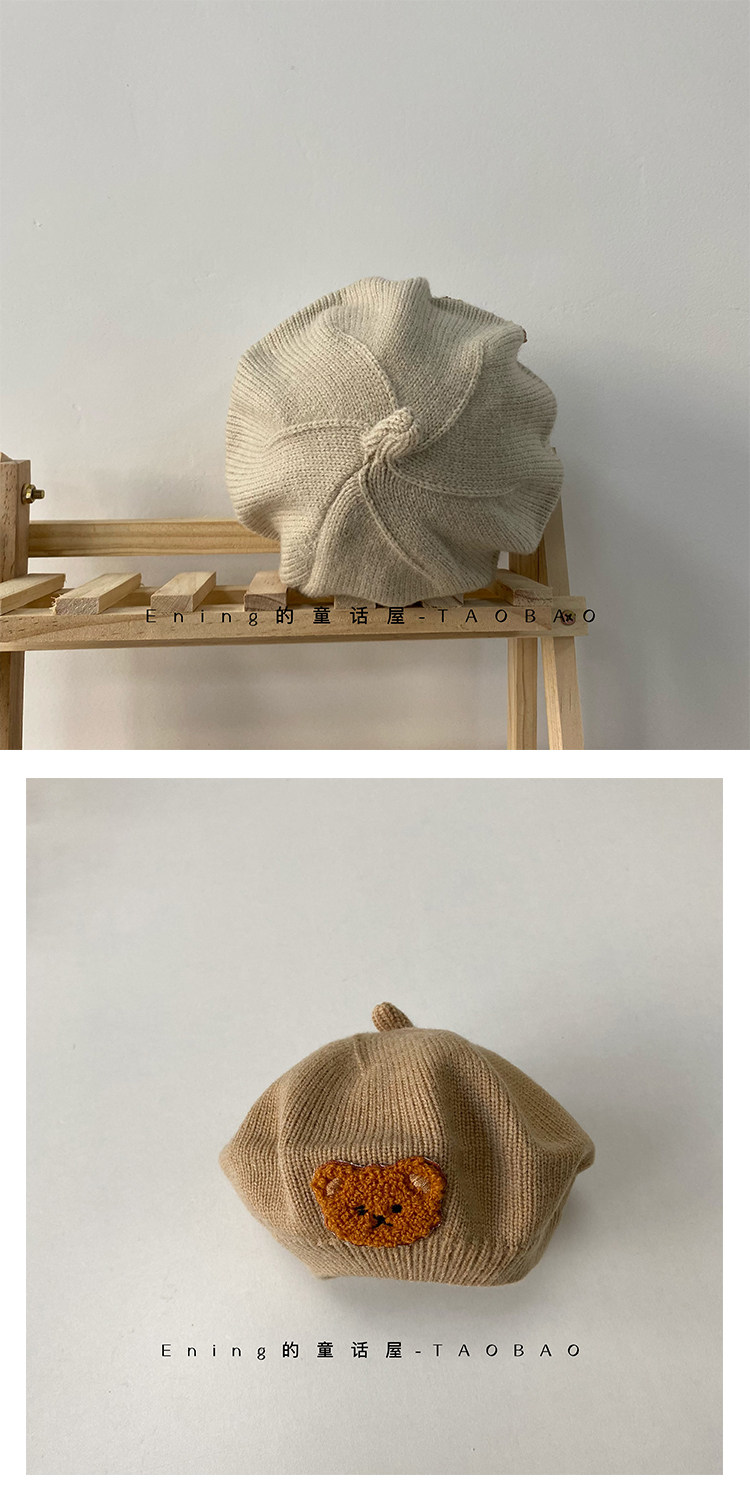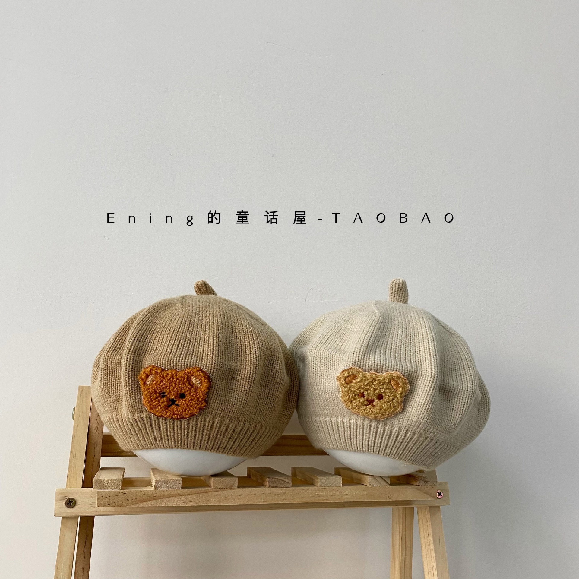 ins儿童画家贝雷帽春秋款冬季针织毛线帽子可爱超萌宝宝保暖婴儿