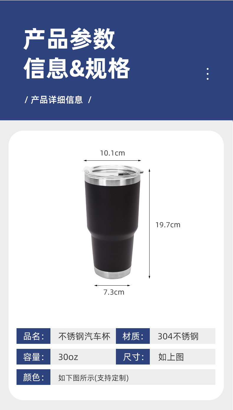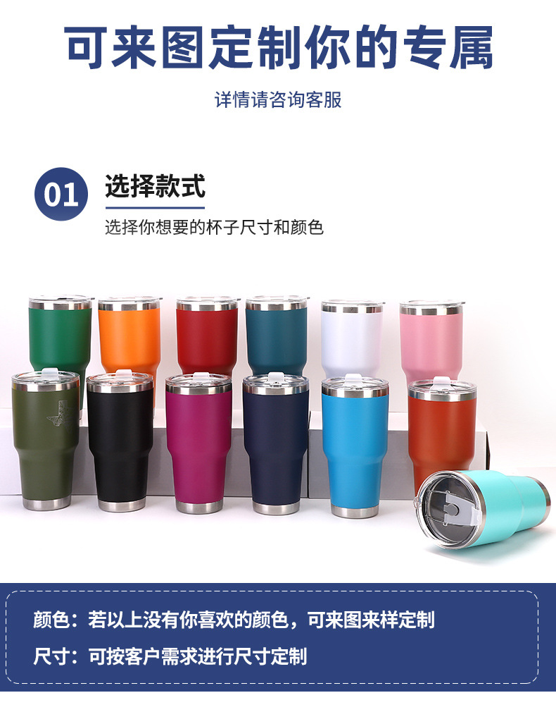 创意新款304不锈钢保温杯30oz喷塑汽车杯户外车载便携啤酒冰霸杯