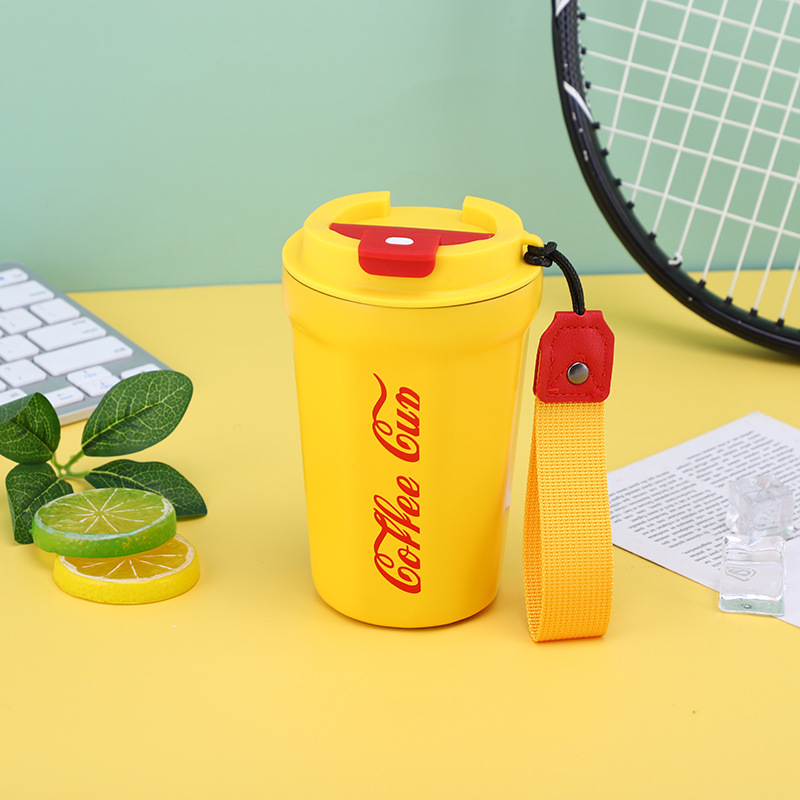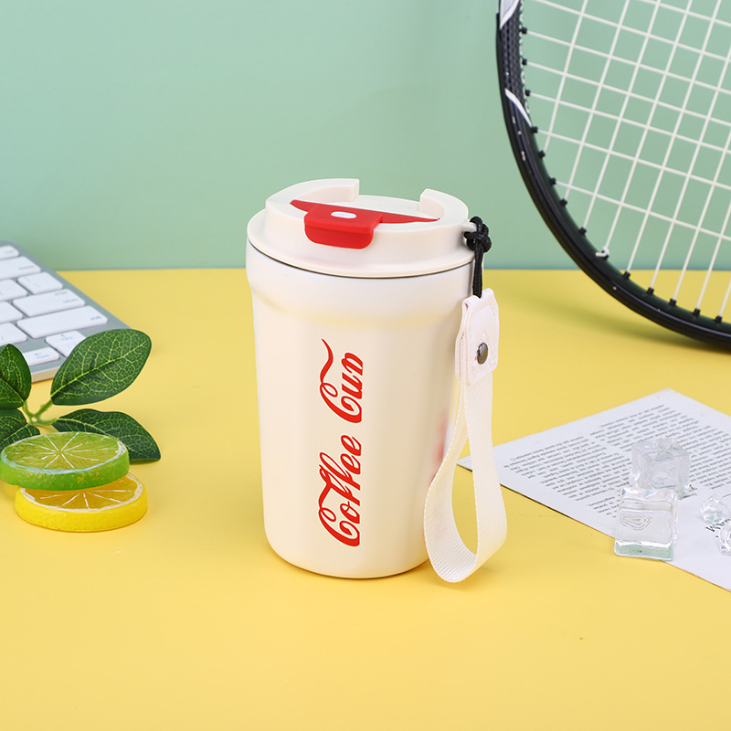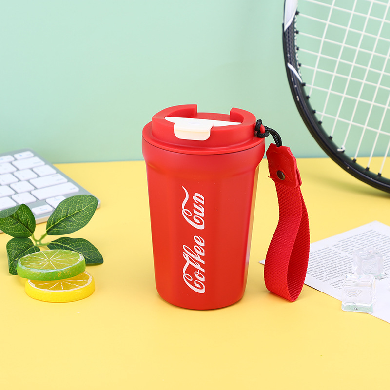 2022年新款可口可乐不锈钢双层咖啡杯创意车载杯提绳户外保温杯