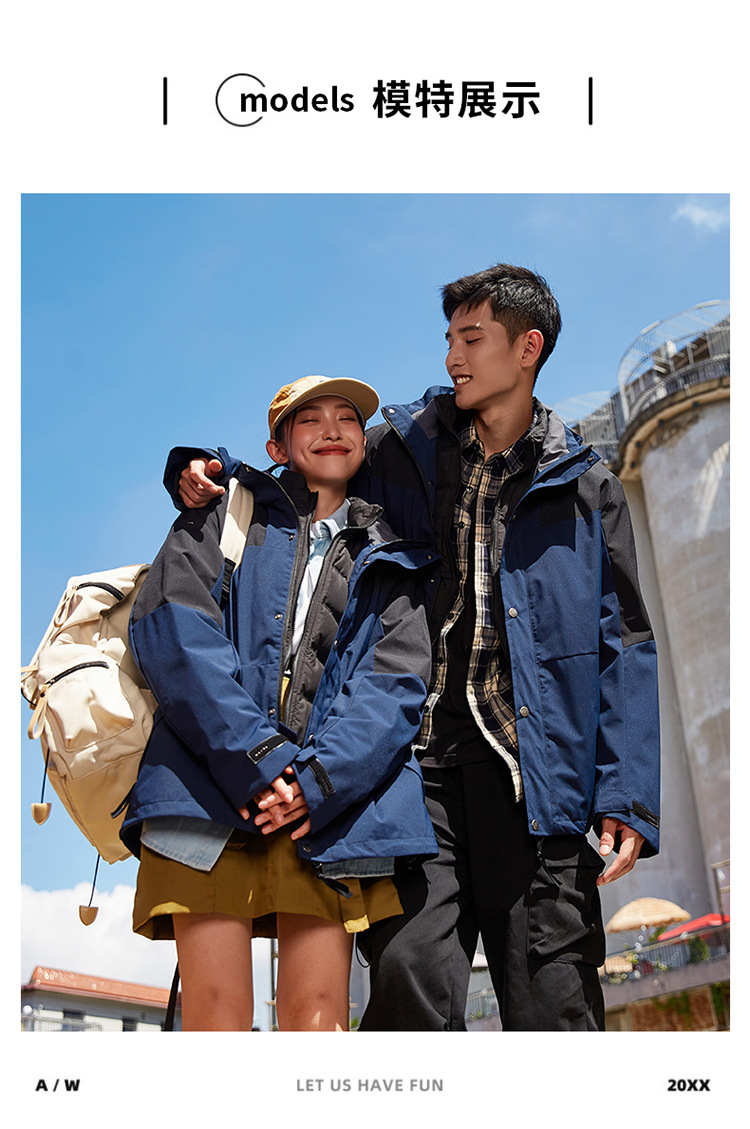 2023新款冲锋衣女三合一可拆卸防风防水定制logo登山服旅游外套男