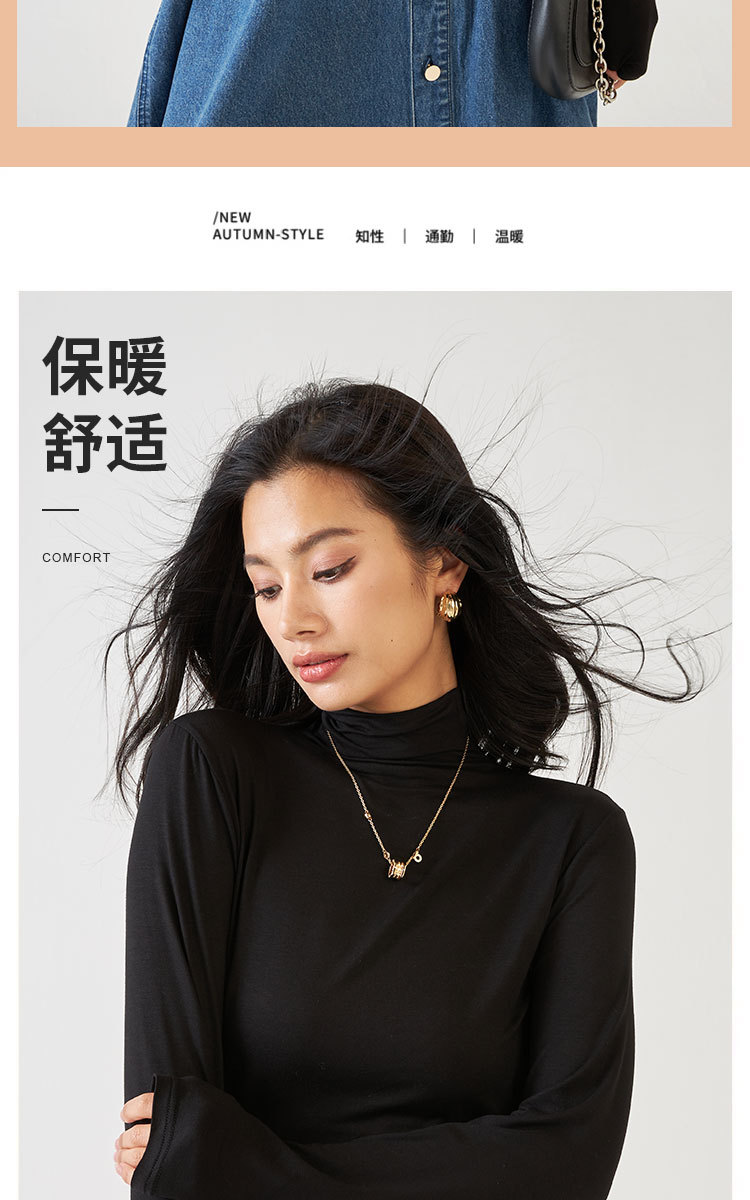2023秋款女装堆堆领高领打底衫莫代尔长袖修身百搭上衣女