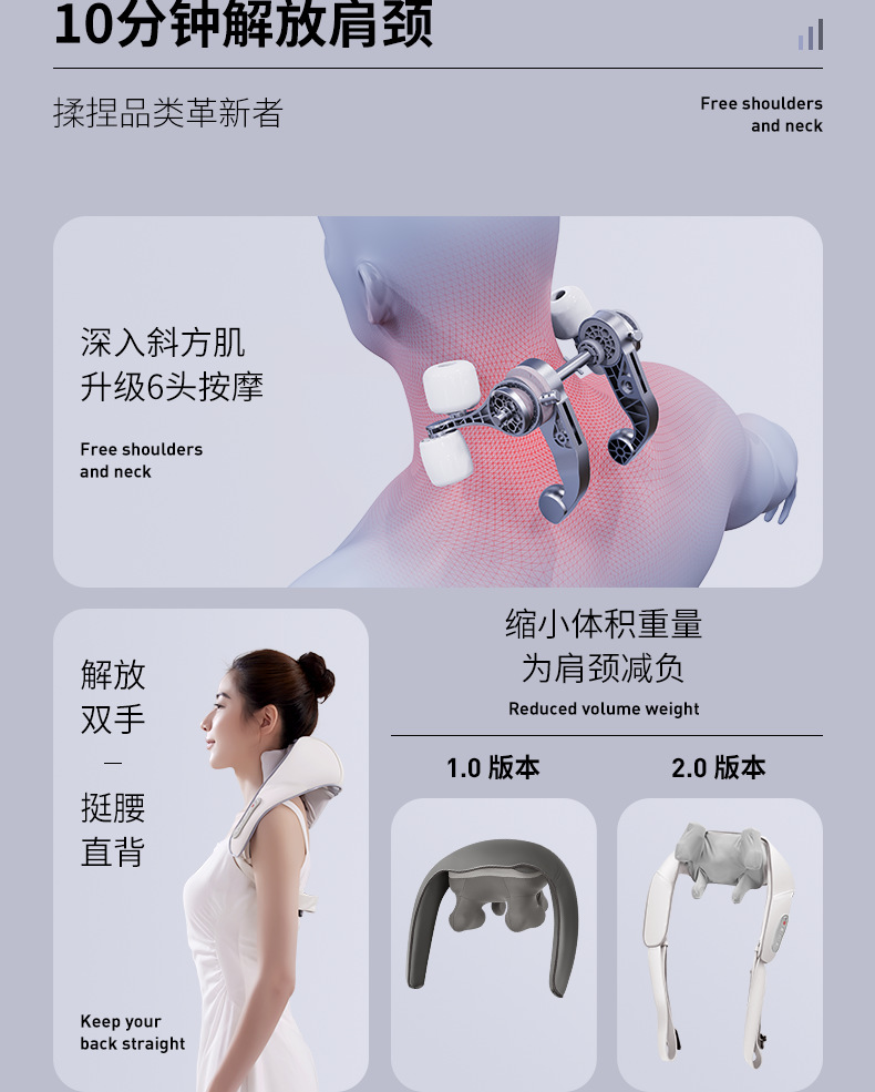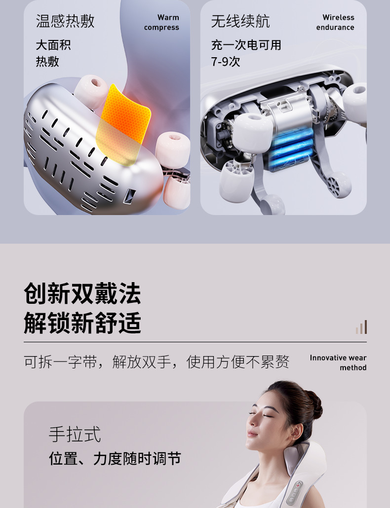 颈椎斜方肌按摩器肩膀热敷按摩披肩颈部家用脖子充电式肩颈按摩仪